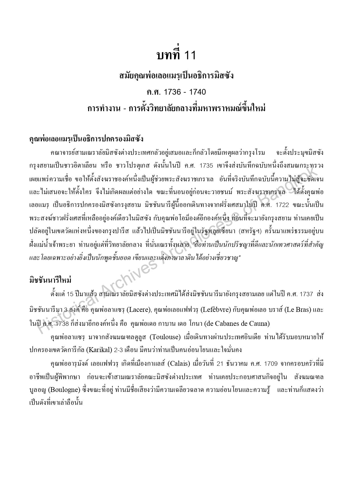 บทที่ 11 สมัยคุณพ่อเลอแมรฺเป็นอธิการมิสซัง ค.ศ. 1736 - 1740