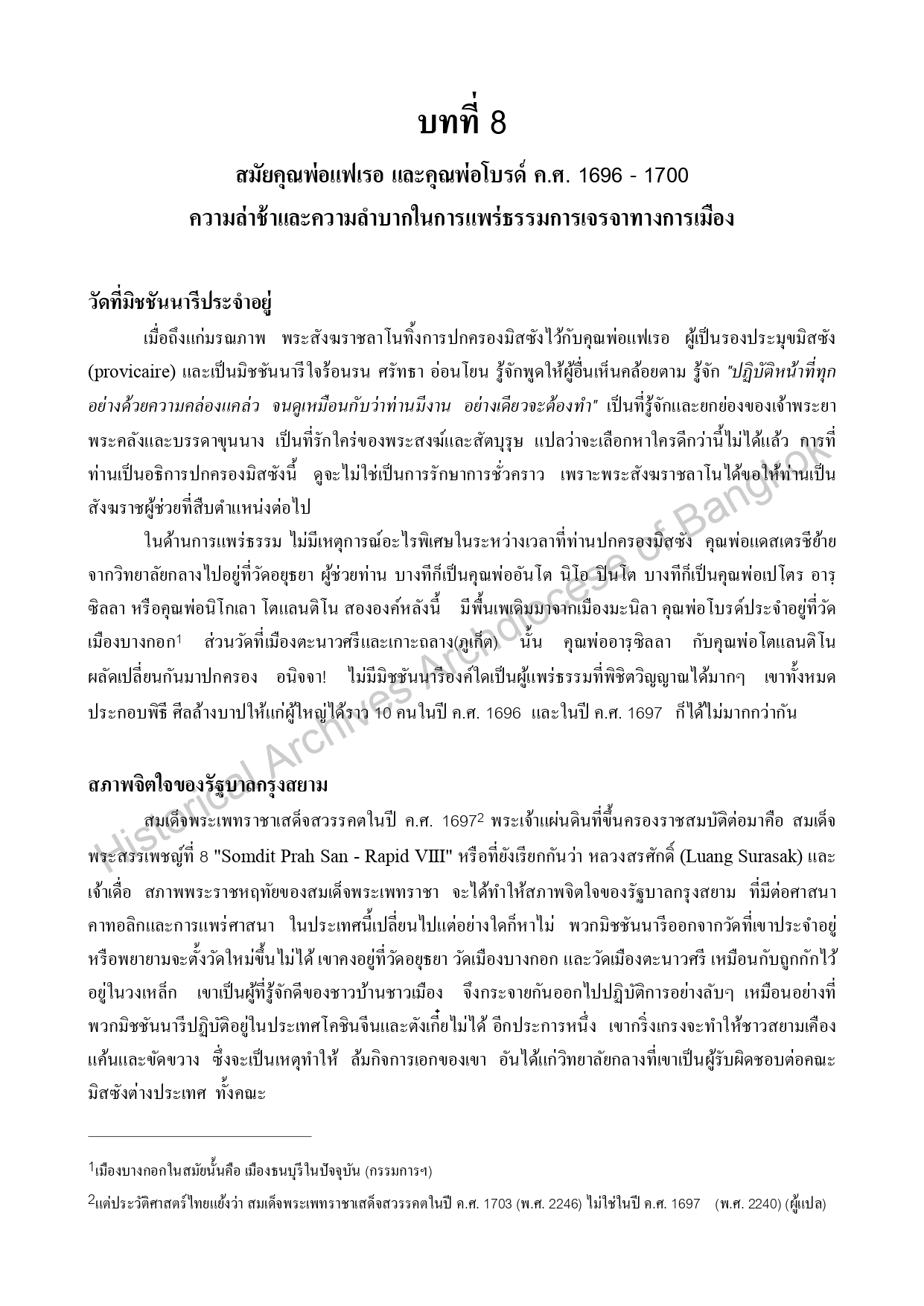 สมัยคุณพ่อแฟเรอ และคุณพ่อโบรด์ ค.ศ. 1696 - 1700ความล่าช้าและความลำบากในการแพร่ธรรมการเจรจาทางการเมือง