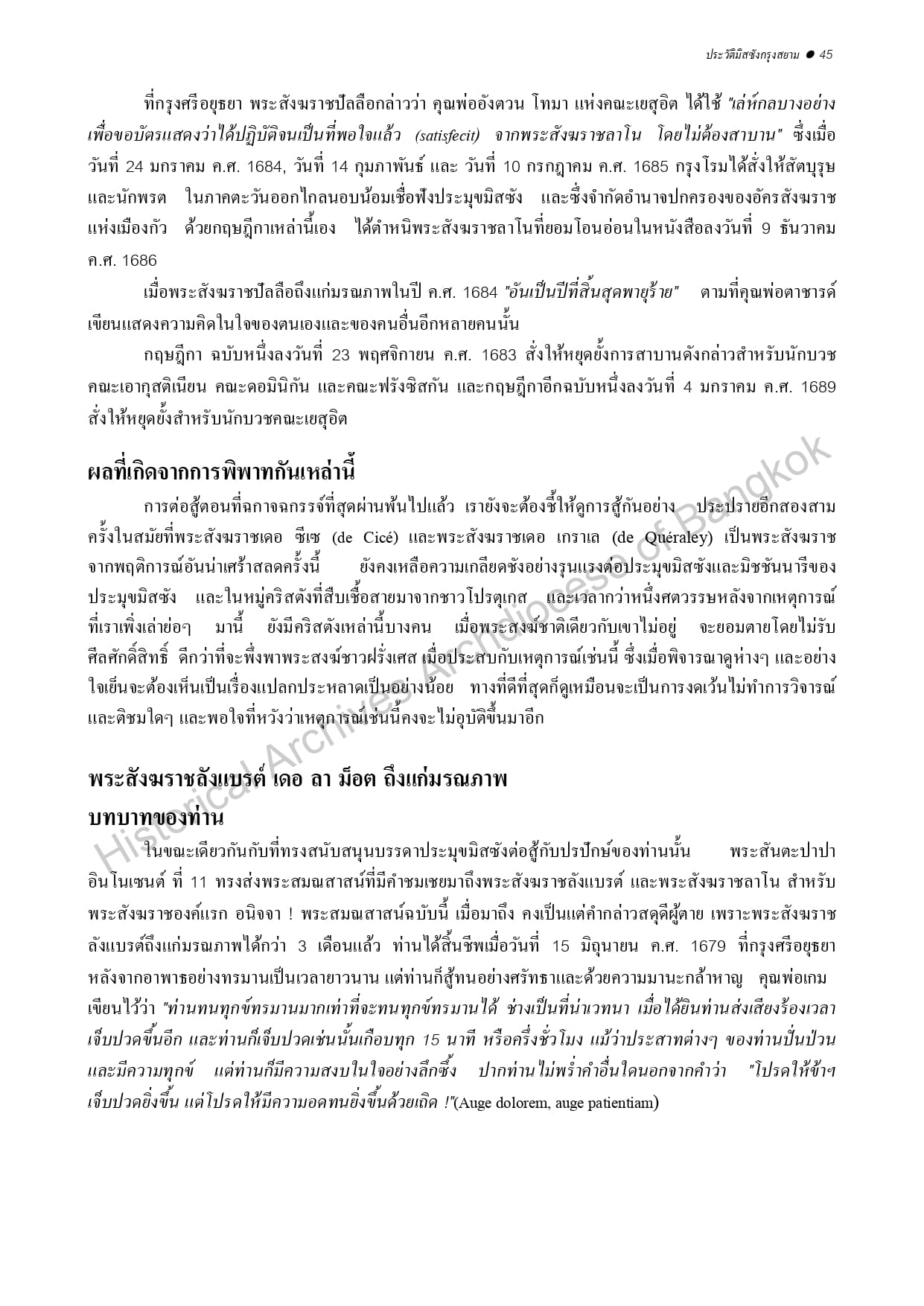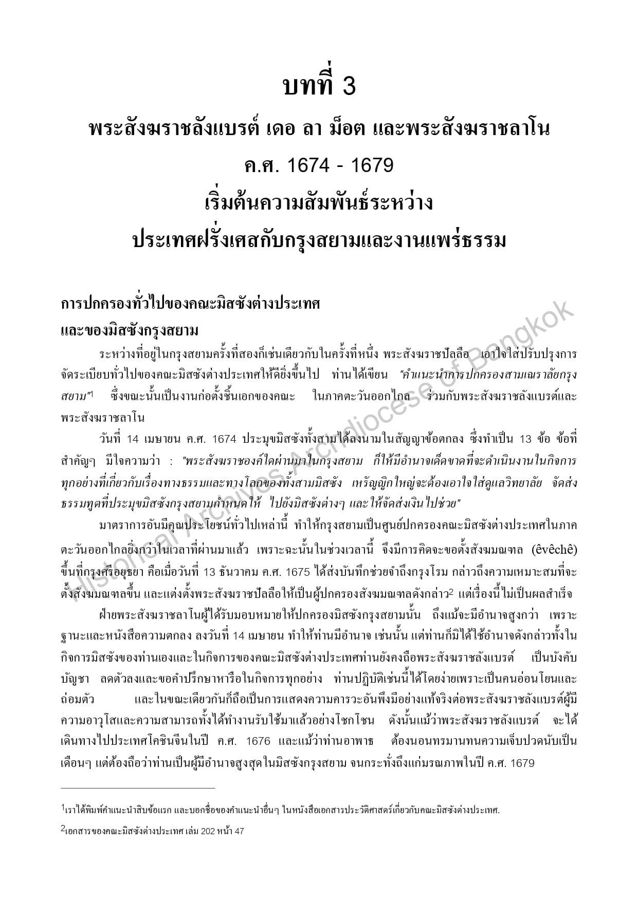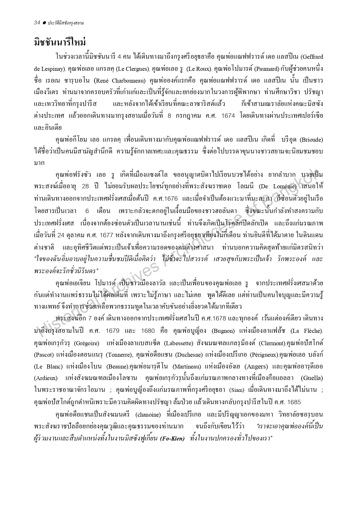 พระสังฆราชลังแบรต์ เดอ ลา ม็อต และพระสังฆราชลาโน ค.ศ. 1674 - 1679เริ่มต้นความสัมพันธ์ระหว่าง ประเทศฝรั่งเศสกับกรุงสยามและงานแพร่ธรรม