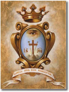 มงกุฎที่ประดับเหนือตราสัญลักษณ์ หมายถึงมงกุฎแห่งพระสิริมงคลซึ่งสมาชิกในคณะจะได้รับ เป็นรางวัลตอบแทนสำหรับความพากเพียรในการดำเนินชีวิตนักบวชในคณะจนวินาทีสุดท้ายของชีวิต