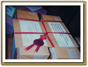 กล่องเอกสารที่เรียบร้อยแล้ว พร้อมที่จะส่งไปยังกรุงโรม