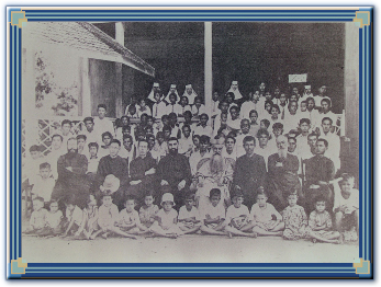 (แถวนั่งกลาง จากซ้าย) คุณพ่อหลุยส์ โชแรง (พระสังฆราช),