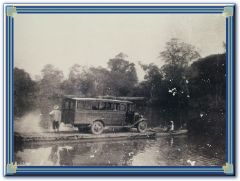 (ในภาพ) กำลังนำรถยนต์ลงแพเพื่อข้ามแม่น้ำสายหนึ่ง