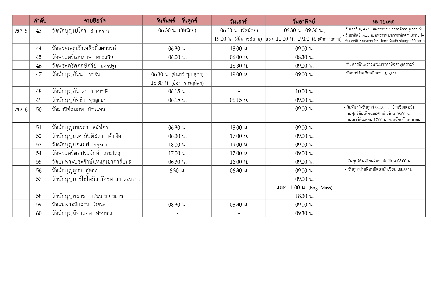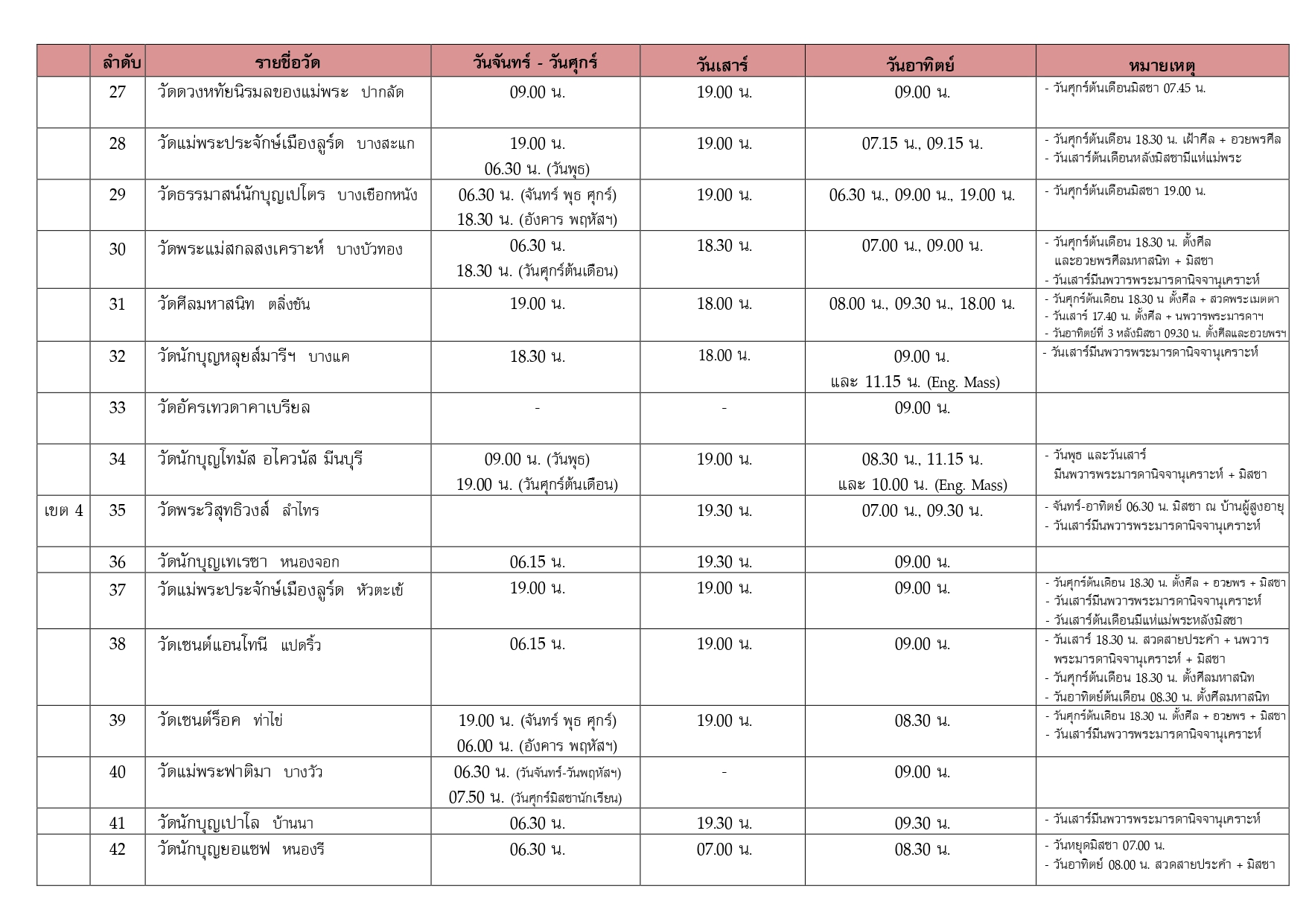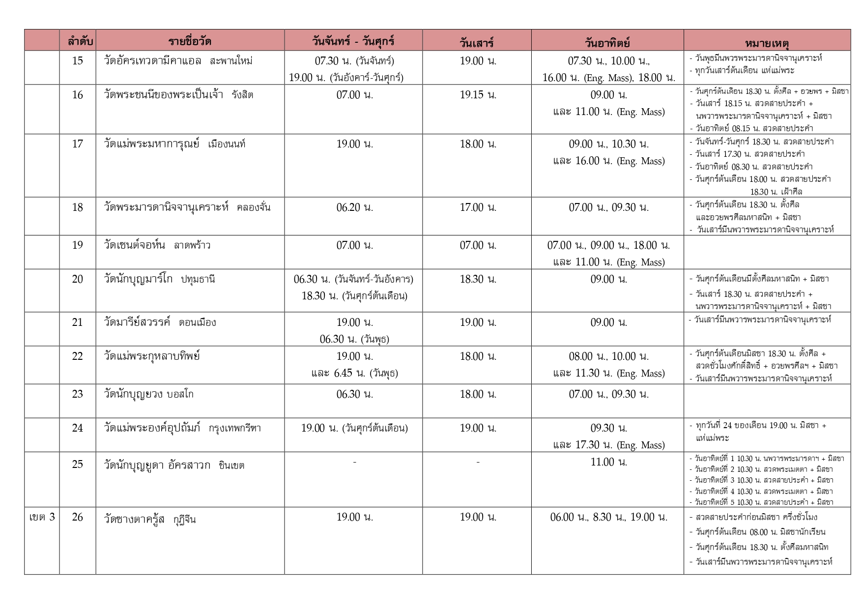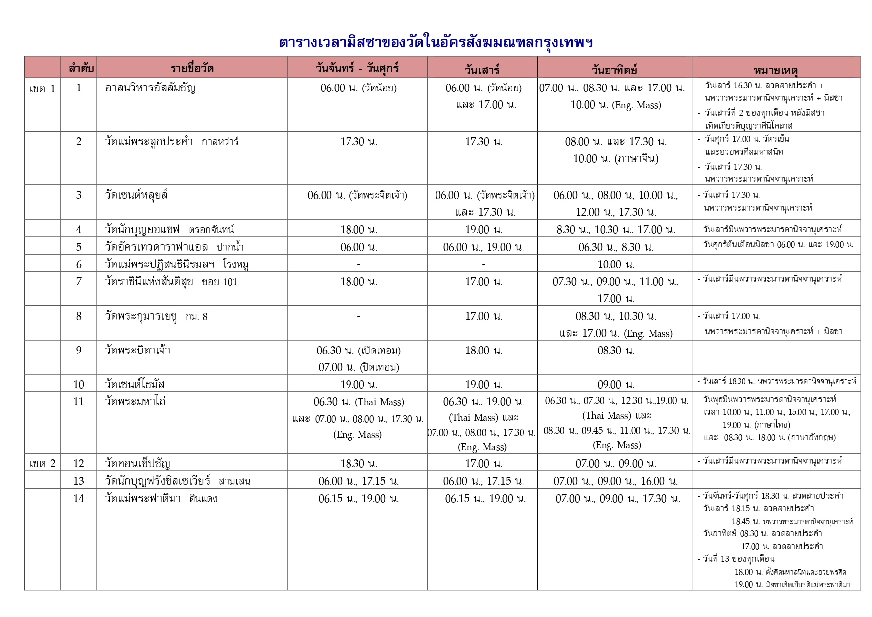 ตารางเวลามิสซาของวัดในอัครสังฆมณฑลกรุงเทพฯ
