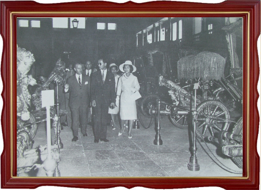 พระบาทสมเด็จพระเจ้าอยู่หัวและสมเด็จพระบรมราชินีนาถ ทรงเยี่ยมชมโรงราชรถที่ลิสบอน เมื่อ ค.ศ.๑๙๖๐