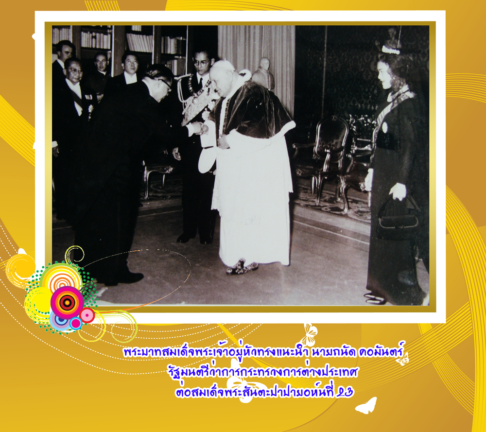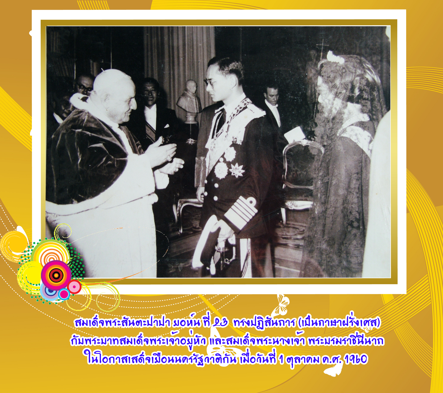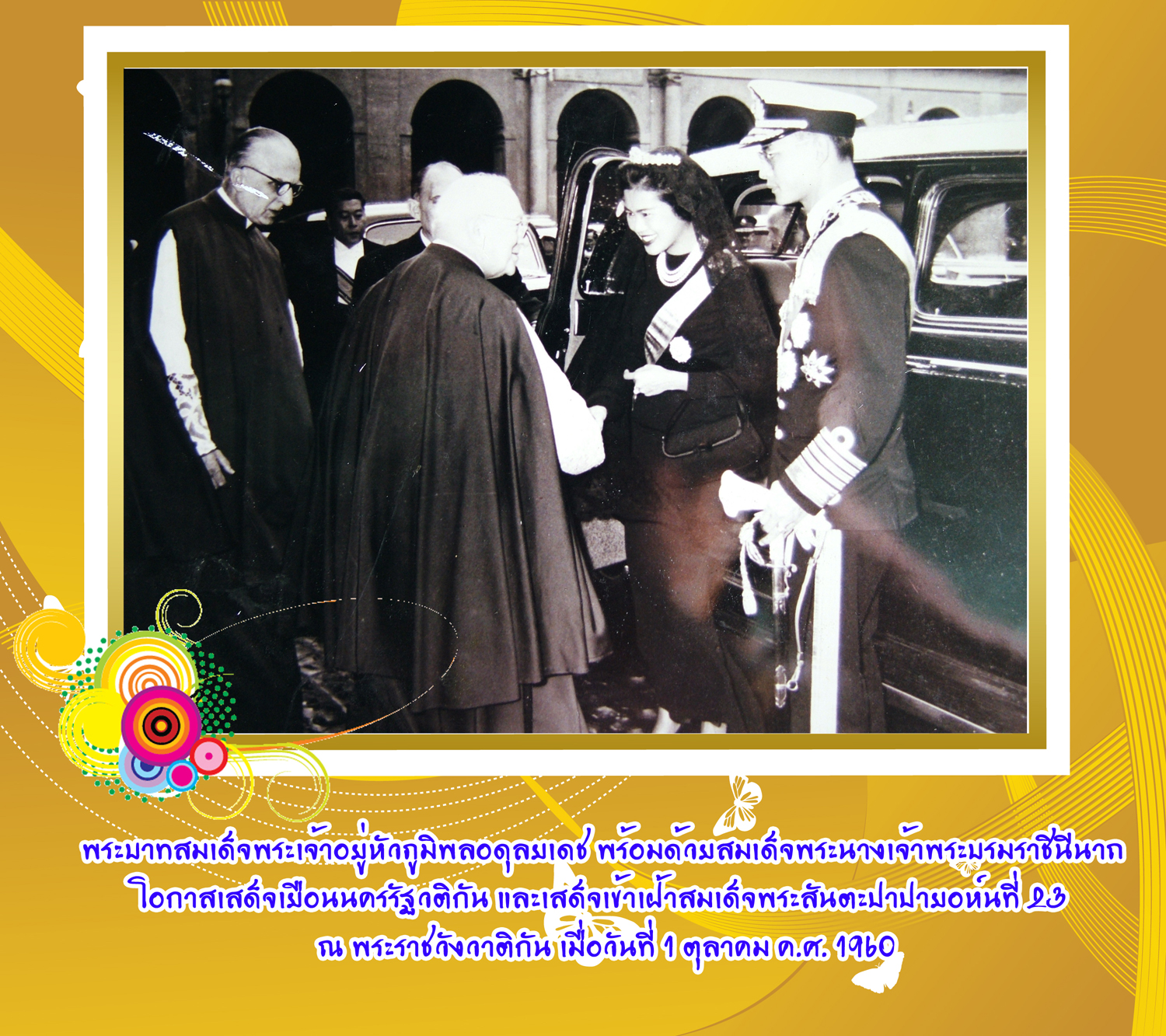 พระบาทสมเด็จพระเจ้าอยู่หัวภูมิพลอดุลยเดช พร้อมด้วยสมเด็จพระนางเจ้าพระบรมราชินีนาถ โอกาสเสด็จเยือนนครรัฐวาติกัน วันที่ 1 ตุลาคม 1960