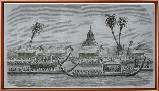 ภาพเขียนลายเส้น ขบวนเรือนำคณะราชทูตฝรั่งเศสเข้าเฝ้าฯ