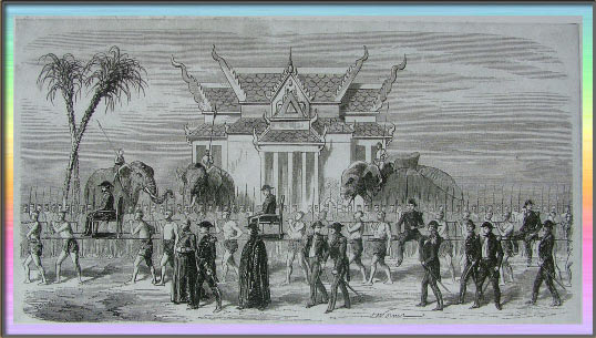 ภาพเขียนลายเส้น ขบวนแห่คณะราชทูตฝรั่งเศสเข้าเฝ้าฯ