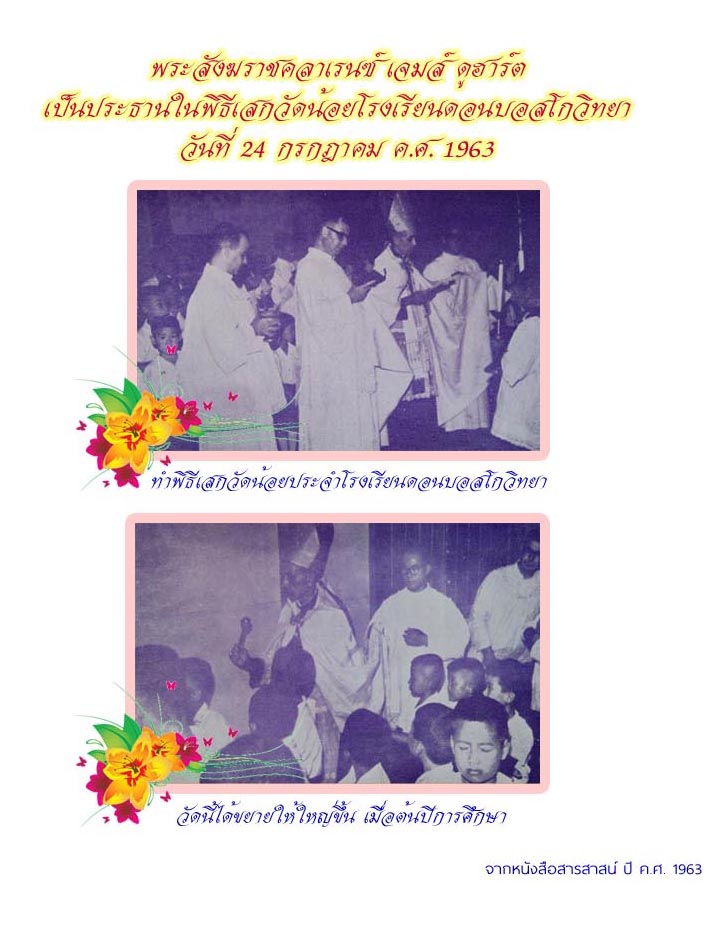 พระสังฆราชคลาเรนซ์ เจมส์ ดูฮาร์ต เป็นประธานในพิธีเสกวัดน้อยโรงเรียนดอนบอสโกวิทยา
