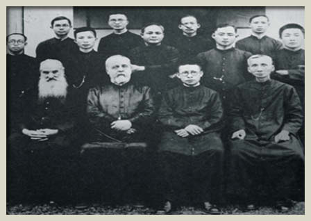แถวหน้า : คุณพ่อยวง สต็อคแก, คุณพ่อเปรูดง, คุณพ่อศรีนวล, คุณพ่ออัน หมุน