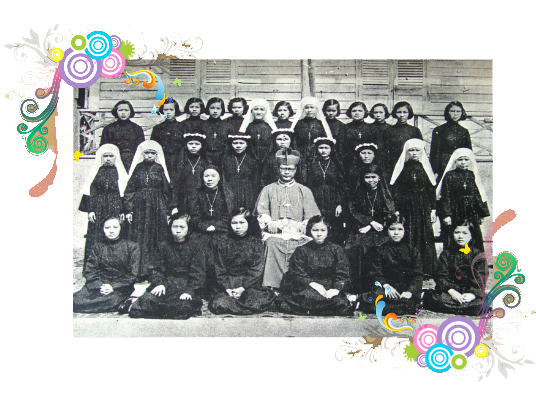 พระสังฆราชฟรังซิสเซเวียร์ สงวน สุวรรณศรี ในท่ามกลางคณะภคินีแห่งนวกสถานแปดริ้ว