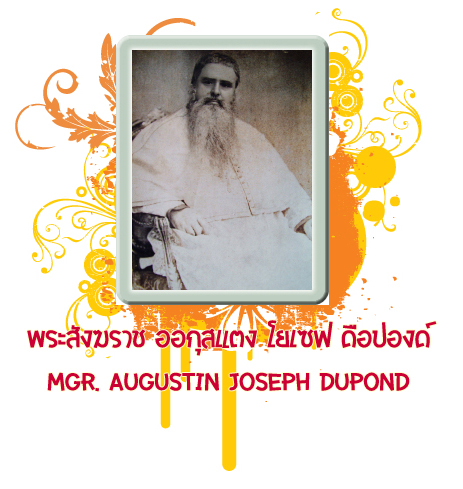 พระสังฆราช ออกุสแตง โยเซฟ ดือปองด์ ประมุขมิสซังสยาม เกิดวันที่ 17 พฤศจิกายน ค.ศ. 1809 ที่แฟลร์ส แขวงปาส์เดอกาแลส์ เข้าเรียนโรงเรียนที่อาแม็ตส์ และเข้าบ้านเณรใหญ่ที่อาราส ท่านรับศีลบวชเป็นพระสงฆ์ วันที่ 21 ธันวาคม ค.ศ. 1833 ท่านทำงานอภิบาลในฐานะปลัดอยู่ที่โบแรง ซึ่งมีวัดสาขาอยู่ที่ตีลัวแลส์ มอฟแฟลนส์