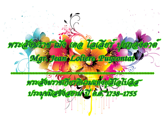 พระสังฆราช ฌัง เดอ โลเลียร์ ปุยกองตาต์ เกิดวันที่ 11 กันยายน ค.ศ. 1685 ที่กรีญอลส์ (ดอร์ดอญ) ศึกษาวิชาวรรณคดีและเทวศาสตร์ที่เปรีกอรด์ ได้รับศีลบวชเป็นพระสงฆ์ในปี ค.ศ.1715 เดินทางมาประเทศสยามในเดือนธันวาคม ค.ศ.1717 เมื่อมาถึงก็ได้รับหน้าที่เป็นอาจารย์ที่วิทยาลัยกลางซึ่งมีคุณพ่อรุสต์เป็นอธิการอยู่ ในปี ค.ศ.1720 รับหน้าที่เป็นเหรัญญิกที่อยุธยา และในปีต่อมาได้กลับไปอยู่ที่วิทยาลัยกลางอีก ปี ค.ศ.1722 ได้รับหน้าที่เป็นผู้ช่วยเหรัญญิกที่เมืองปอนดิเชรี และเป็นเหรัญญิกในปี ค.ศ.1725