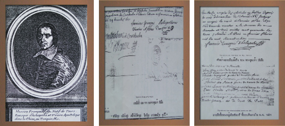 ในปีเดียวกันนั้นเองท่านเดินทางไปที่ฝรั่งเศส เสนอต่อพระเจ้าหลุยส์ที่ 14 ให้ก่อตั้งสถาบันฝรั่งเศสในตะวันออกไกล ปี ค.ศ. 1668 ท่านกลับมาที่โรมเพื่อขอให้รับรองคณะนักบวชที่ท่านตั้งขึ้นที่อยุธยา โครงการนี้ไม่ได้รับความเห็นชอบจากผู้บริหารคณะ M.E.P. โดยพวกเขาเห็นว่าเป็นโครงการที่ไม่สามารถเป็นจริงได้ อย่างไรก็ตามท่านได้รับอนุมัติจากสมเด็จพระสันตะปาปาเคลเมนต์ที่ 9 ดังต่อไปนี้