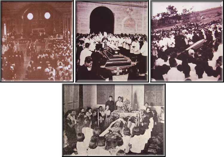 ศพของท่านสวมอาภรณ์พระสังฆราช สวมเสื้อกาสุลาสีม่วงอยู่ภายนอก ตั้งไว้ในห้องพักของท่านที่วัดหัวไผ่ ทั้งวันมีสัตบุรุษมาแสดงความเคารพ จนกระทั่งเย็นวันอังคารจึงเชิญศพลงไปที่วัด มีคริสตังจากวัดต่างๆ มาคำนับศพและสวดภาวนาอุทิศให้ตลอดเวลา