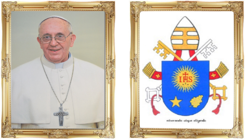 ตราสัญลักษณ์ในพื้นโล่สีฟ้า เป็นสัญลักษณ์ที่พระสันตะปาปาฟรันซิสทรงใช้ในสมัยที่ยังดำรงตำแหน่งเป็นอัครมุขนายก แห่งอัครสังฆมณฑลบัวโนสไอเรส ประเทศอาเจนตินา