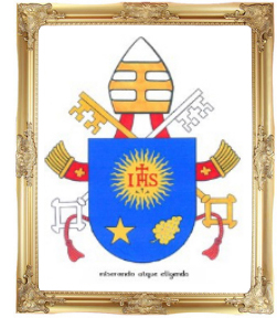 พระอาทิตย์สีทอง ซึ่งมี อักษร ย่อ IHS ซึ่งเป็นพระนามของพระเยซูเจ้า ในภาษากรีก และ ตะปู 3 ดอก อันเป็นตราของคณะเยซูอิต ซึ่งเป็นคณะที่ท่านสังกัด