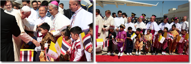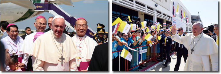 - เริ่มต้นเส้นทางจาริก สมเด็จพระสันตะปาปาฟรังซิส เสด็จถึงราชอาณาจักรไทย