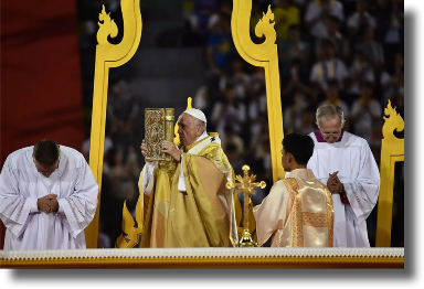 - คริสตชนร่วมใจในพิธีบูชาขอบพระคุณ (พิธีมิสซา) พร้อมกับองค์สมเด็จพระสันตะปาปาที่สนามศุภชลาศัย