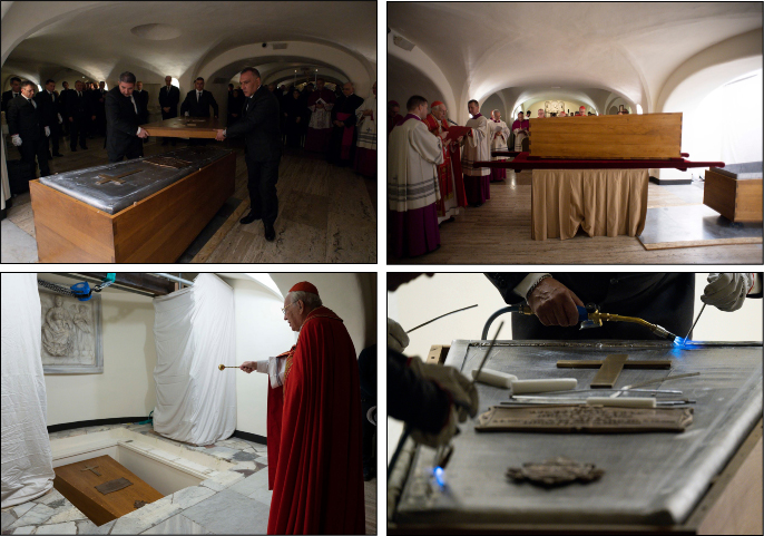 วันพฤหัสบดีที่ 5 มกราคม ค.ศ. 2023 พระศพของสมเด็จพระสันตะปาปากิตติคุณเบเนดิกต์ที่ 16 ได้รับการอัญเชิญไปฝังไว้ในสุสานวาติกันด้านล่างพระมหาวิหารนักบุญเปโตร ในพระคูหาเดิมที่เคยฝังพระศพนักบุญ ยอห์น ปอล ที่ 2 พระสันตะปาปา