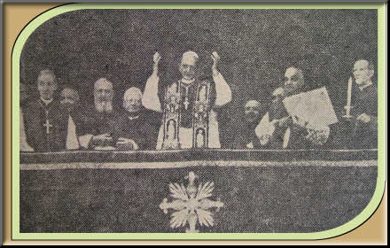 ต่อมาอีกครู่หนึ่ง มหาชนเริ่มตื่นเต้น กองทหารระวังตรงทำความเคารพ สมเด็จพระสันตะปาปาเปาโลที่ 6 เสด็จออกแสดงพระองค์เป็นครั้งแรกแก่มหาชนที่มุขเด็จ ทรงอำนวยพระพร Urbiet Orbi (แก่กรุงโรมและโลก) เสียงมหาชนโห่ร้อง อวยชัยให้พรแก่พระสันตะปาปา พระองค์ประทับอยู่ครู่หนึ่ง แล้วจึงเสด็จกลับ ประตูใหญ่ที่หน้ามุขเด็จปิดสนิทแล้ว ฝูงชนต่างบ่ายหน้าที่อยู่ของตน ทุกคนมีใบหน้าร่าเริง