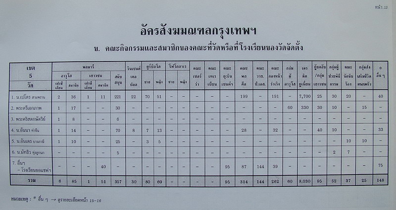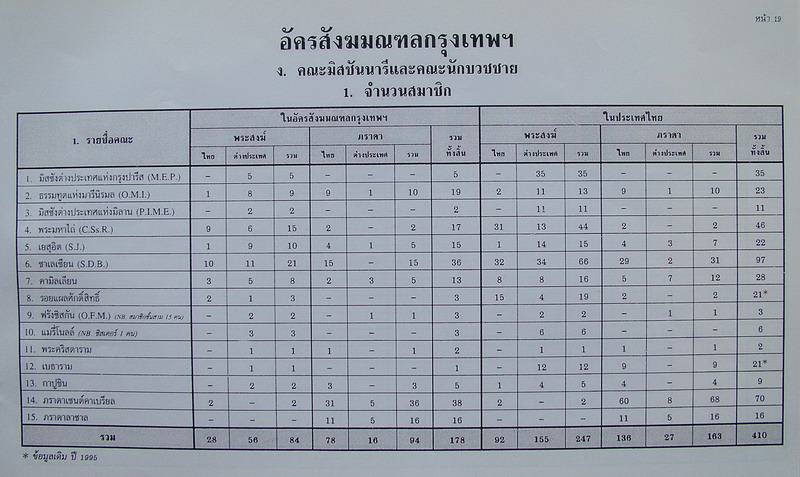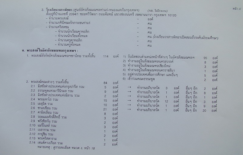ข้อมูลสถิติประจำปี อัครสังฆมณฑลกรุงเทพฯ