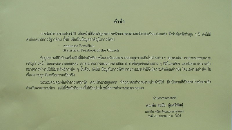 ข้อมูลสถิติประจำปี อัครสังฆมณฑลกรุงเทพฯ