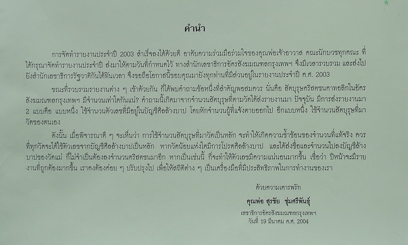 ข้อมูลสถิติประจำปี อัครสังฆมณฑลกรุงเทพฯ