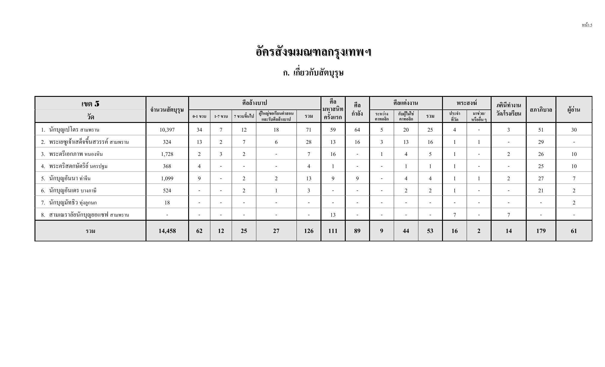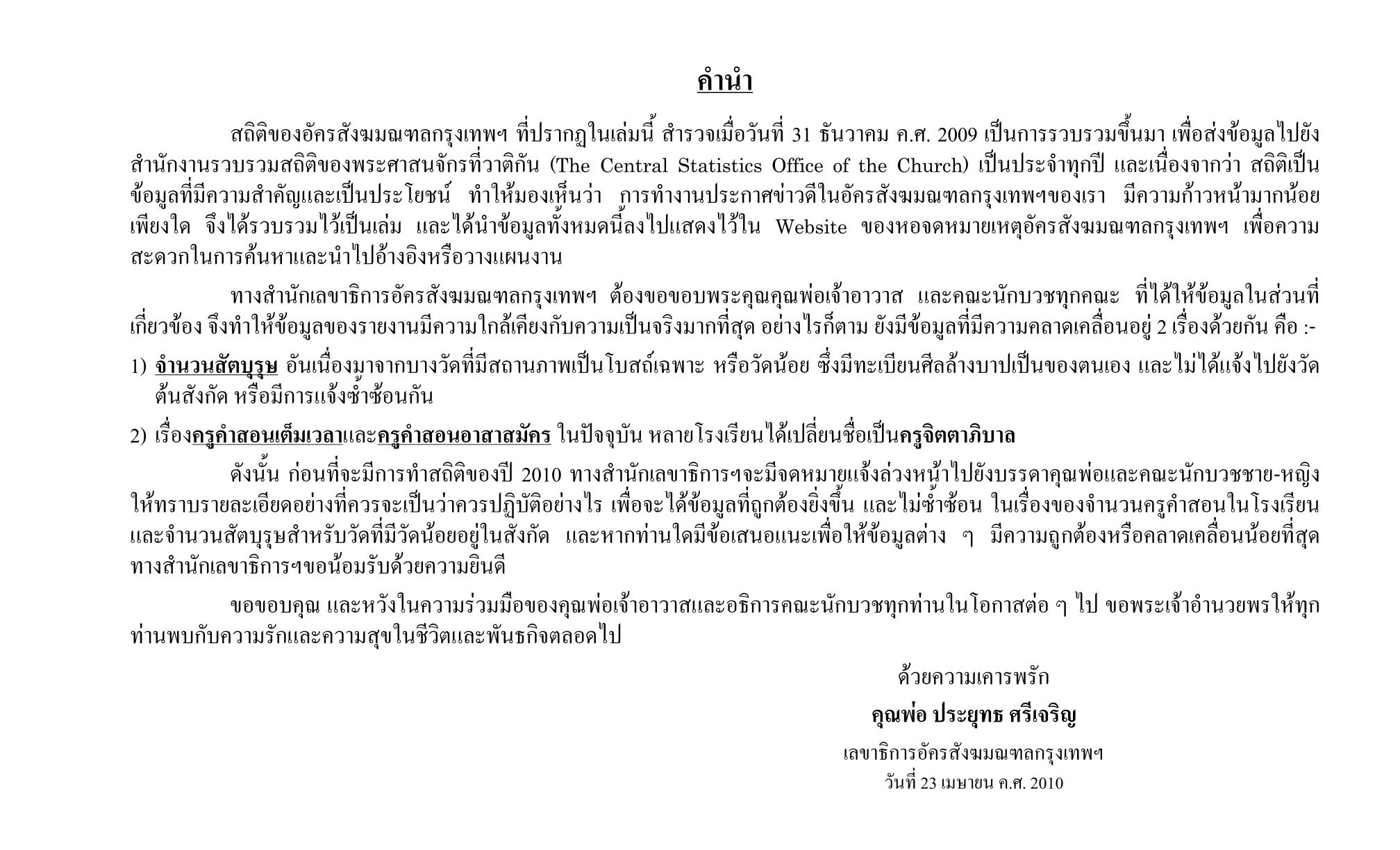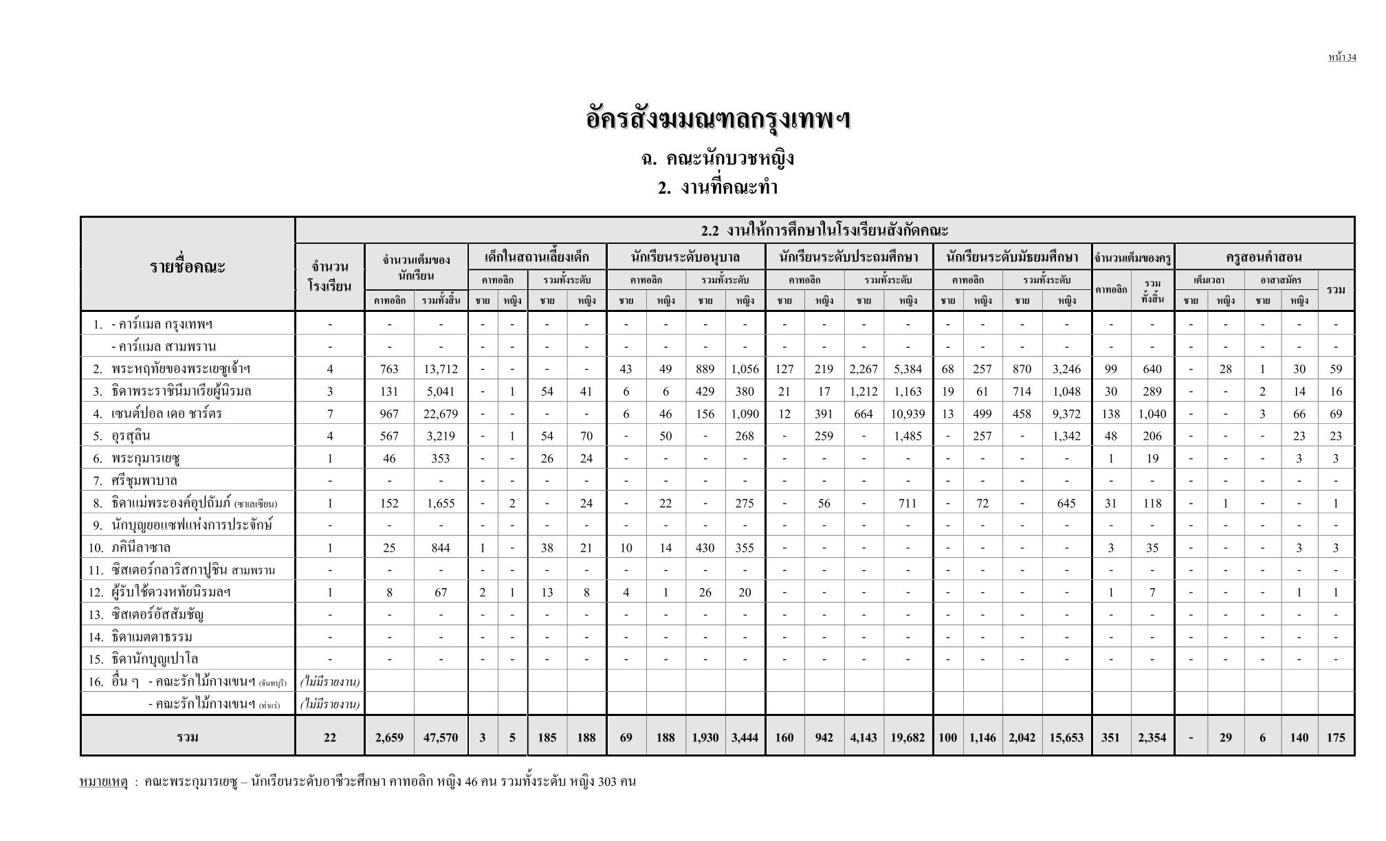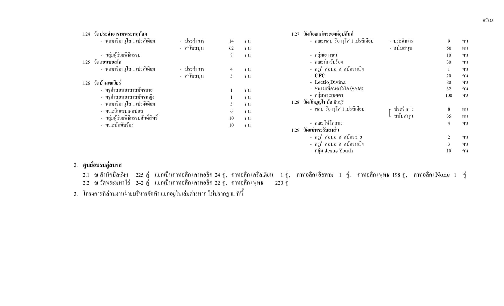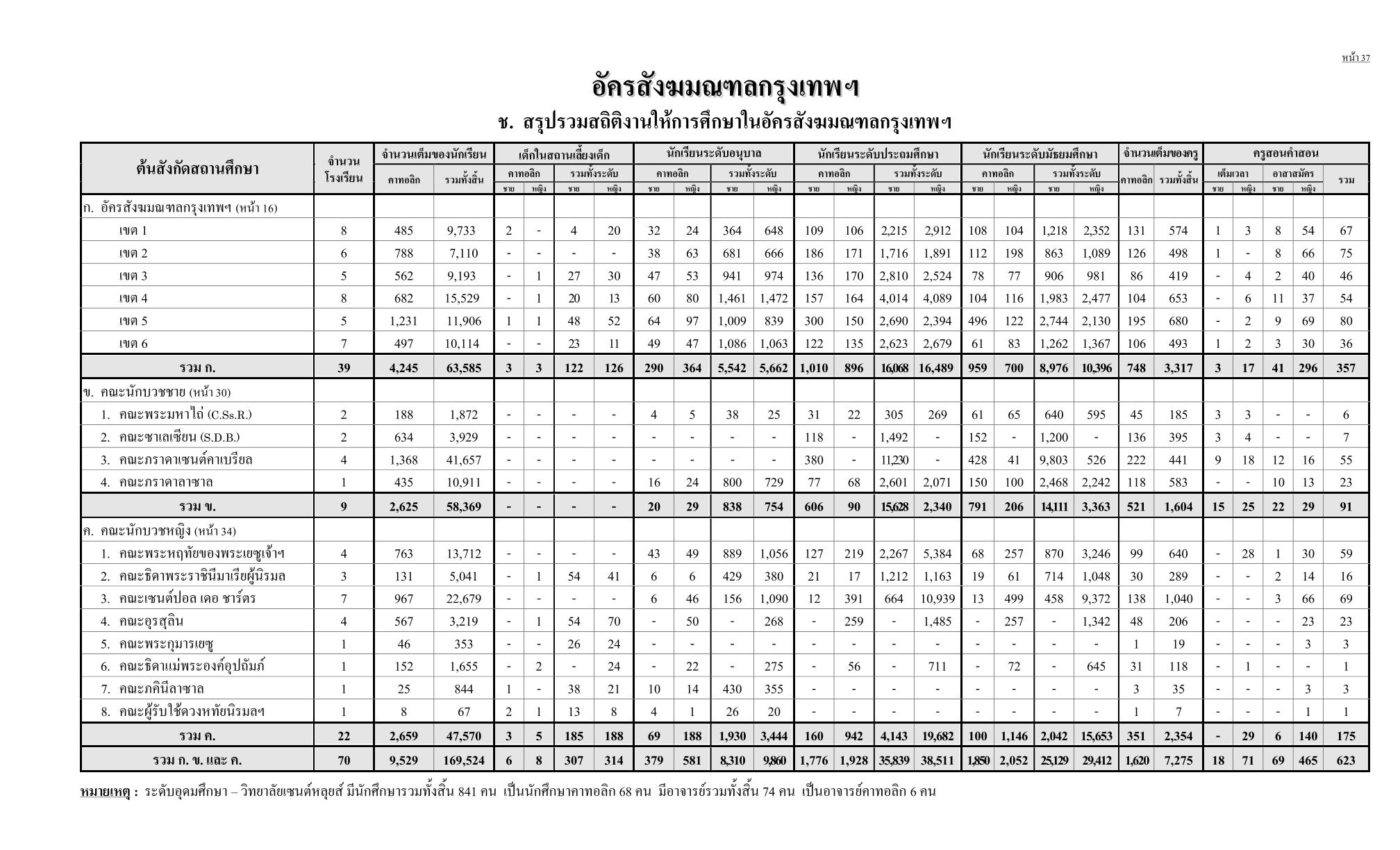ข้อมูลสถิติประจำปี อัครสังฆมณฑลกรุงเทพฯ