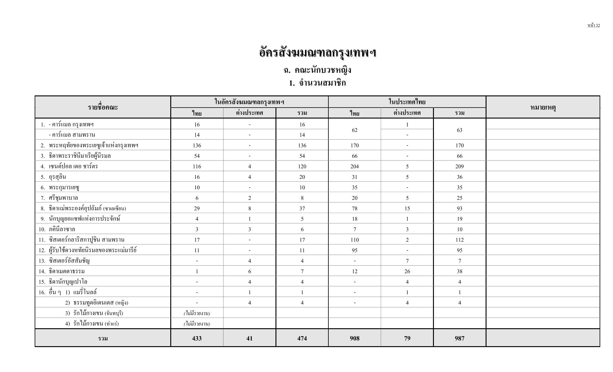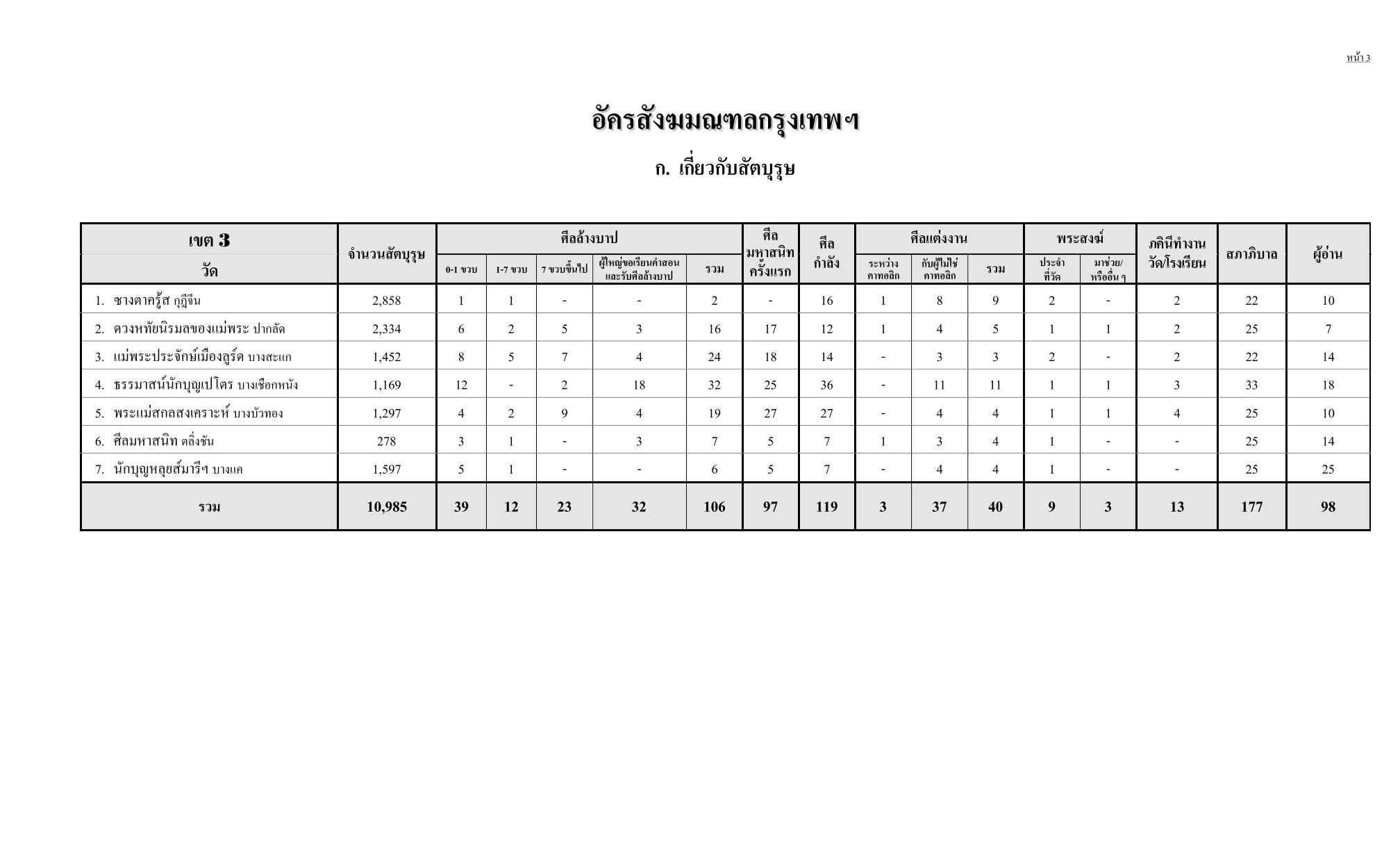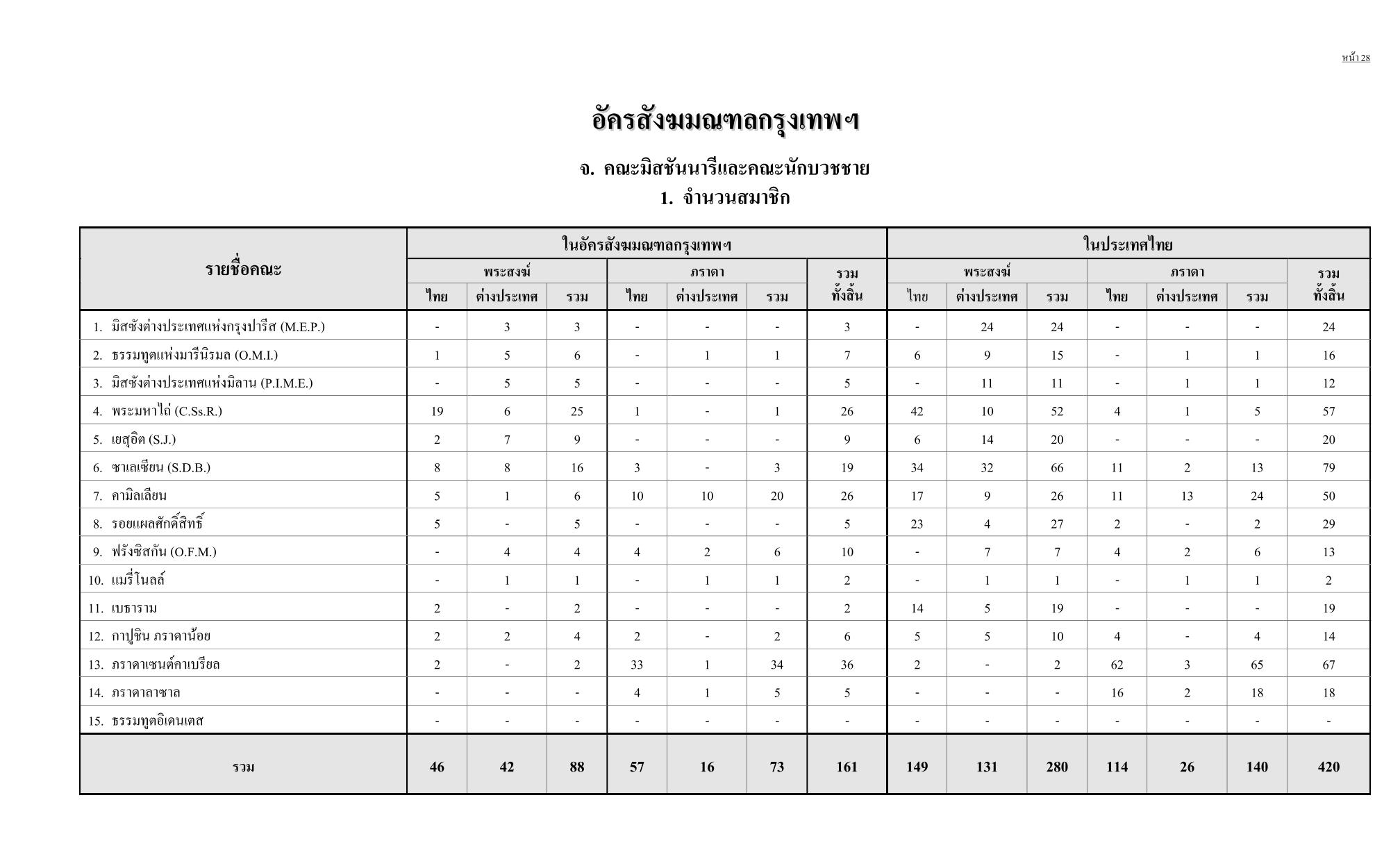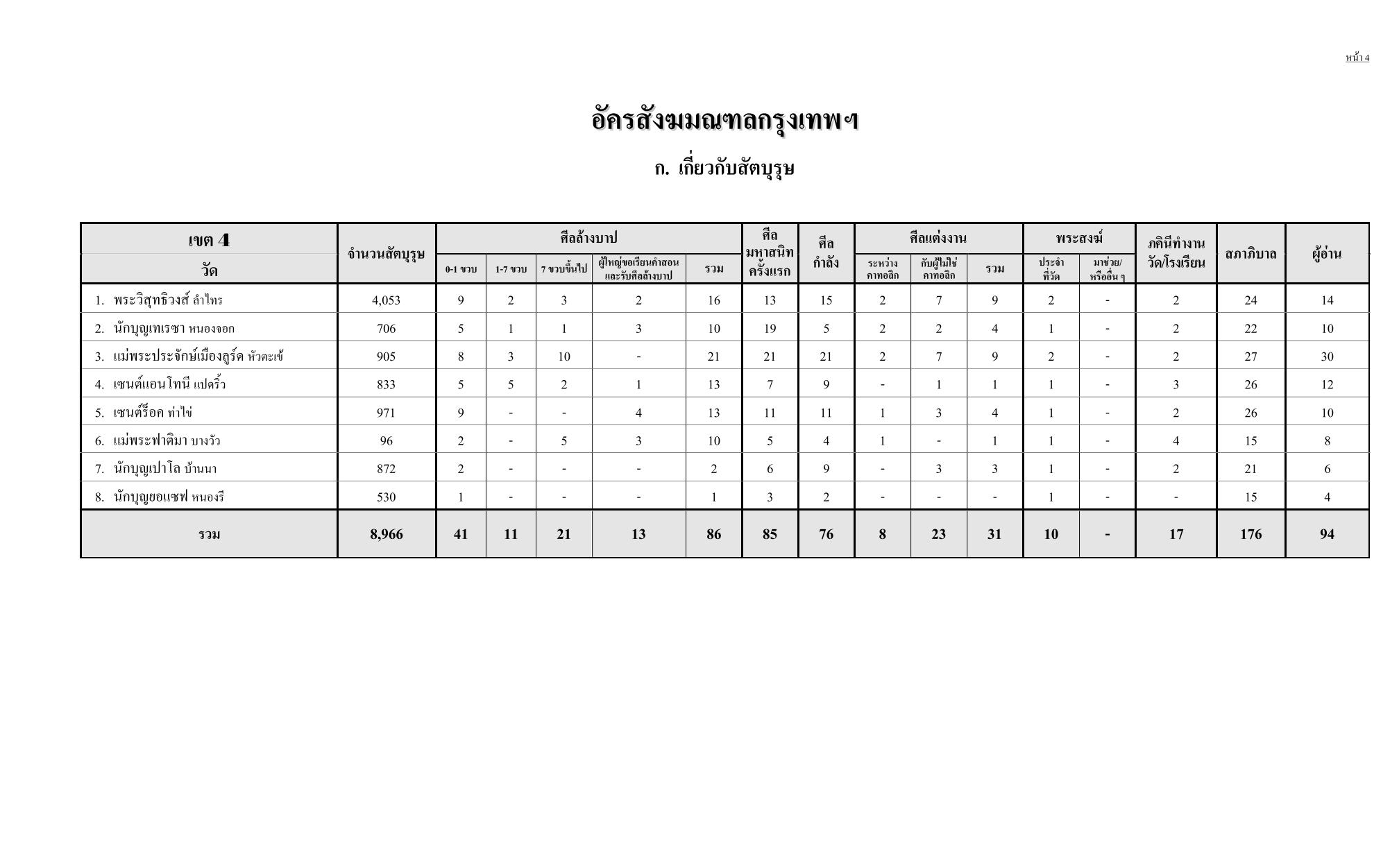 ข้อมูลสถิติประจำปี อัครสังฆมณฑลกรุงเทพฯ