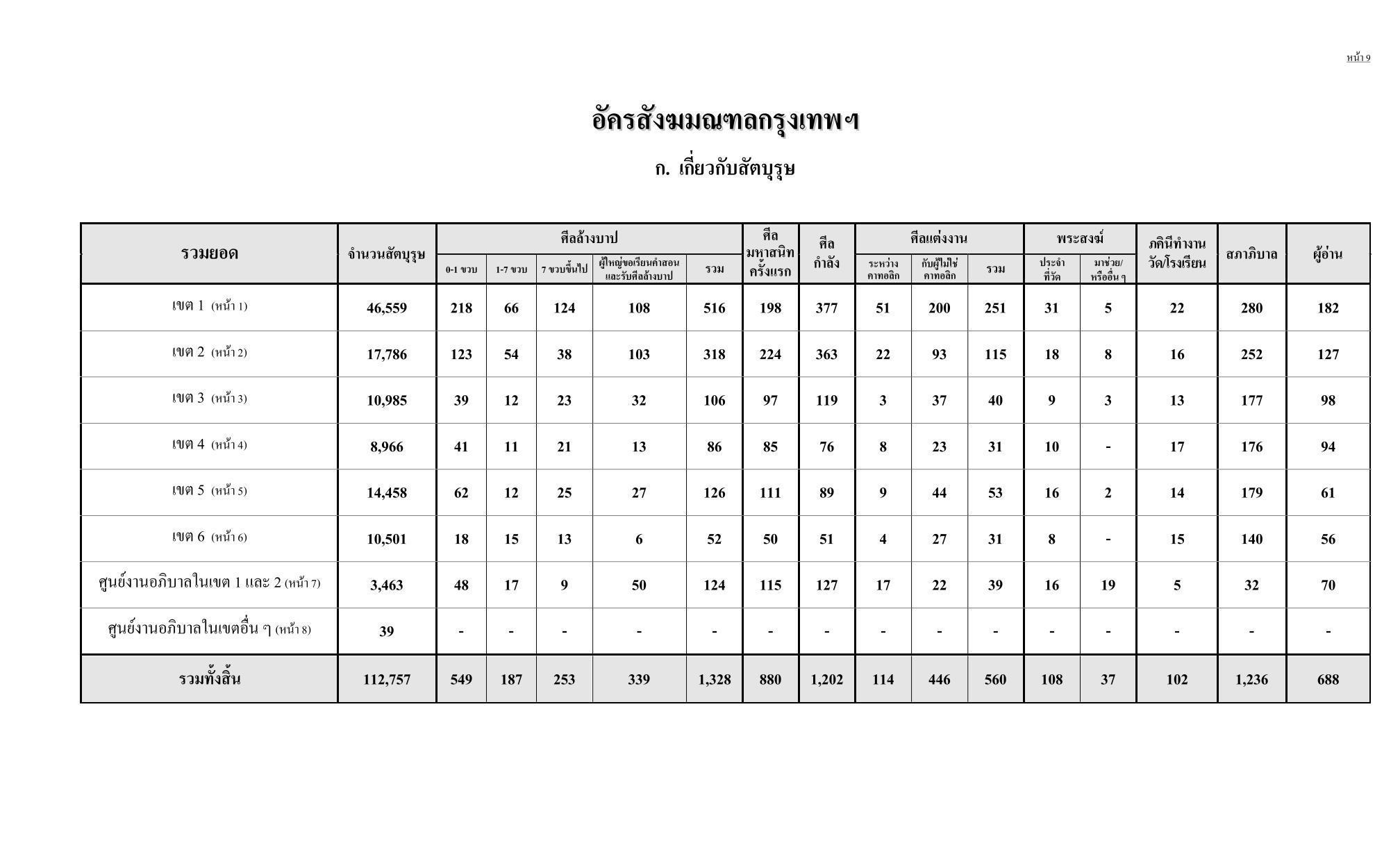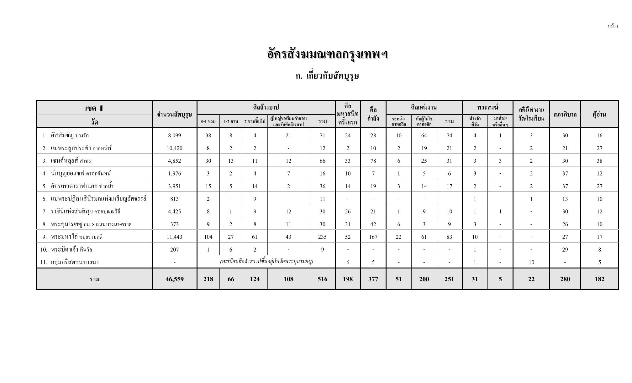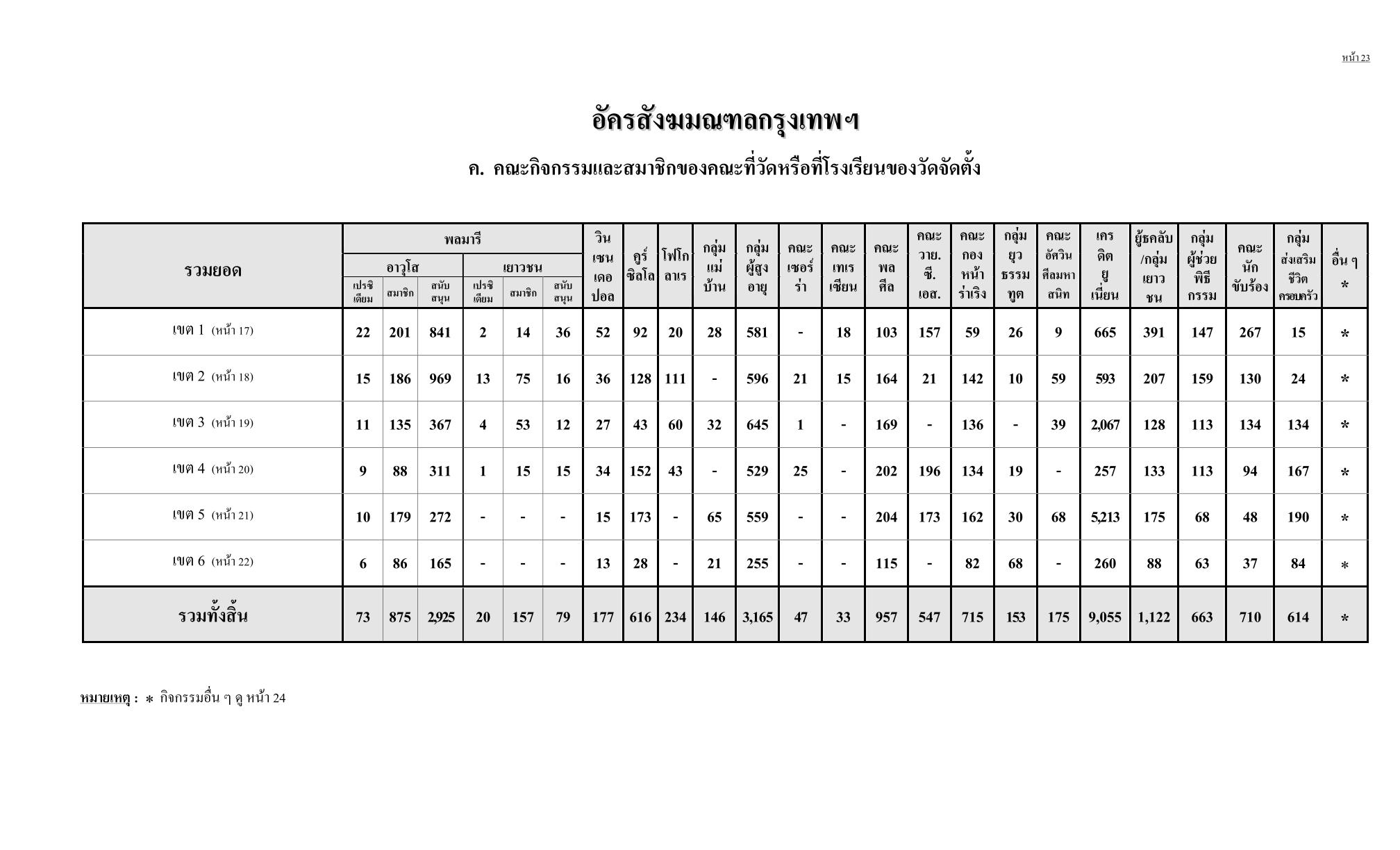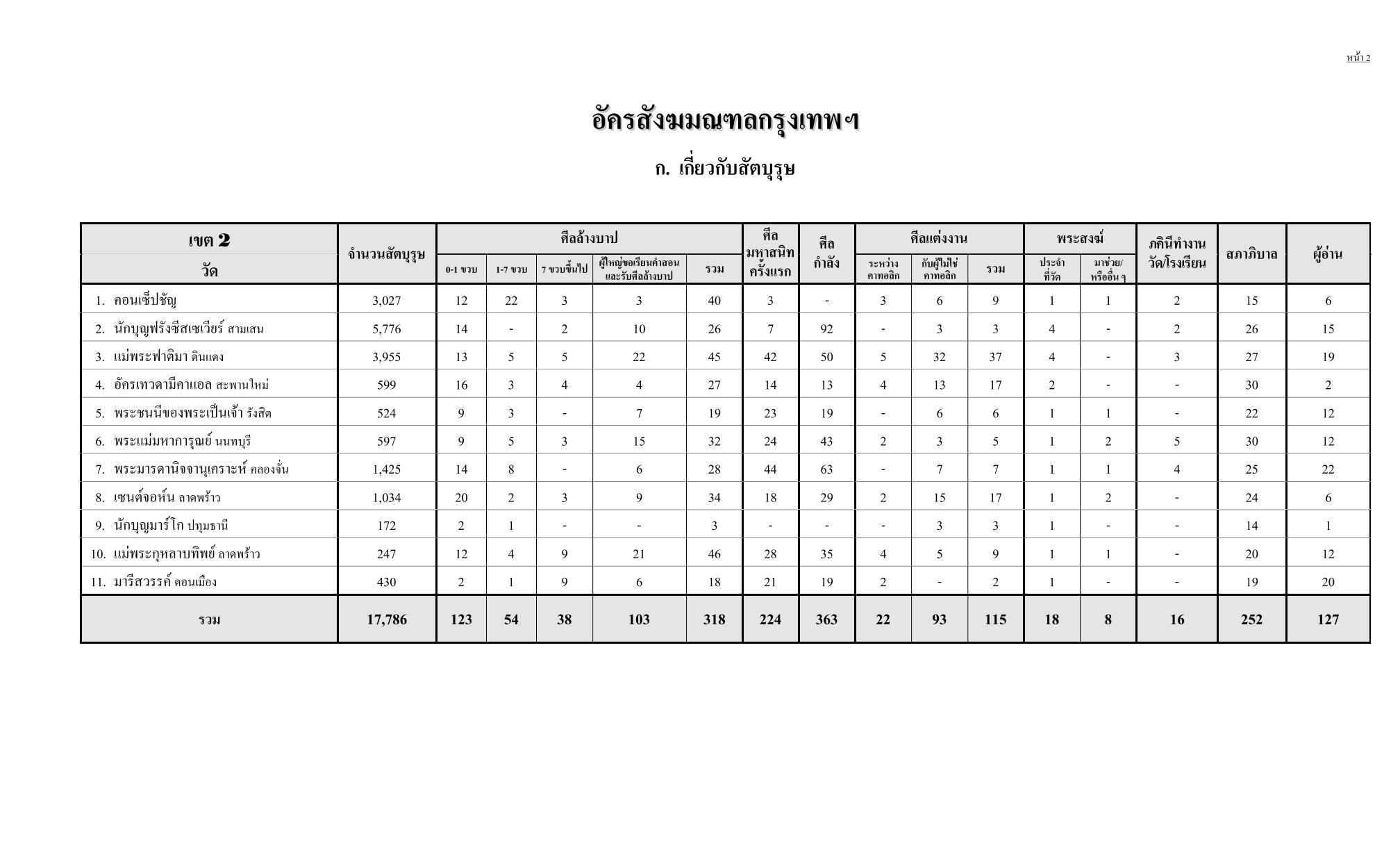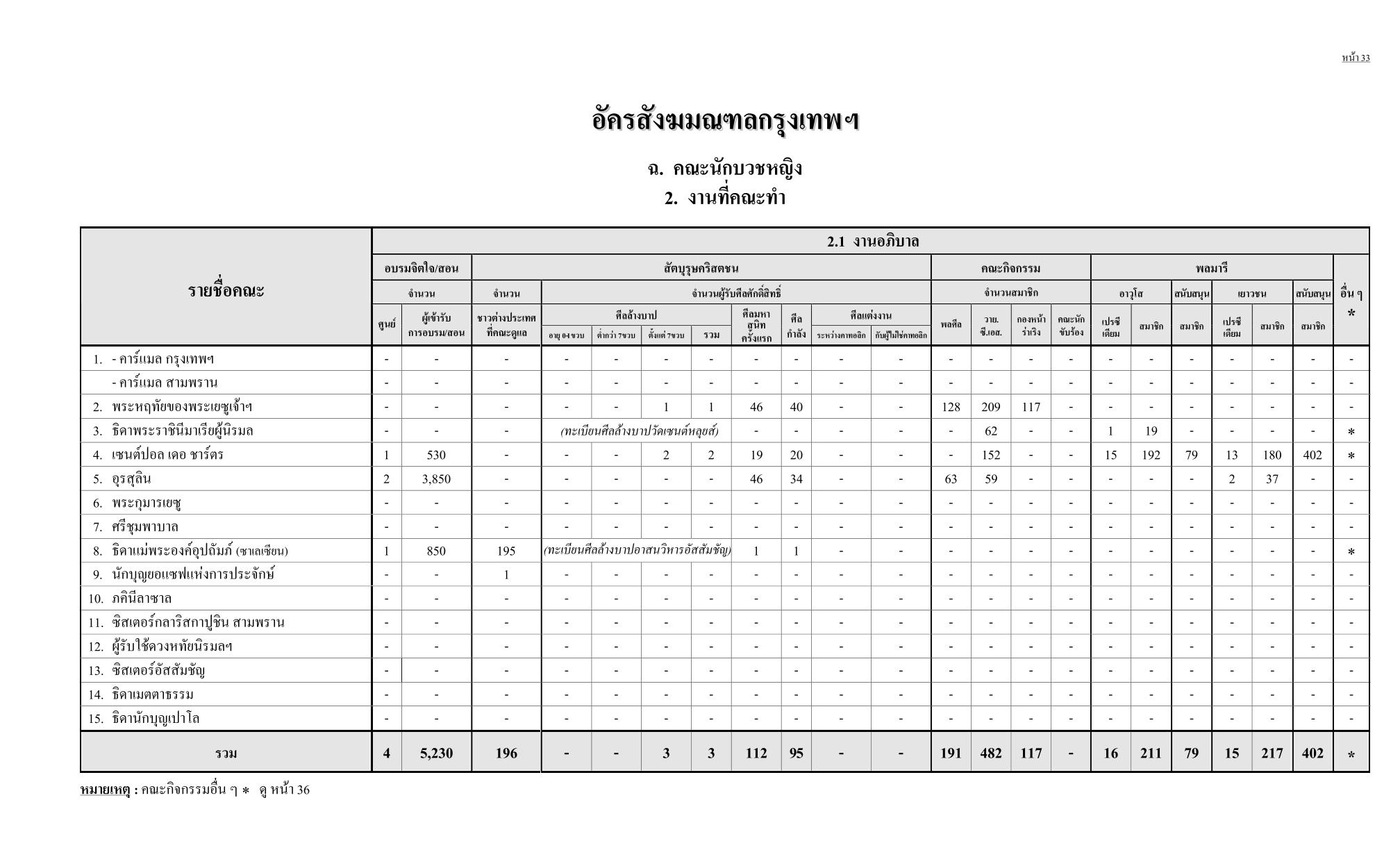 ข้อมูลสถิติประจำปี อัครสังฆมณฑลกรุงเทพฯ