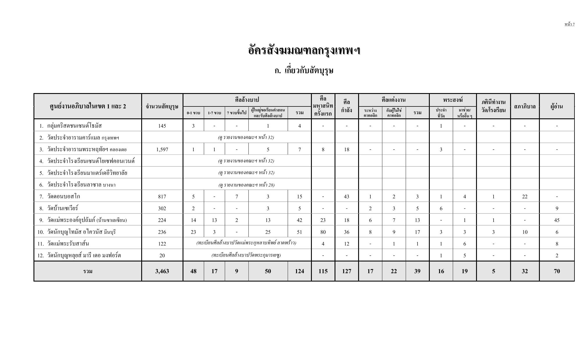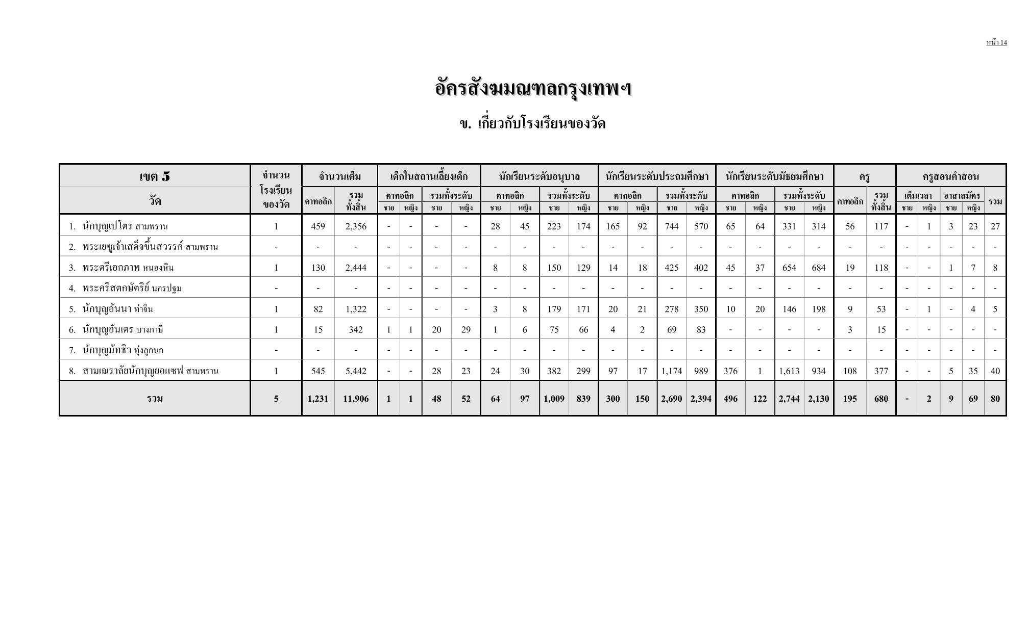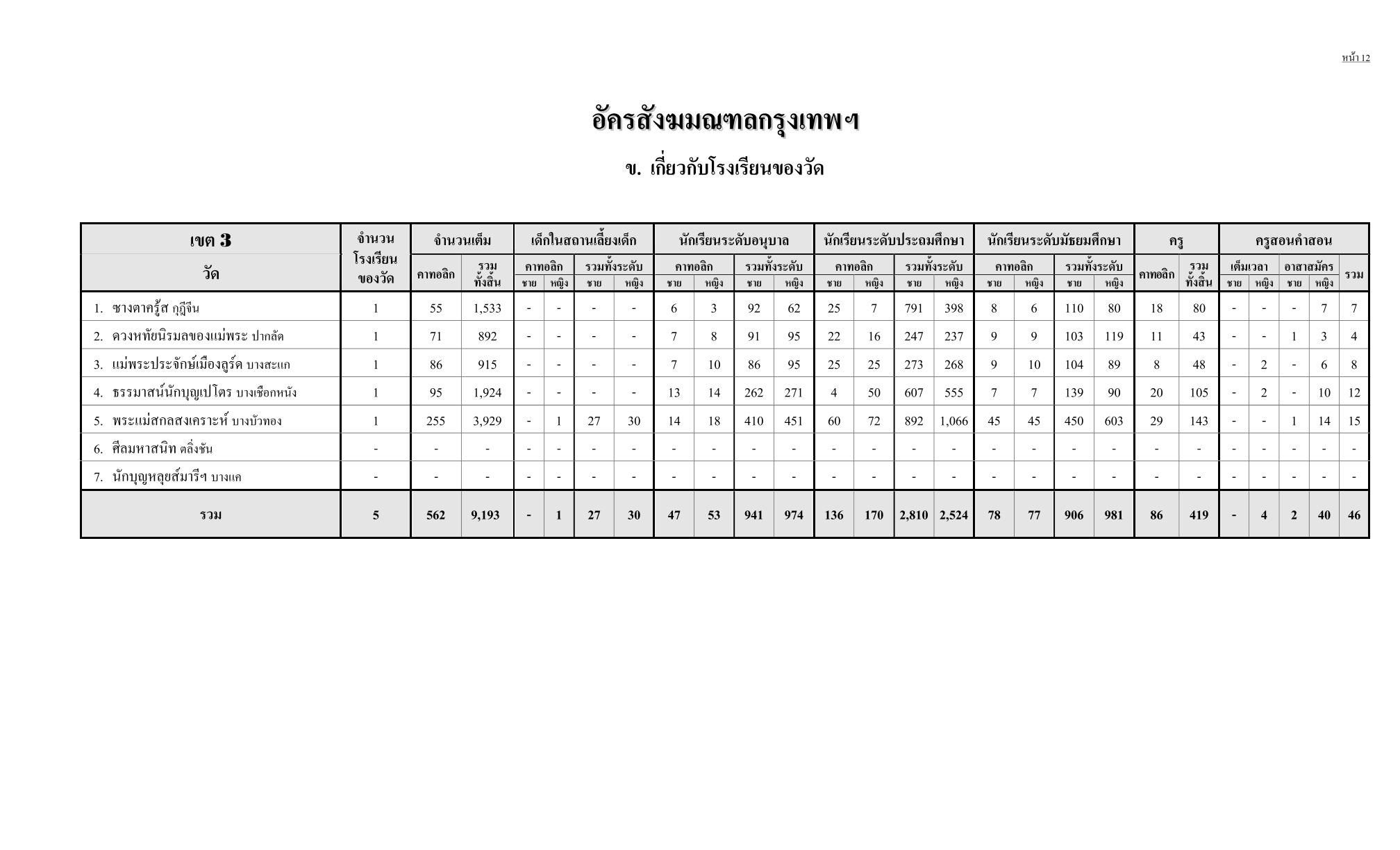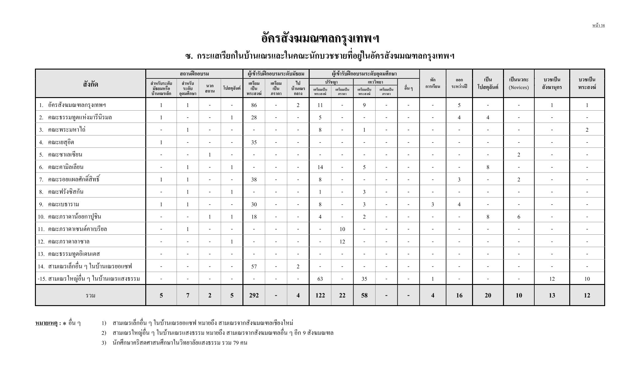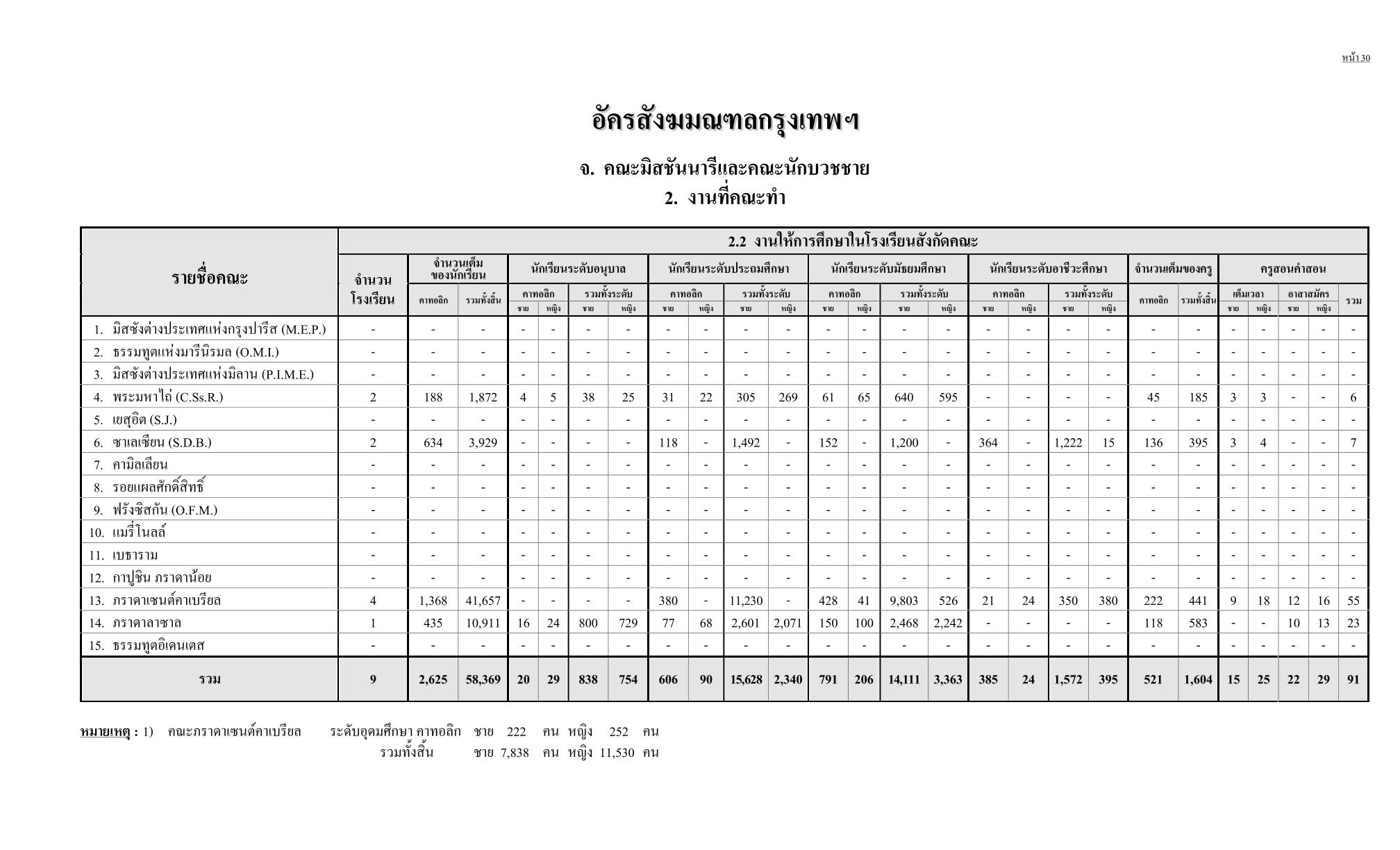 ข้อมูลสถิติประจำปี อัครสังฆมณฑลกรุงเทพฯ