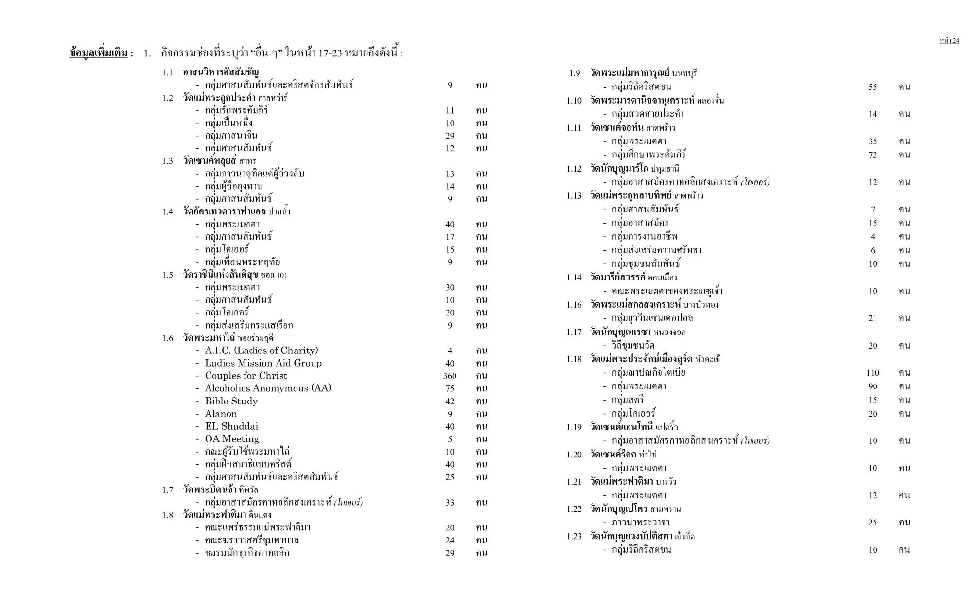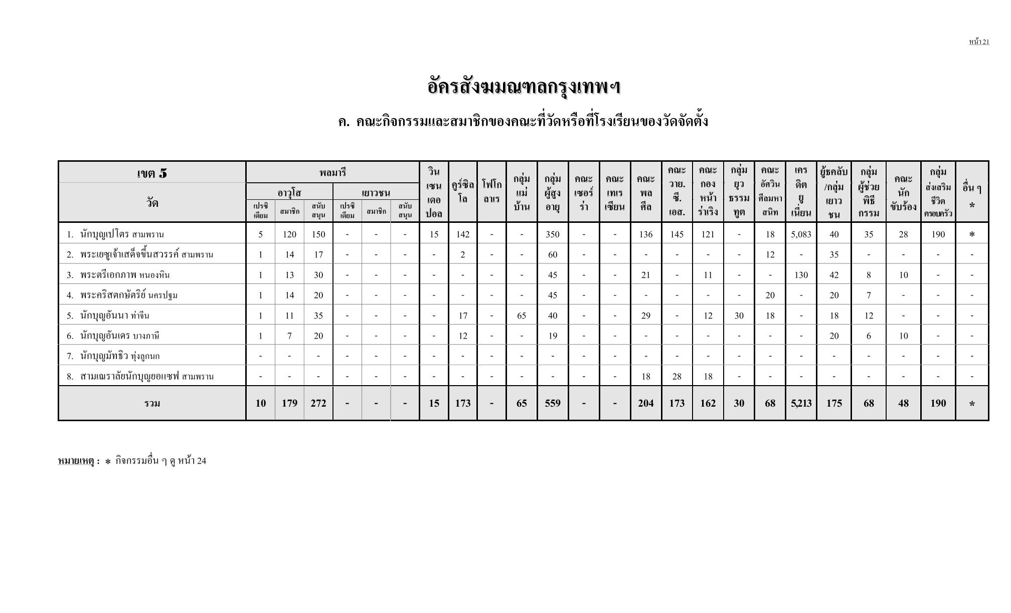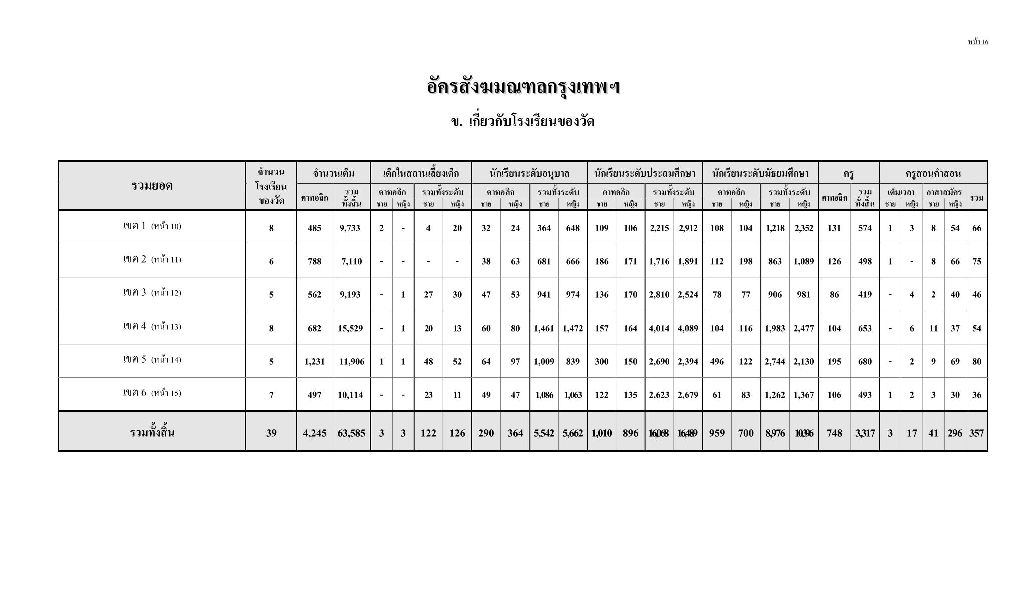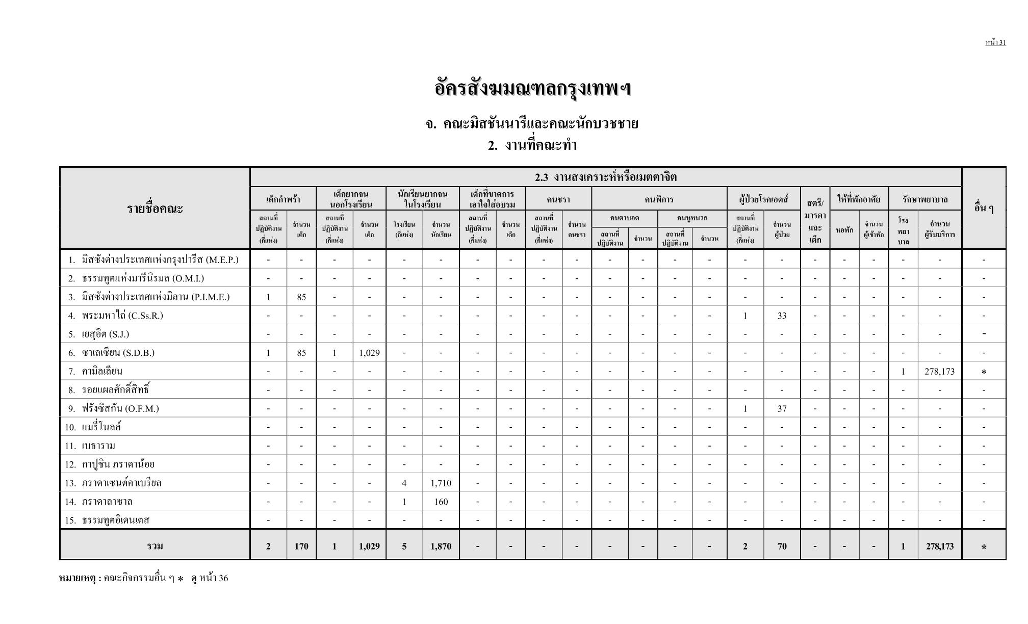 ข้อมูลสถิติประจำปี อัครสังฆมณฑลกรุงเทพฯ