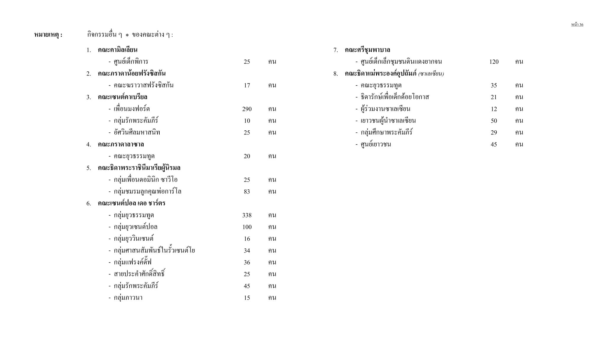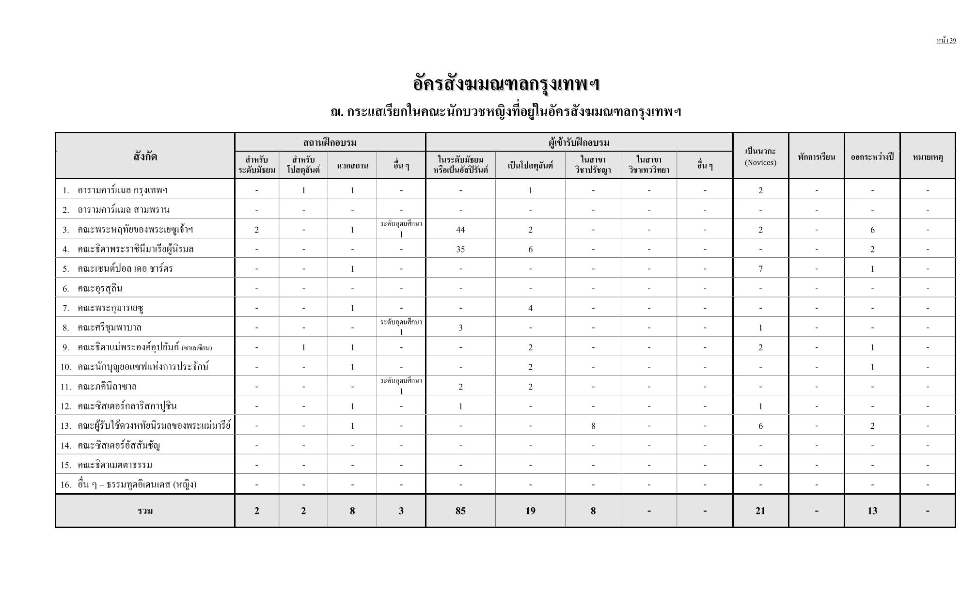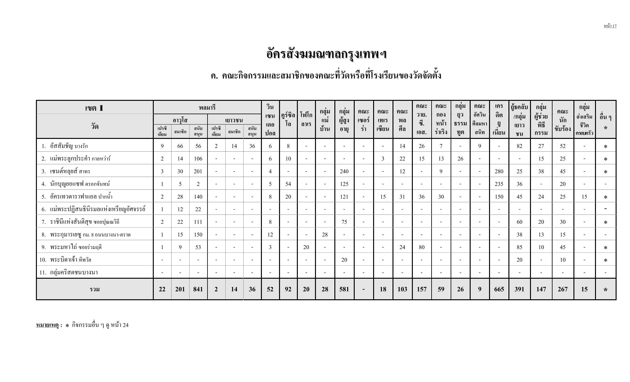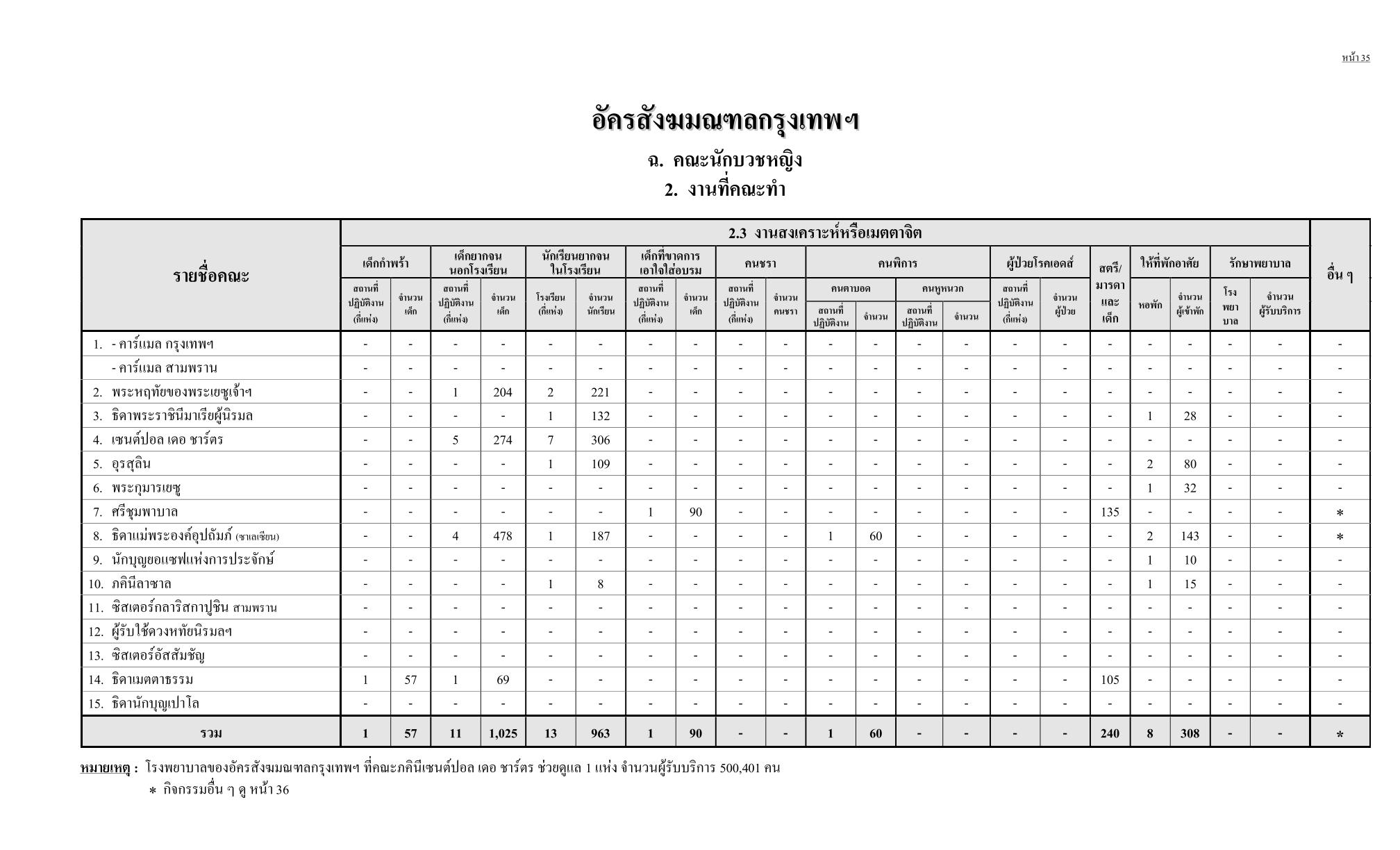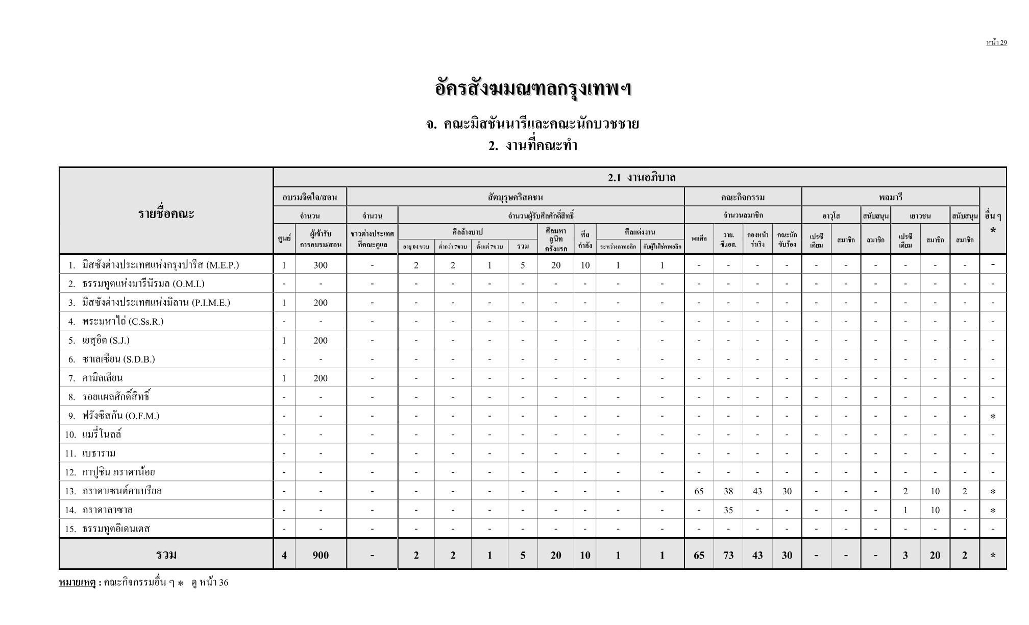 ข้อมูลสถิติประจำปี อัครสังฆมณฑลกรุงเทพฯ