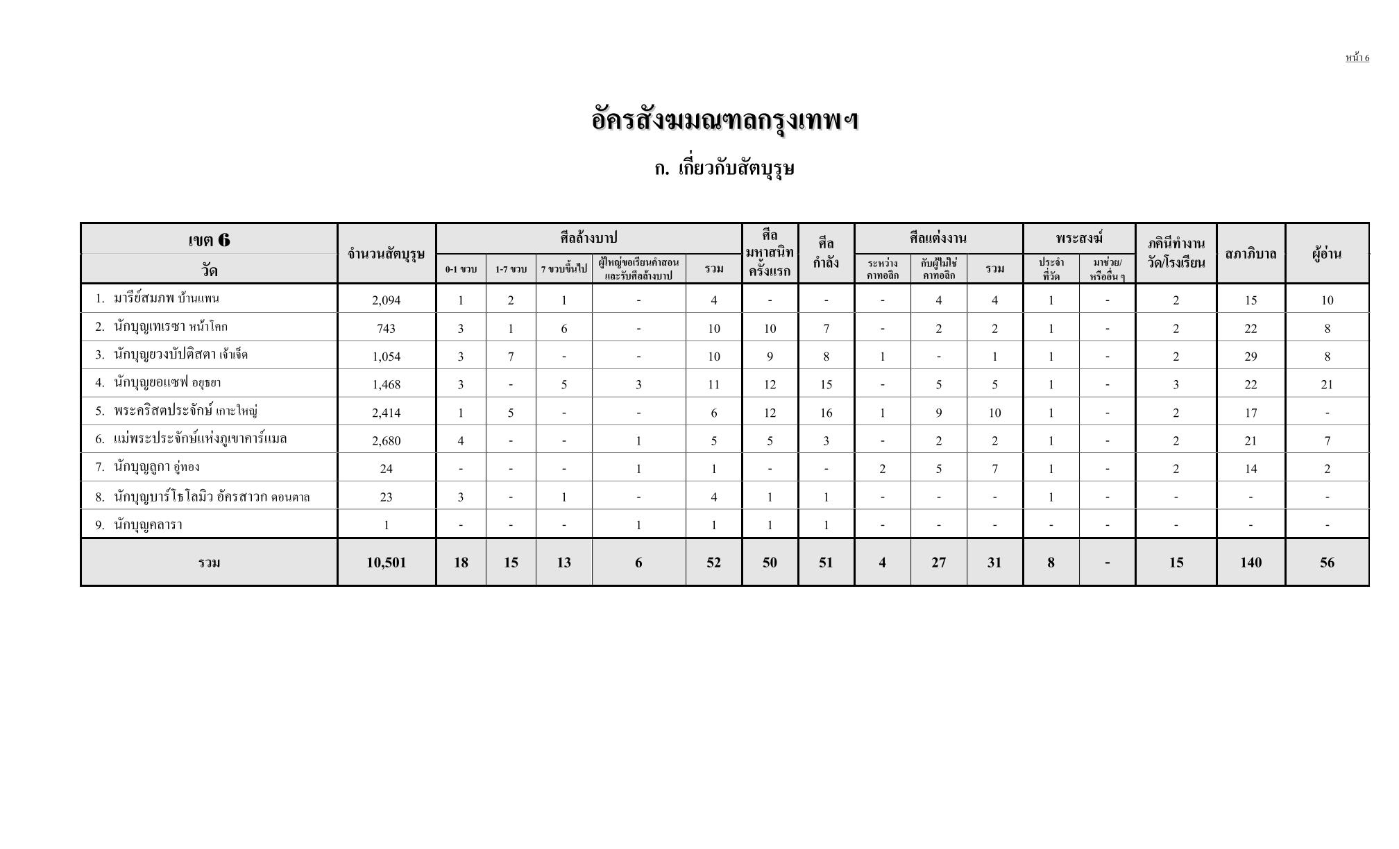 วัดในอัครสังฆมณฑลกรุงเทพฯ เขต 6