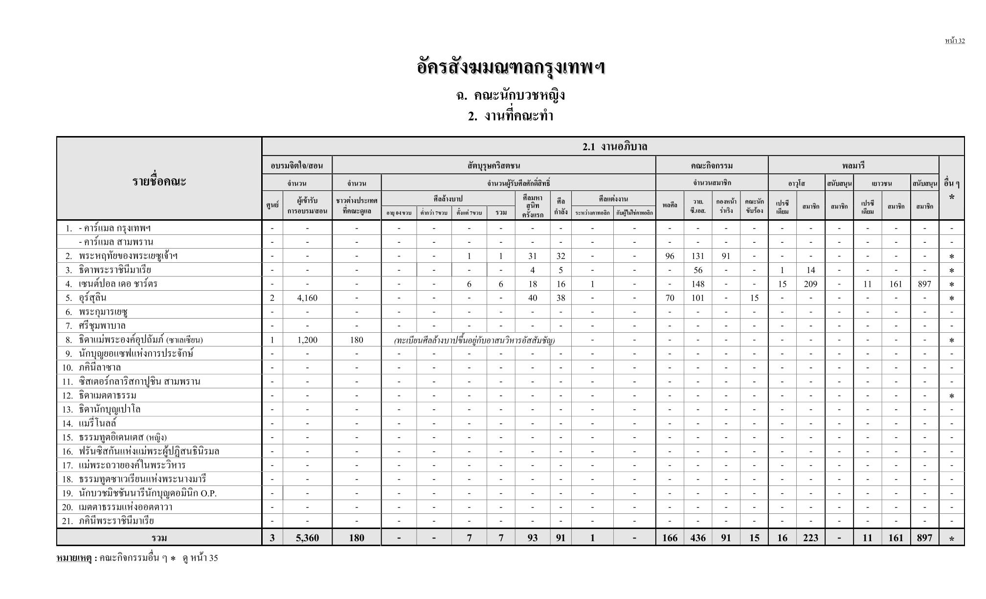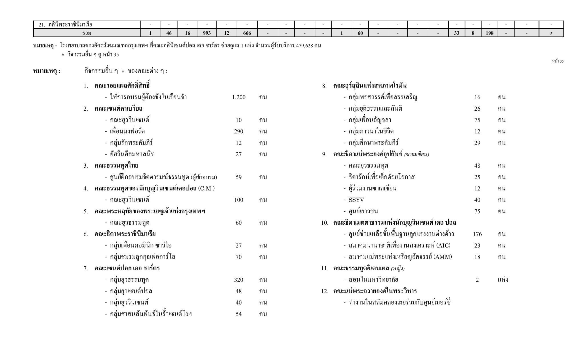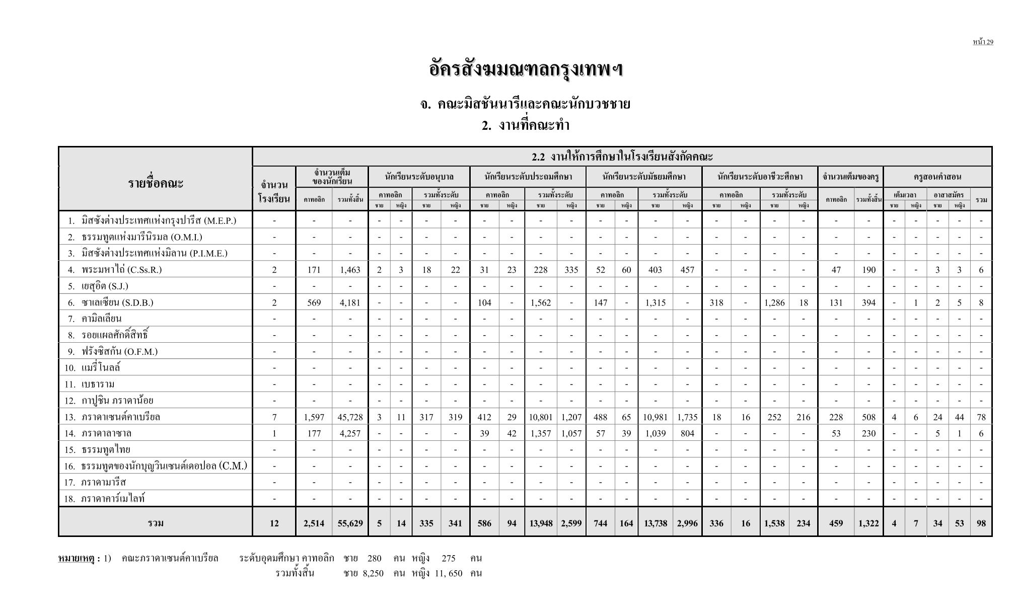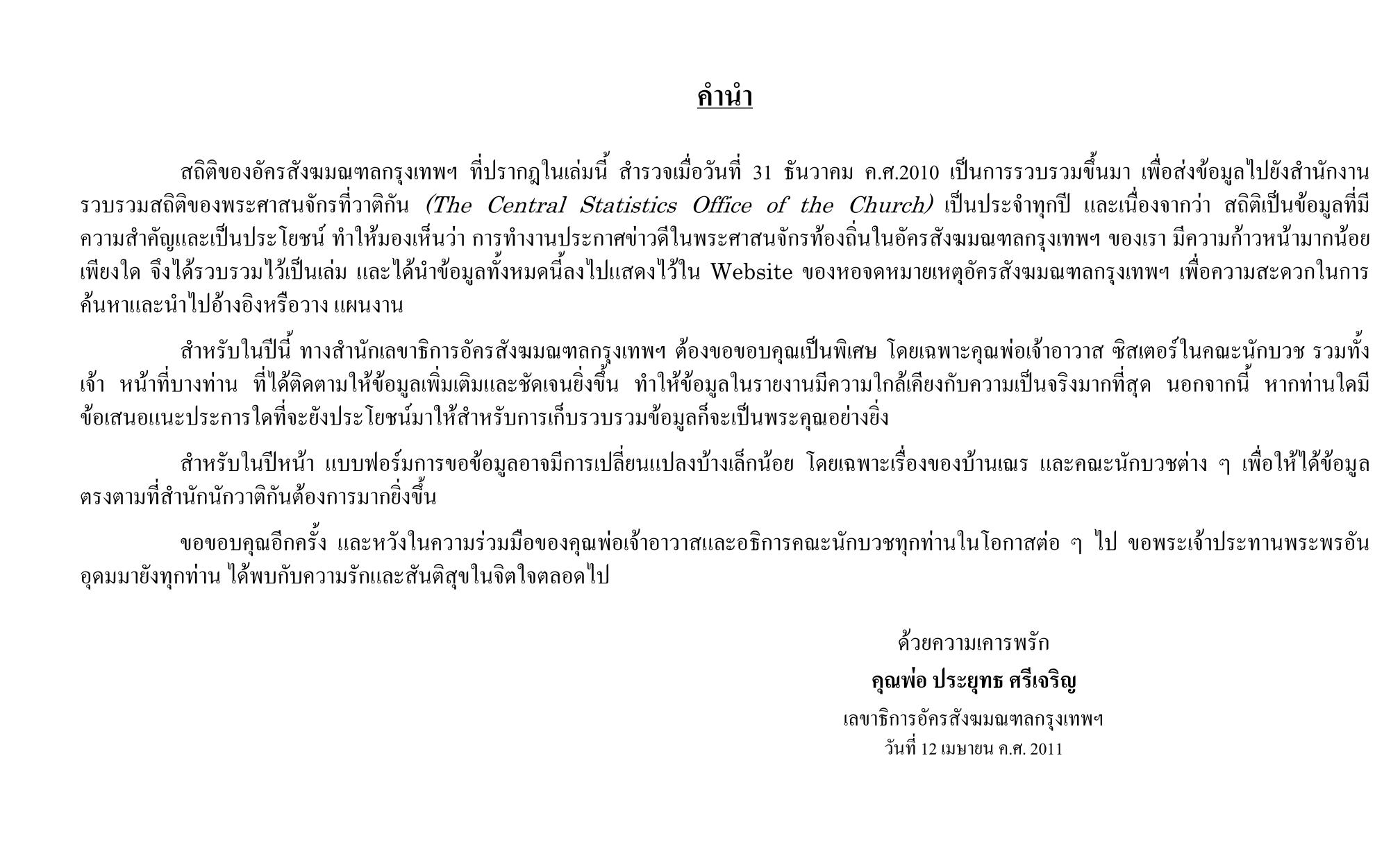 ข้อมูลสถิติประจำปี อัครสังฆมณฑลกรุงเทพฯ