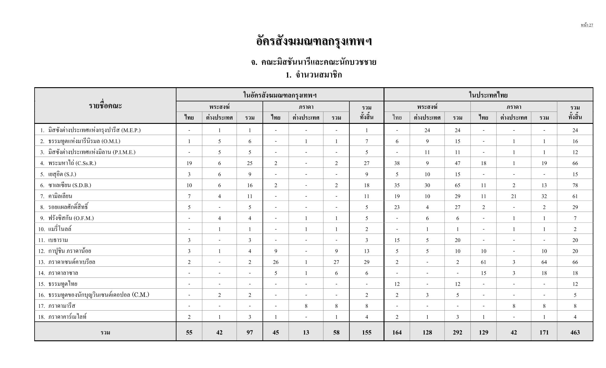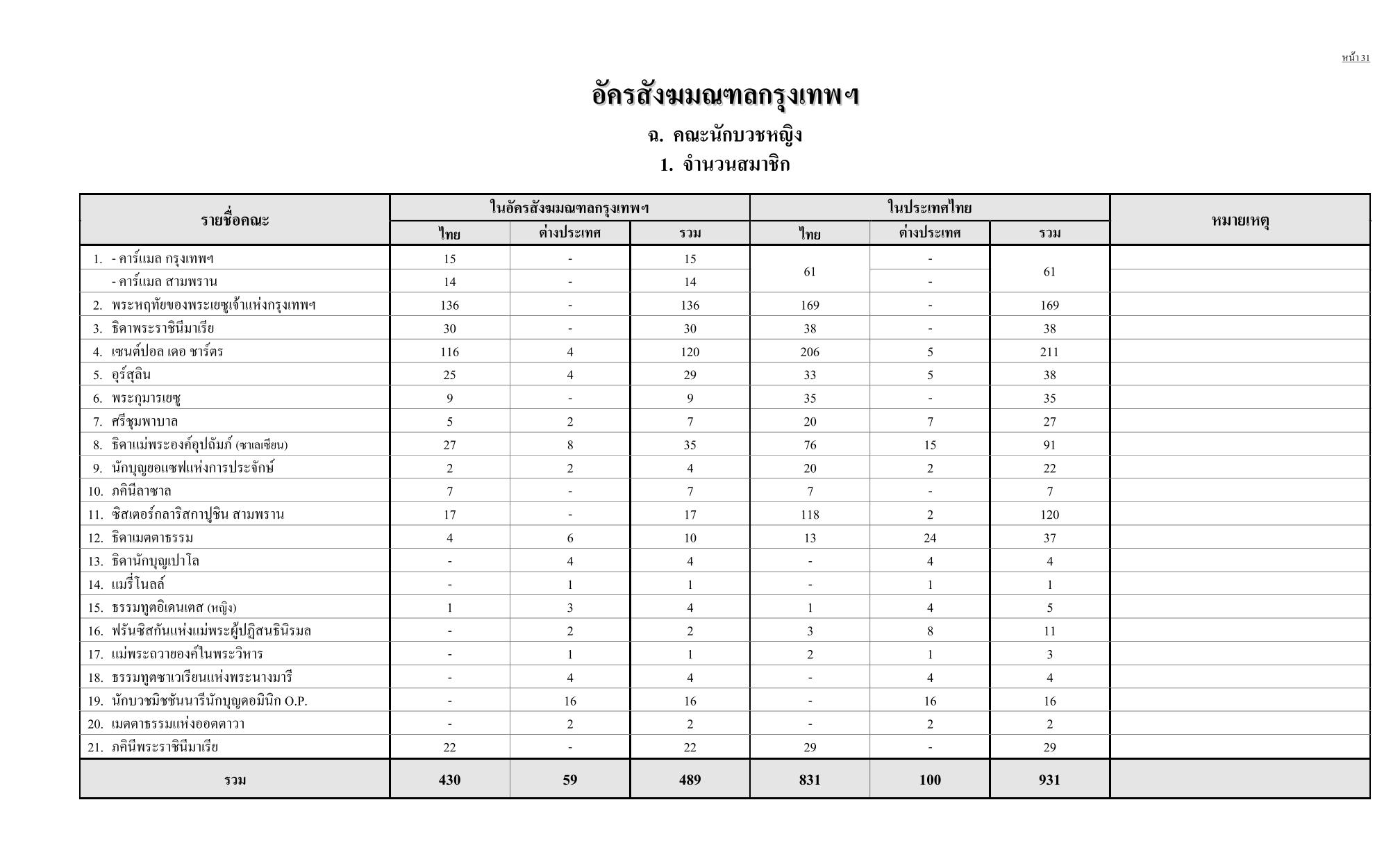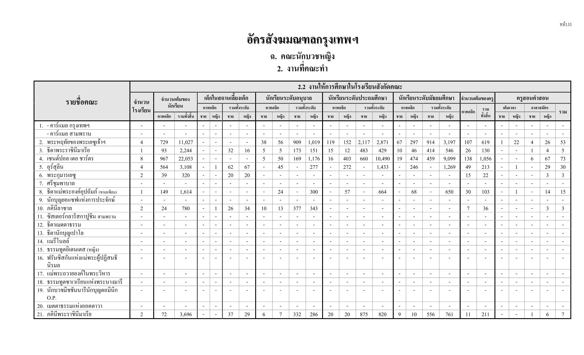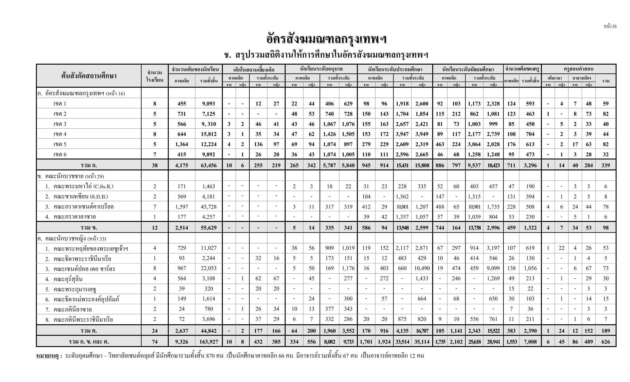 ข้อมูลสถิติประจำปี อัครสังฆมณฑลกรุงเทพฯ