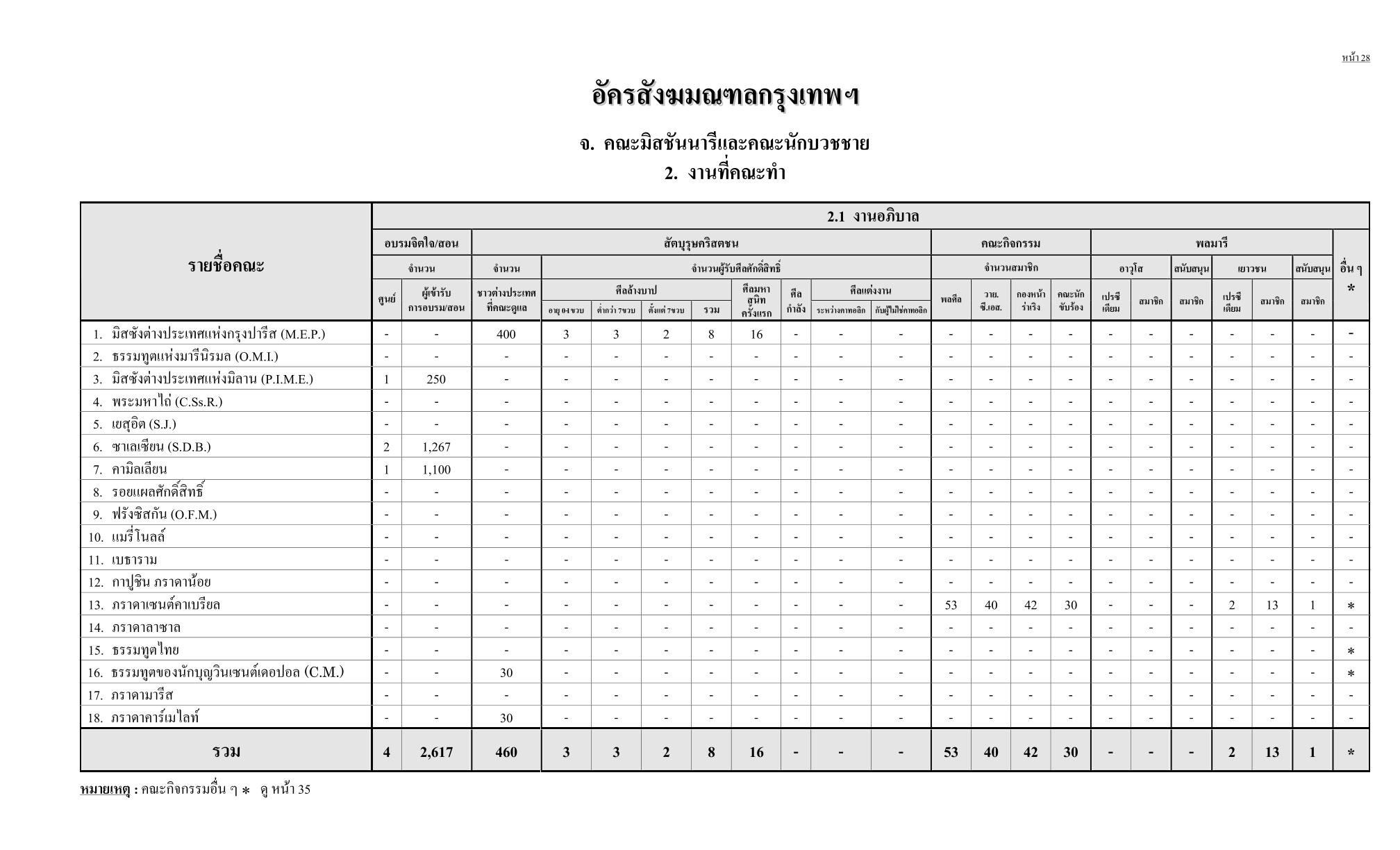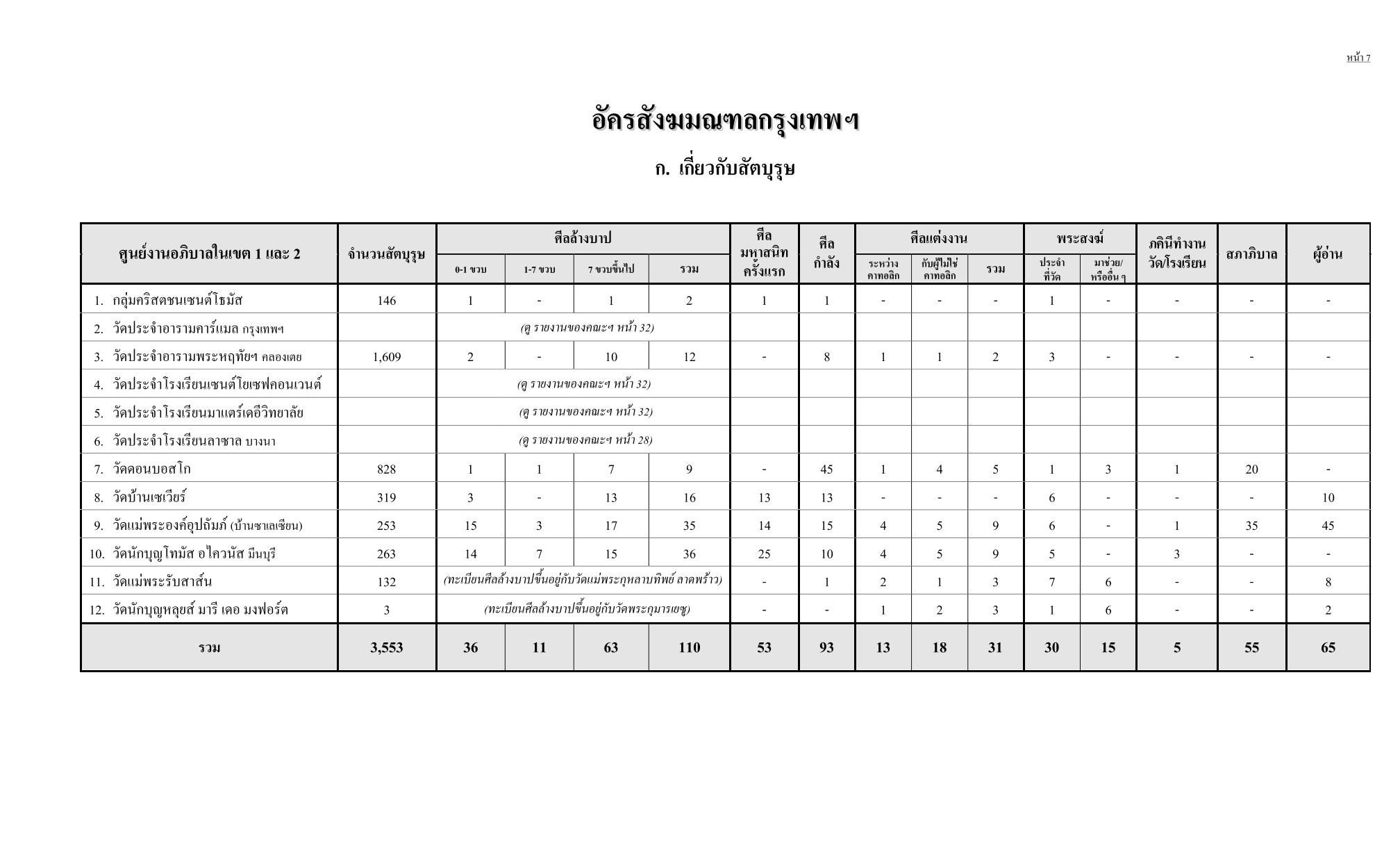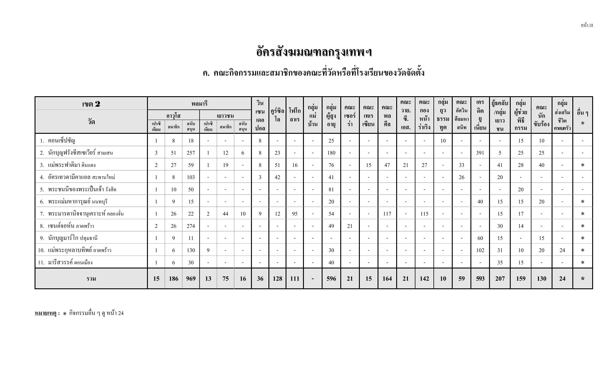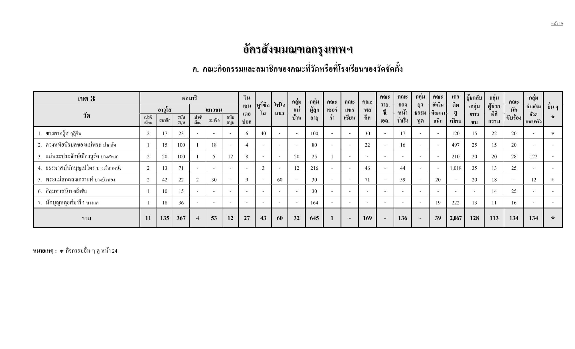 ข้อมูลสถิติประจำปี อัครสังฆมณฑลกรุงเทพฯ