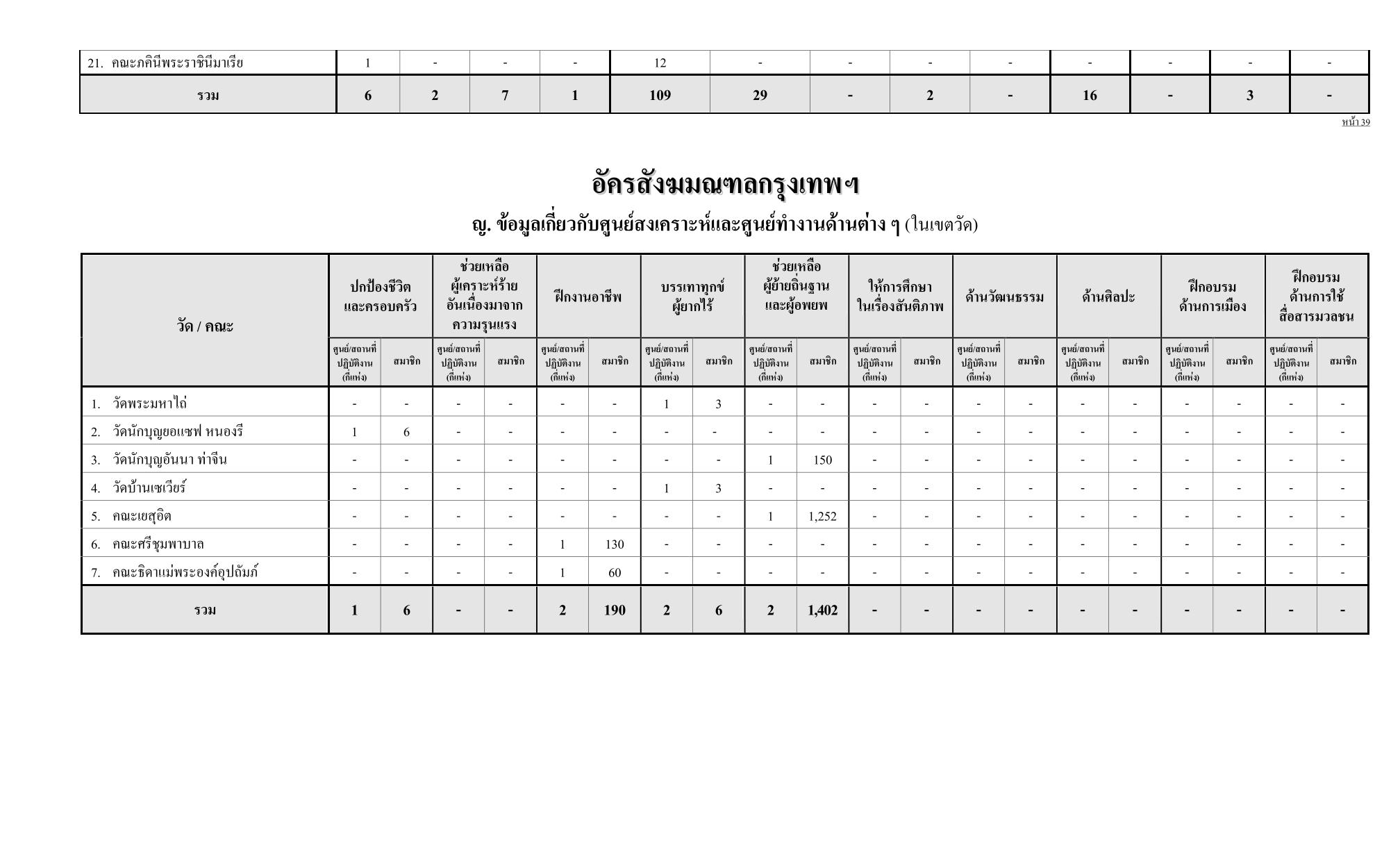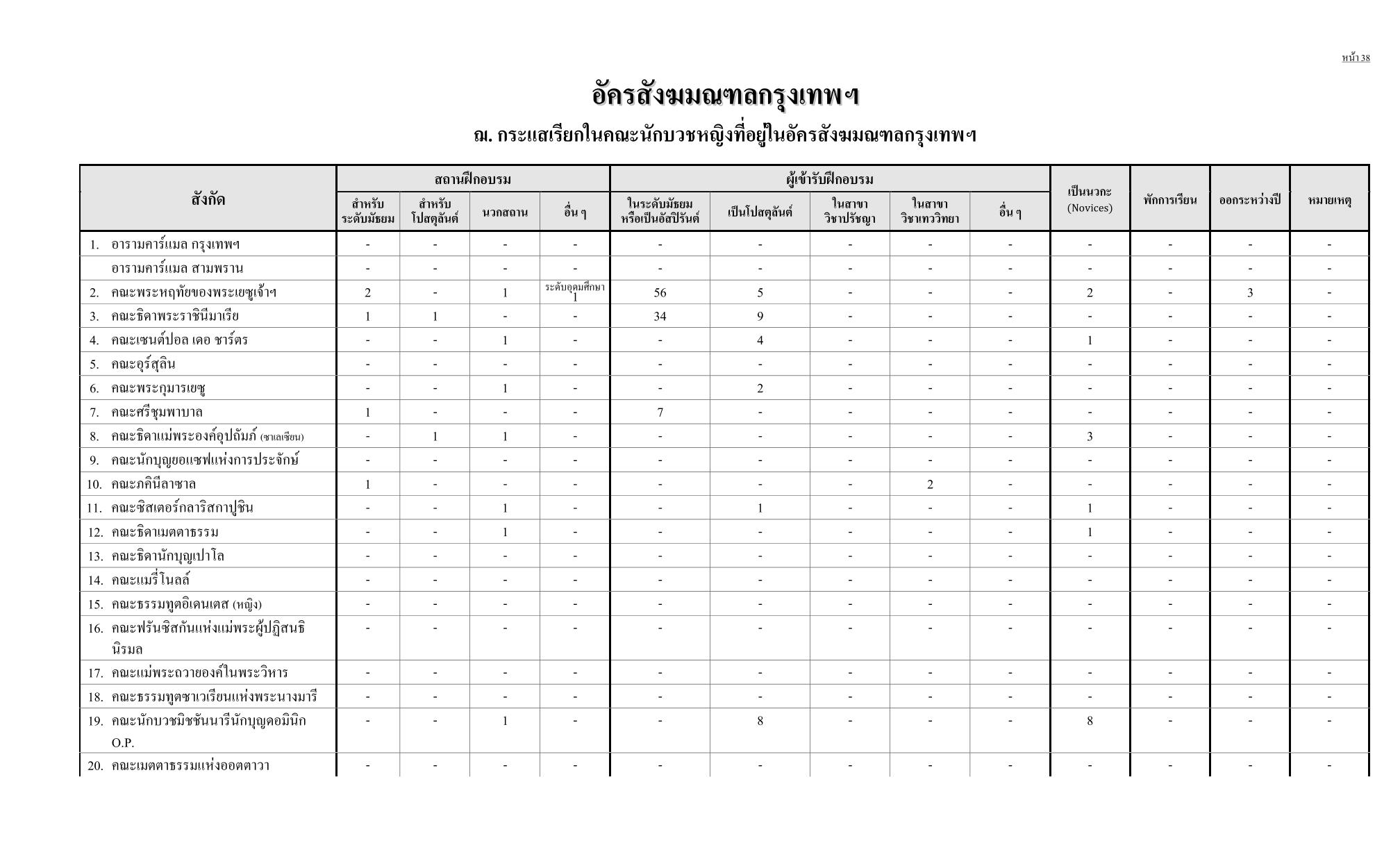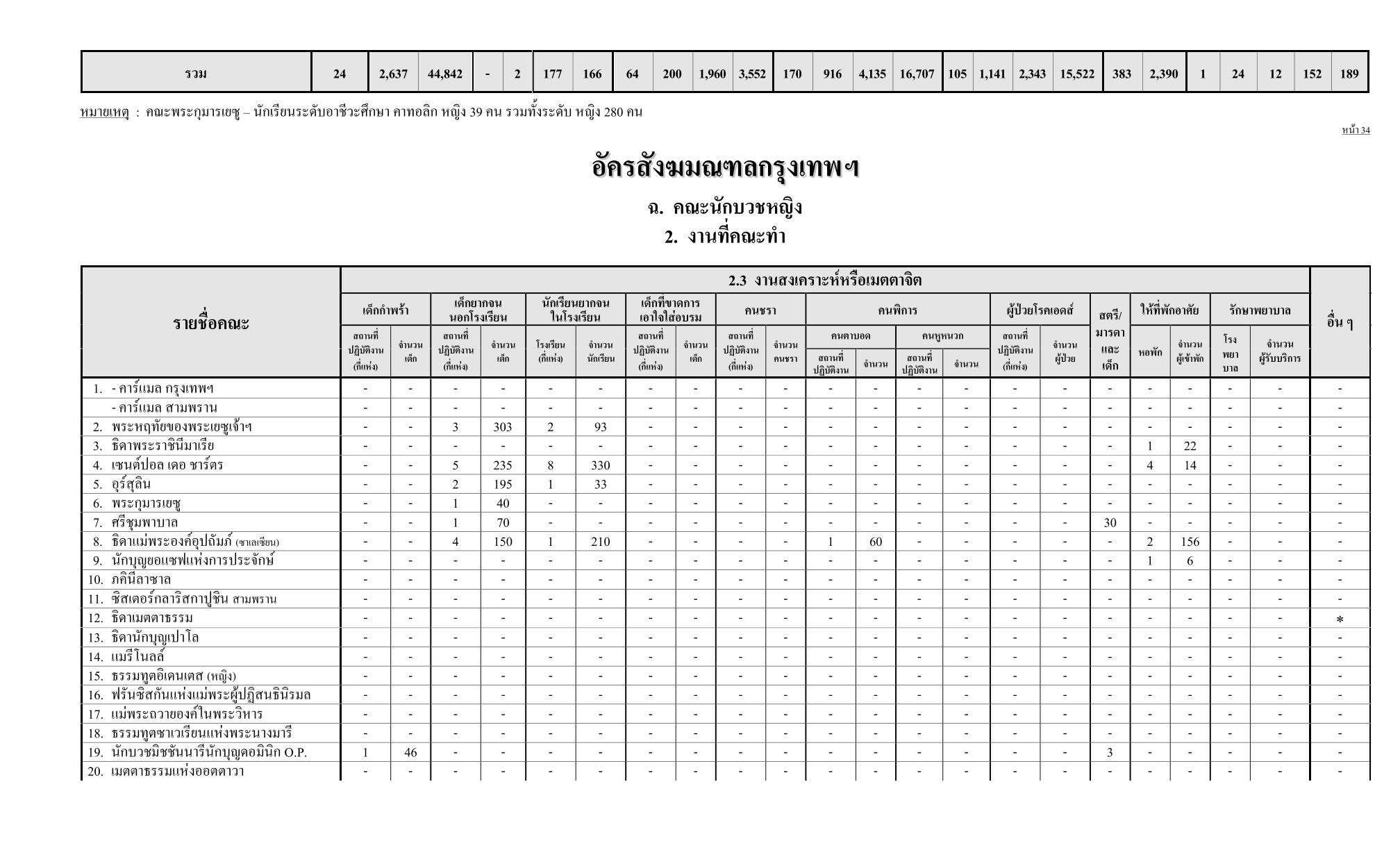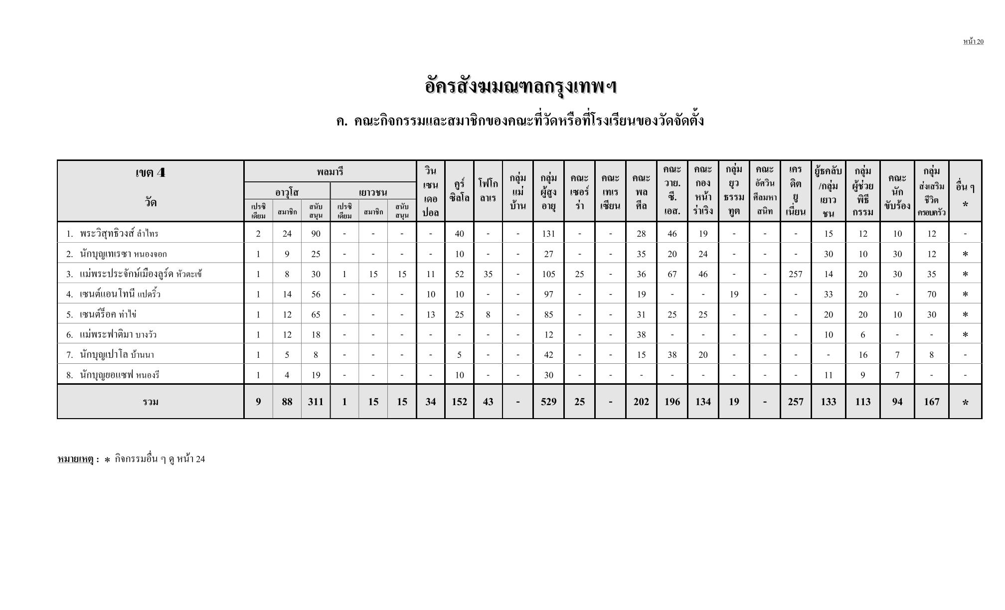 ข้อมูลสถิติประจำปี อัครสังฆมณฑลกรุงเทพฯ