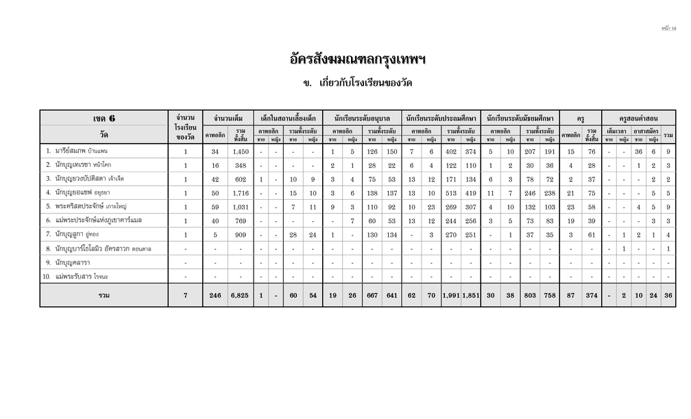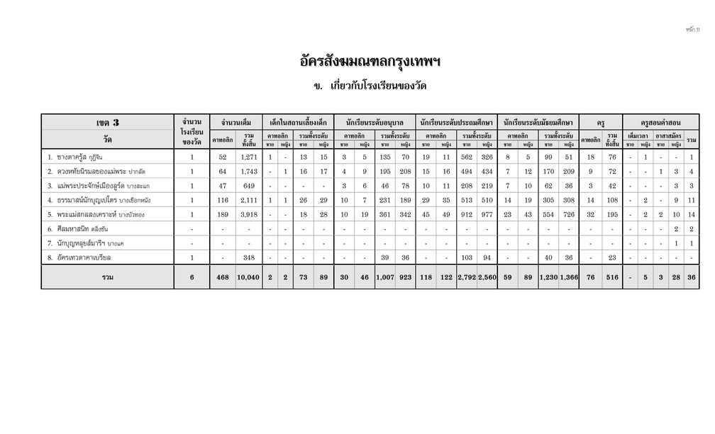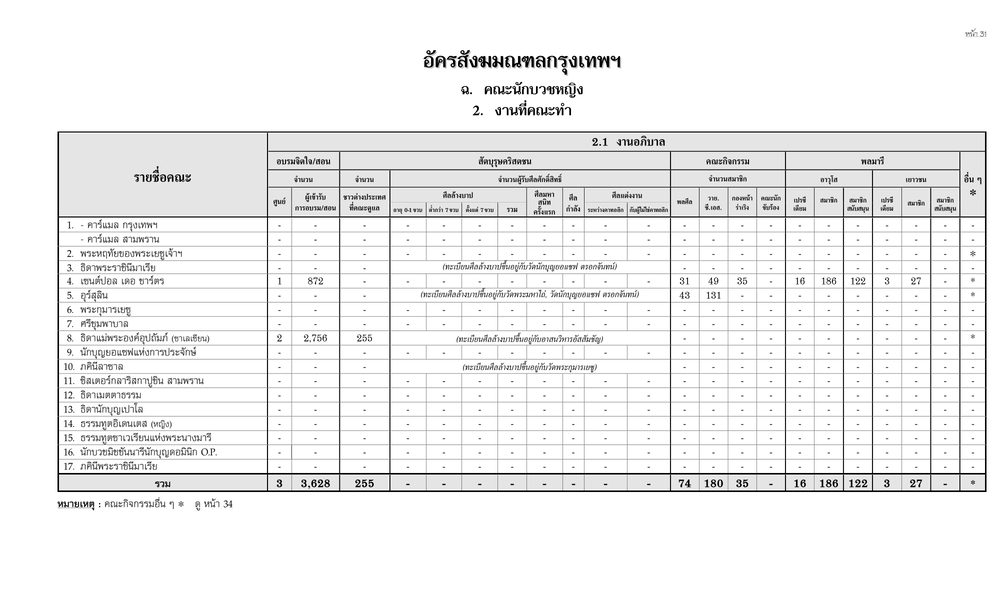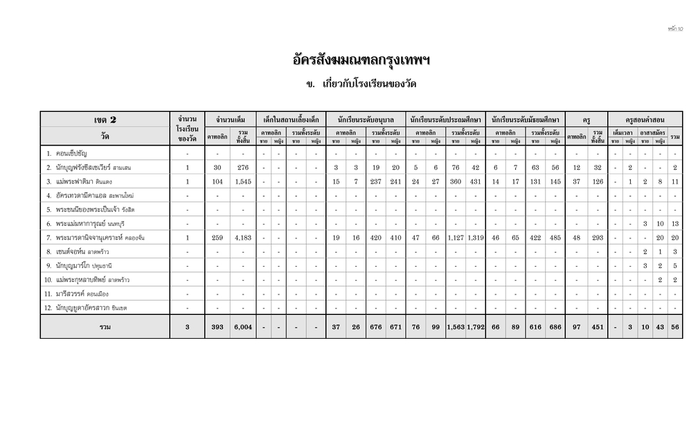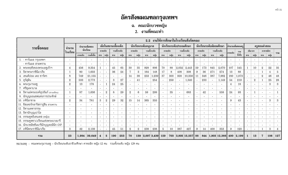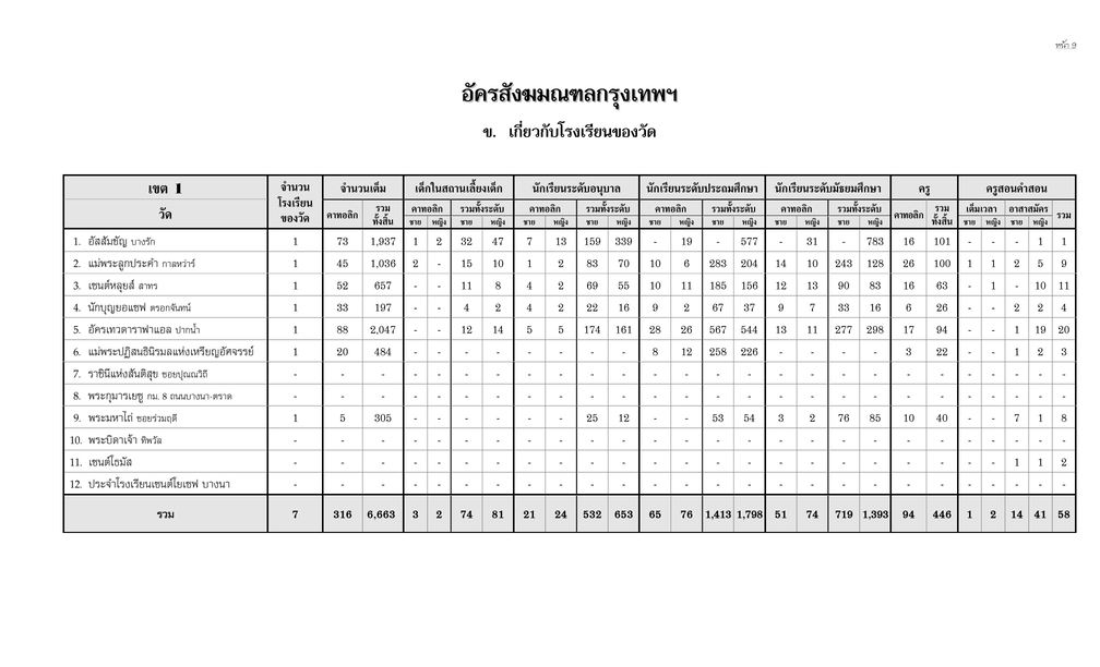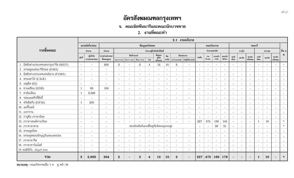 ข้อมูลสถิติประจำปี อัครสังฆมณฑลกรุงเทพฯ