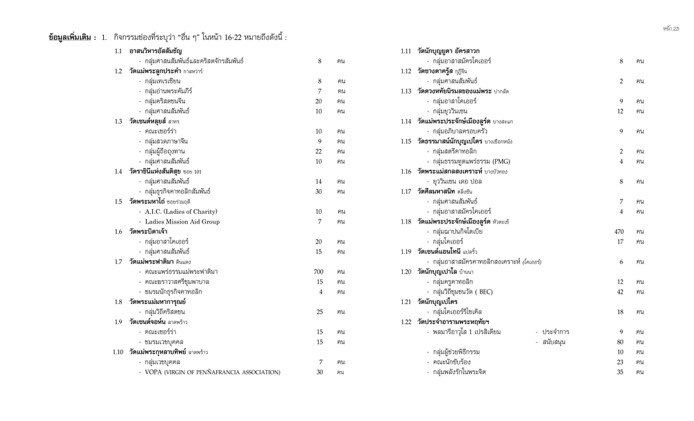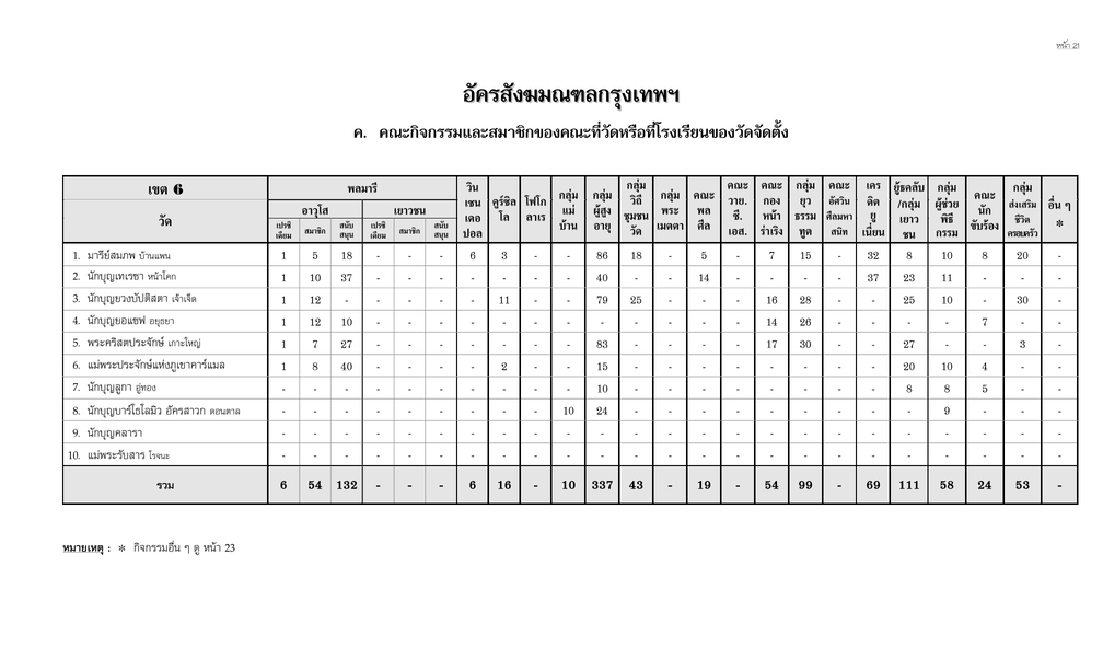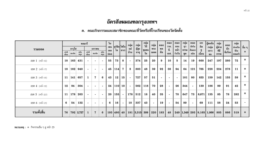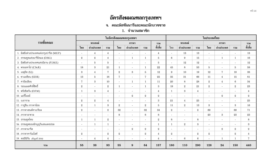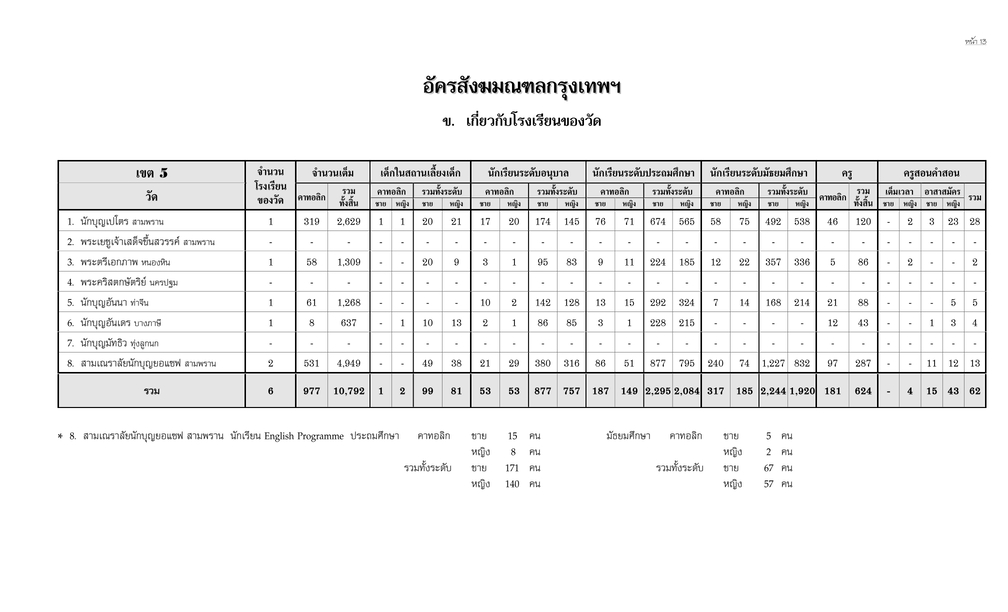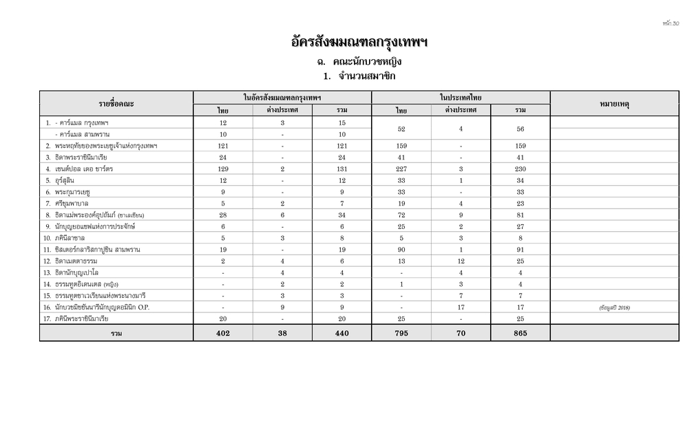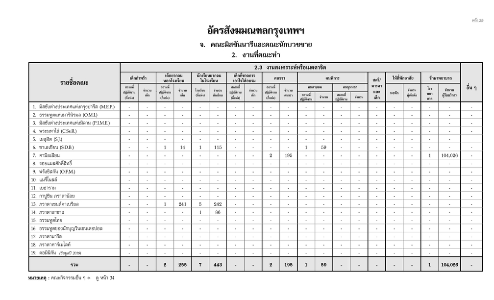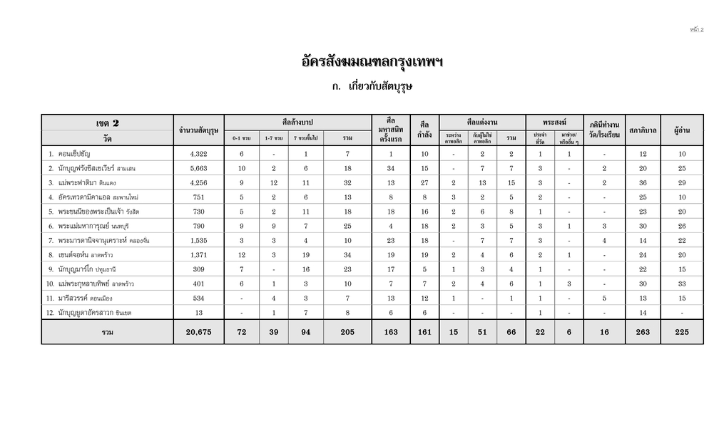 ข้อมูลสถิติประจำปี อัครสังฆมณฑลกรุงเทพฯ