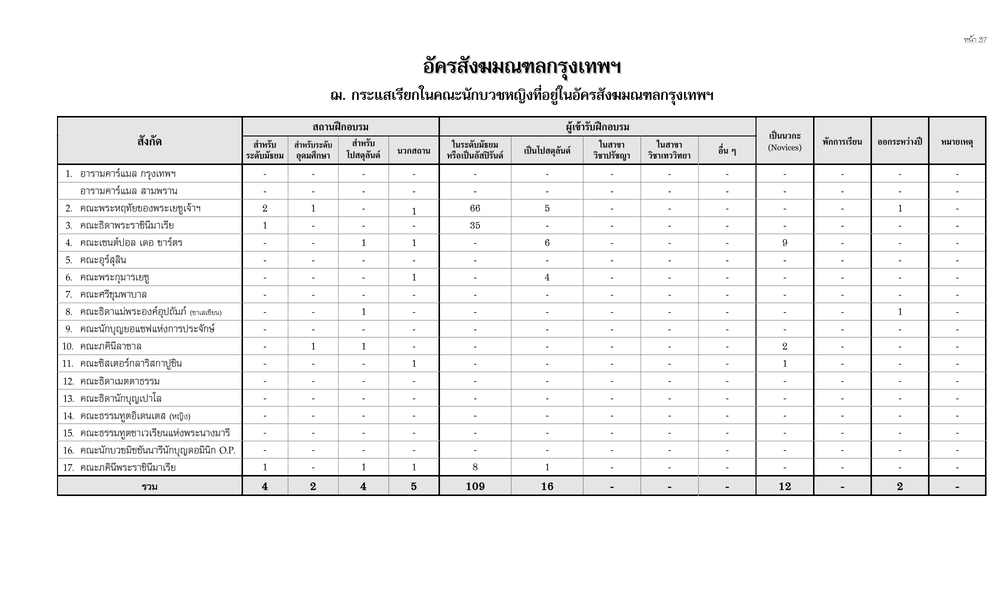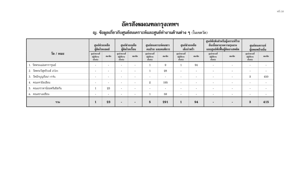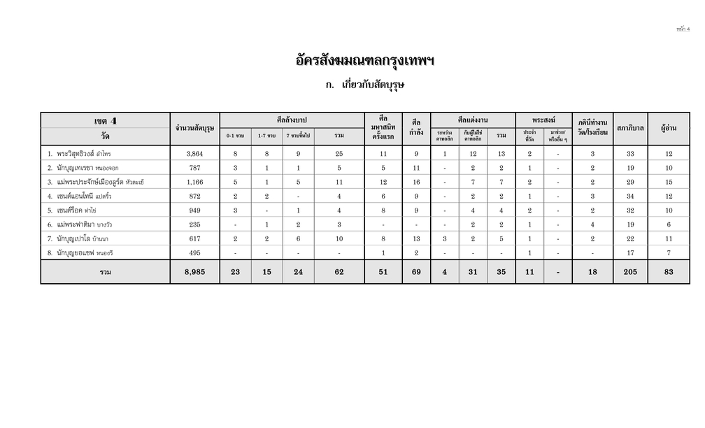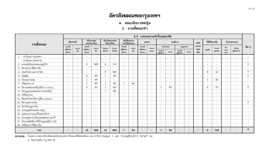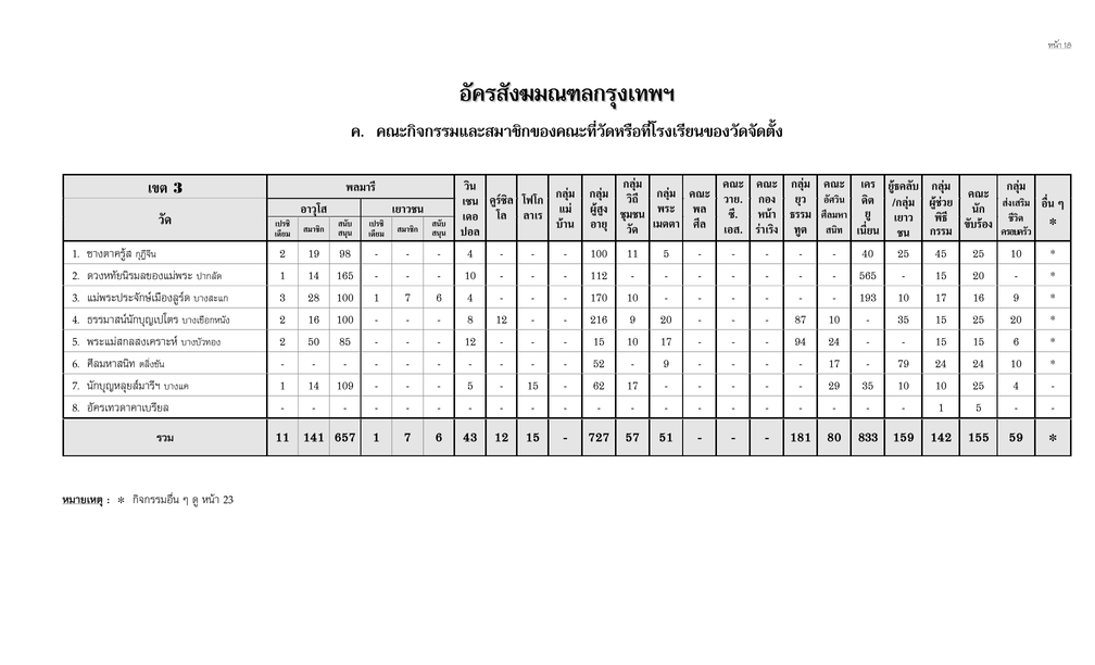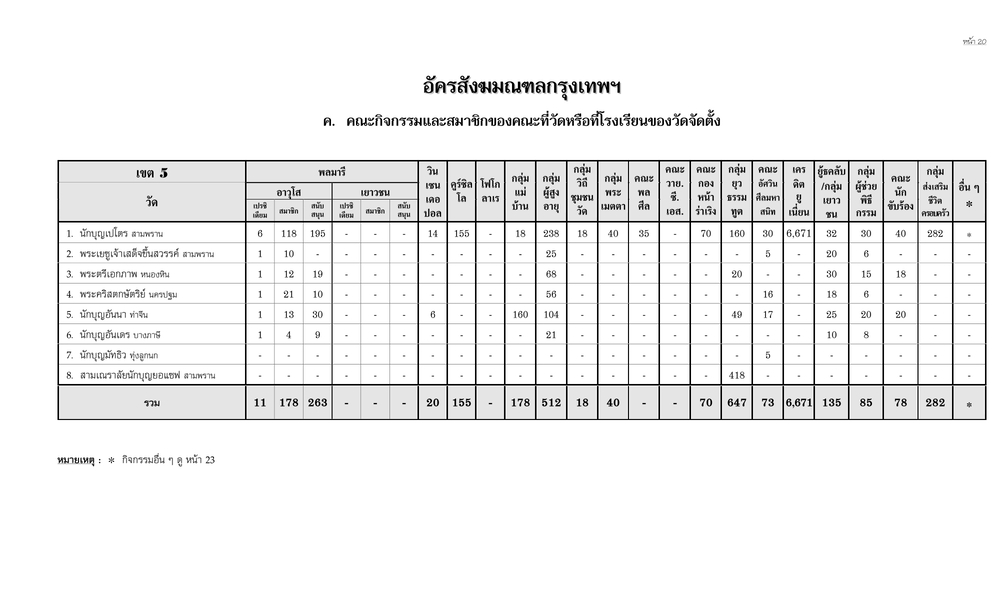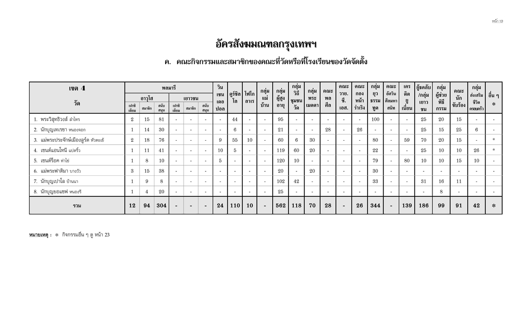 ข้อมูลสถิติประจำปี อัครสังฆมณฑลกรุงเทพฯ