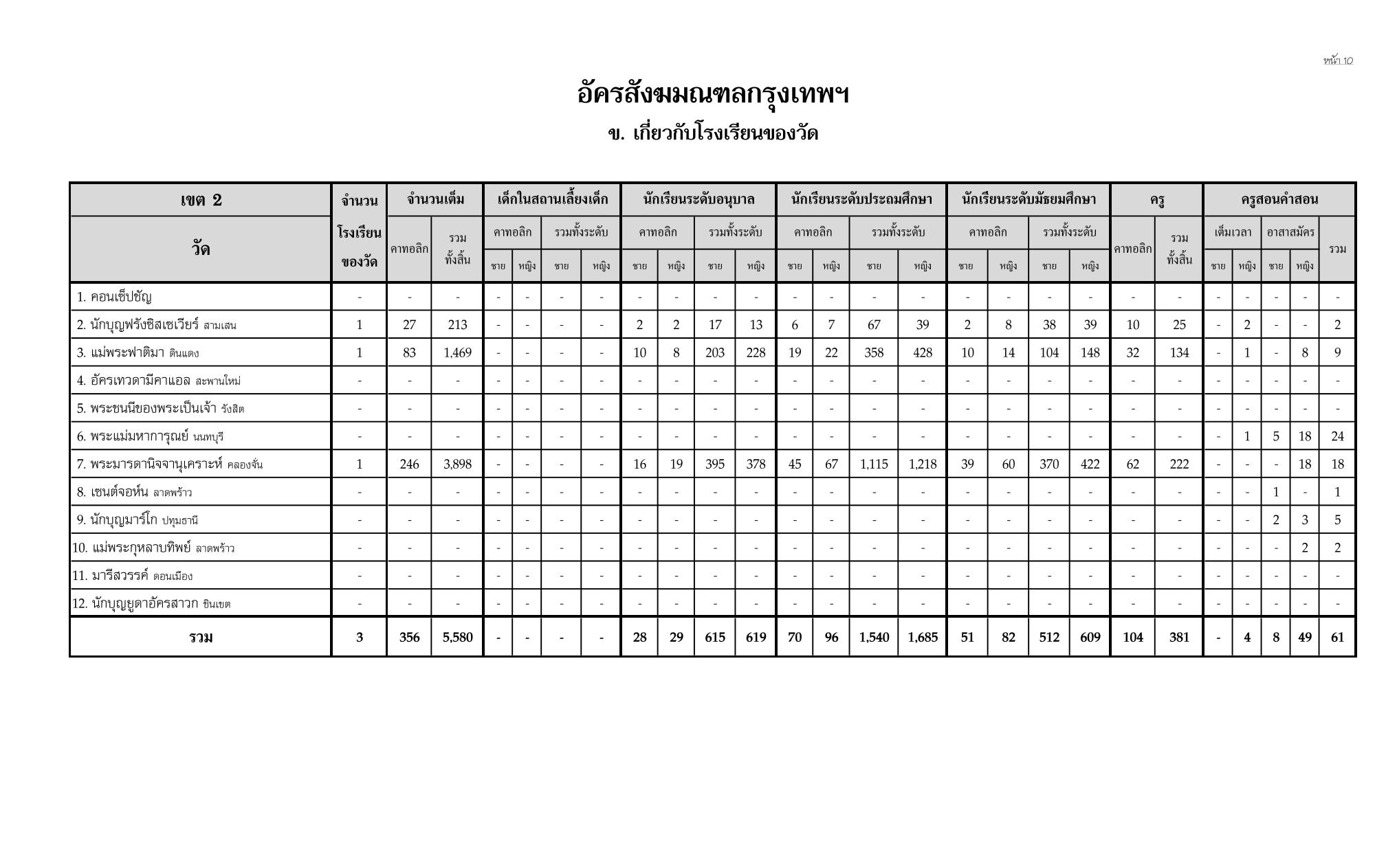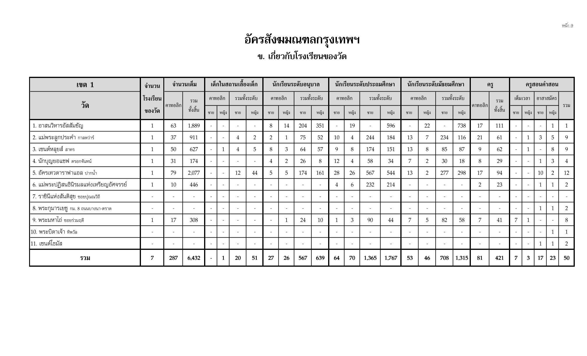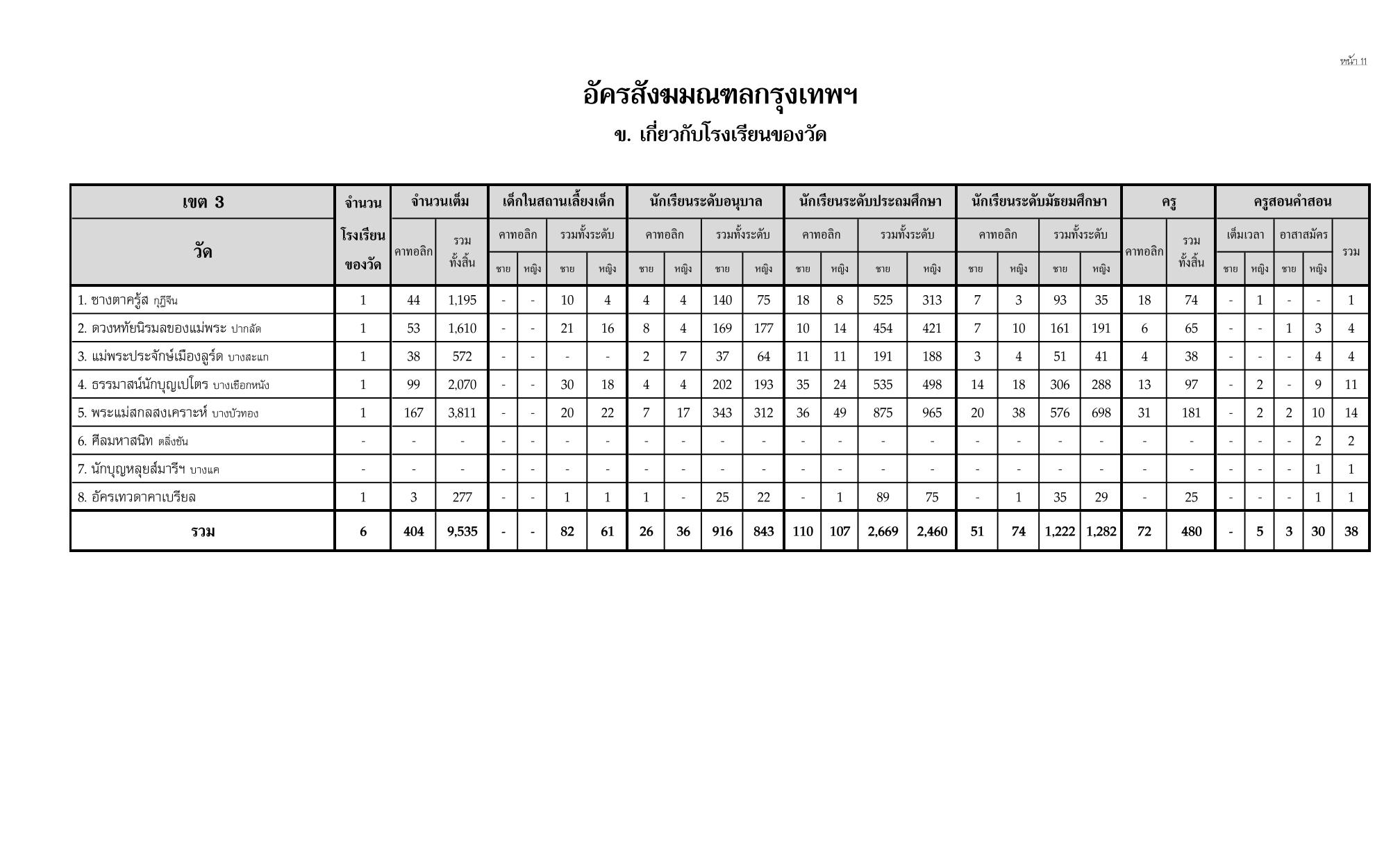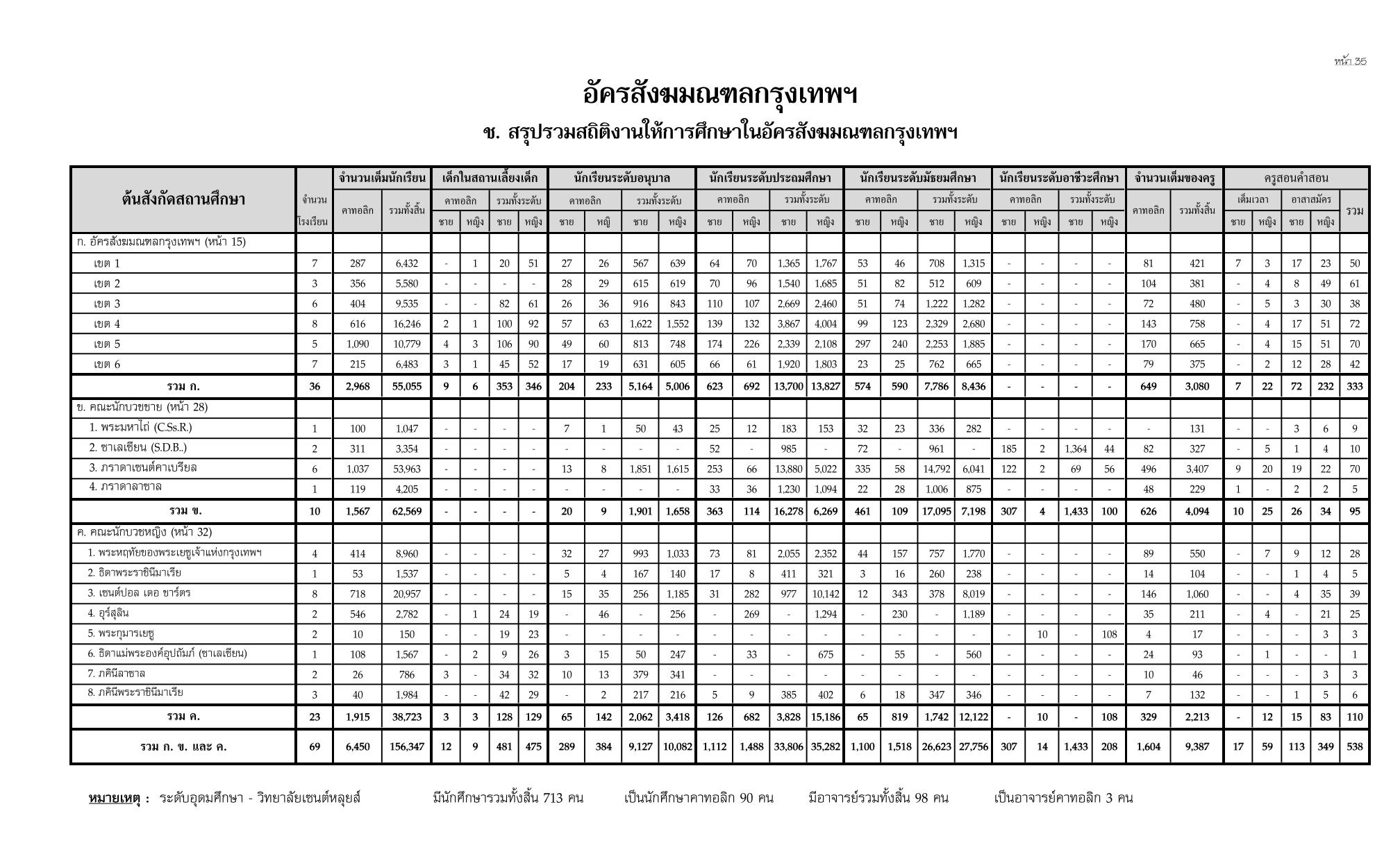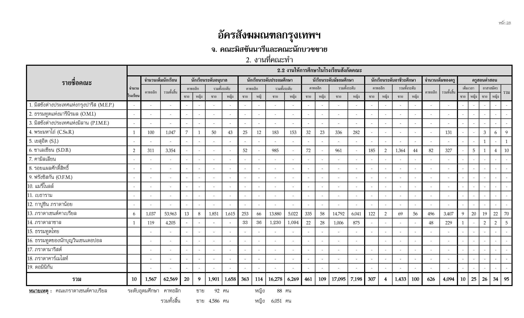 ข้อมูลสถิติประจำปี อัครสังฆมณฑลกรุงเทพฯ
