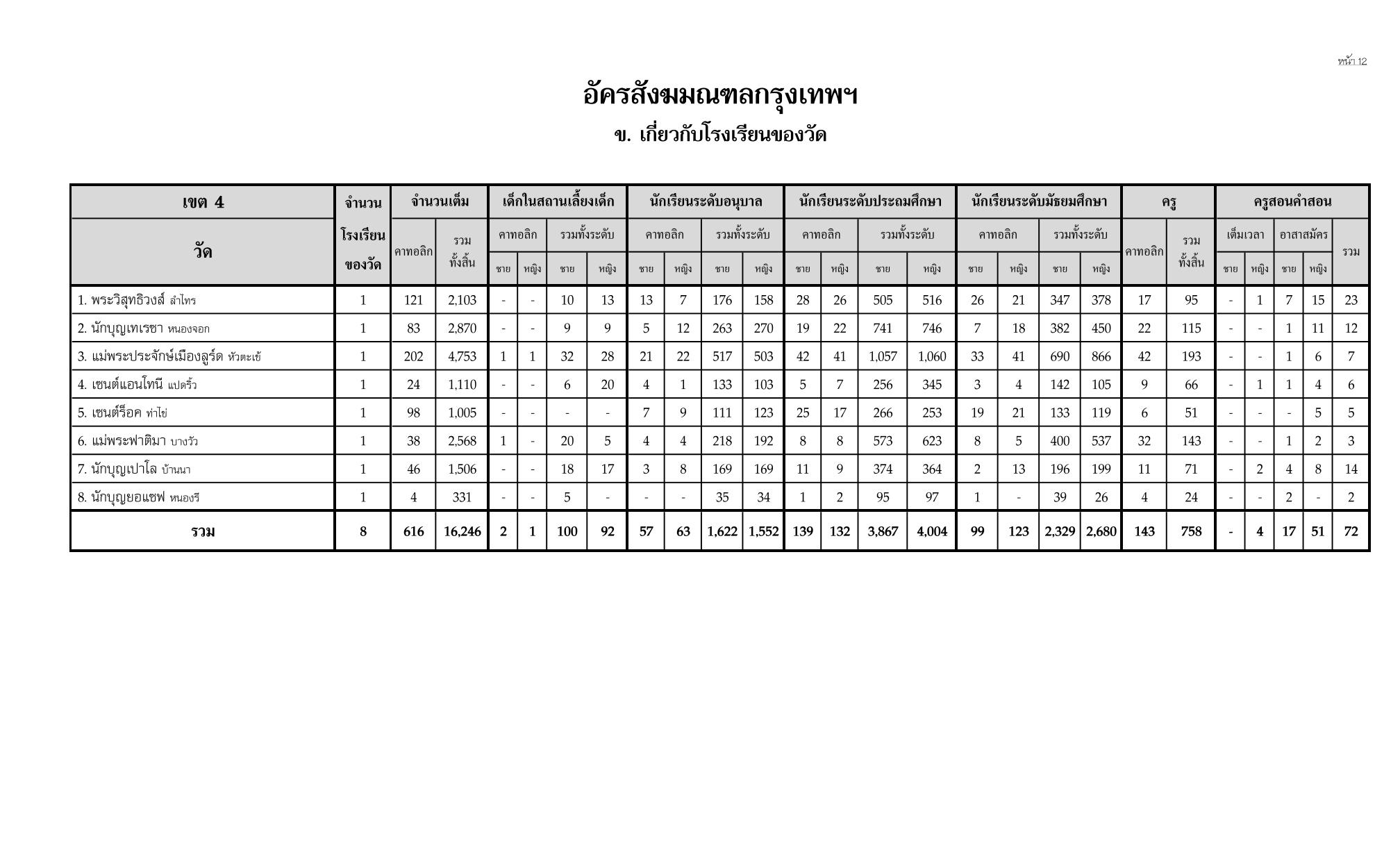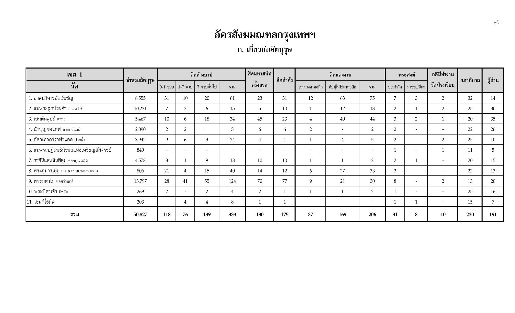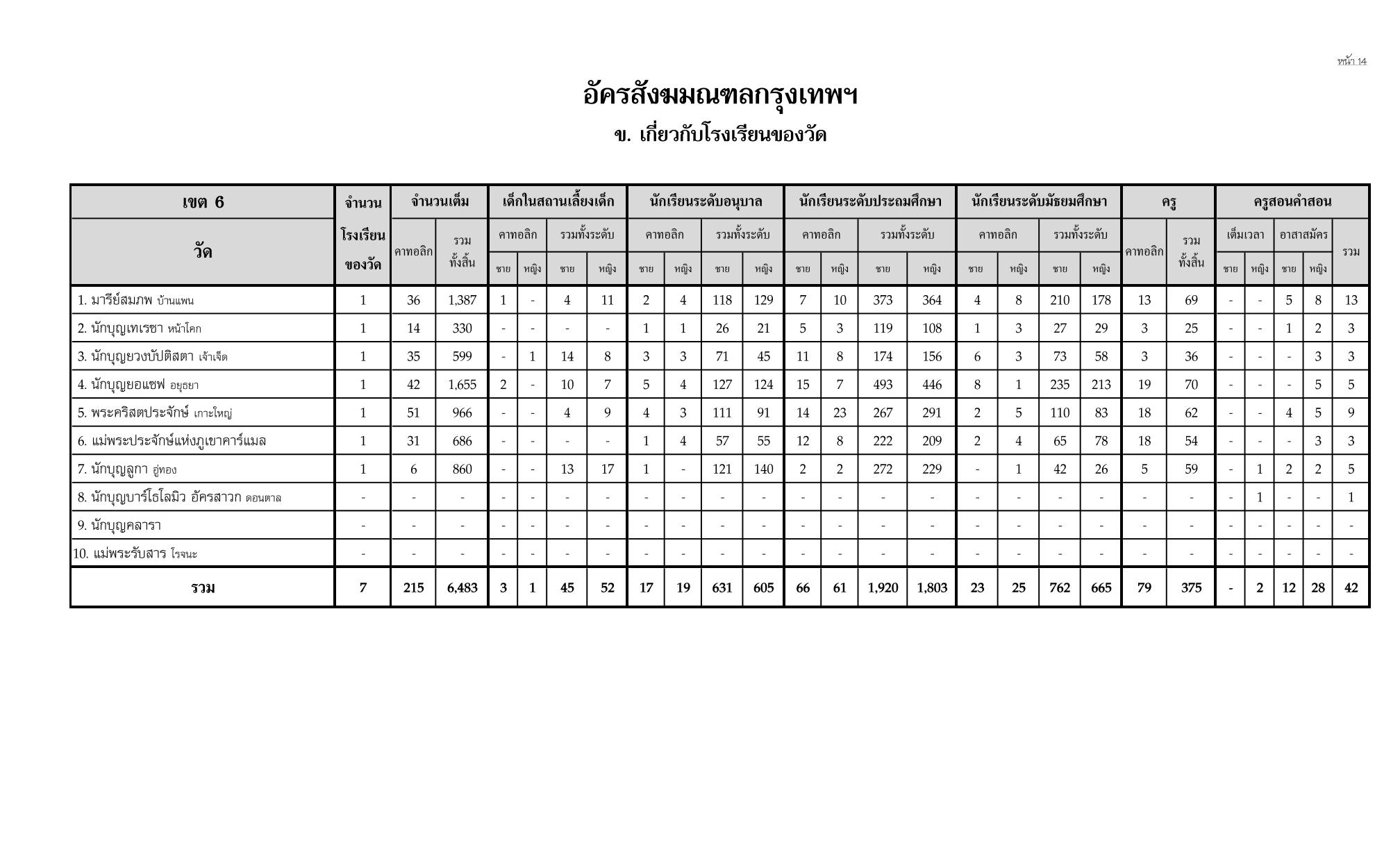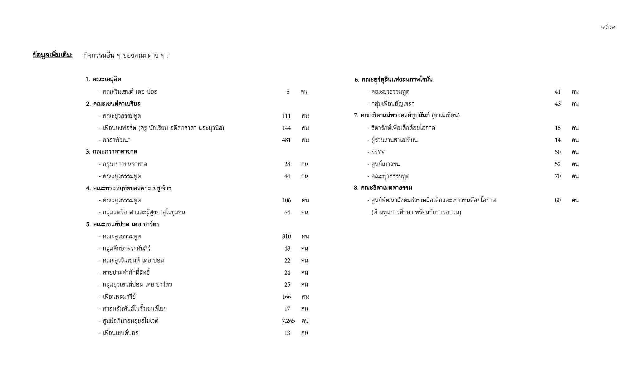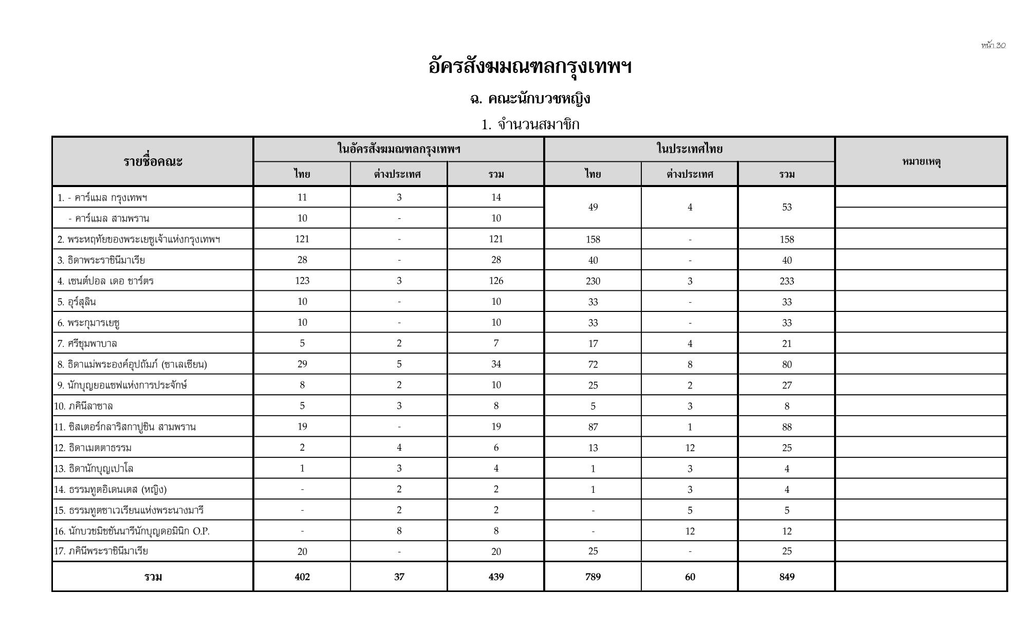 ข้อมูลสถิติประจำปี อัครสังฆมณฑลกรุงเทพฯ