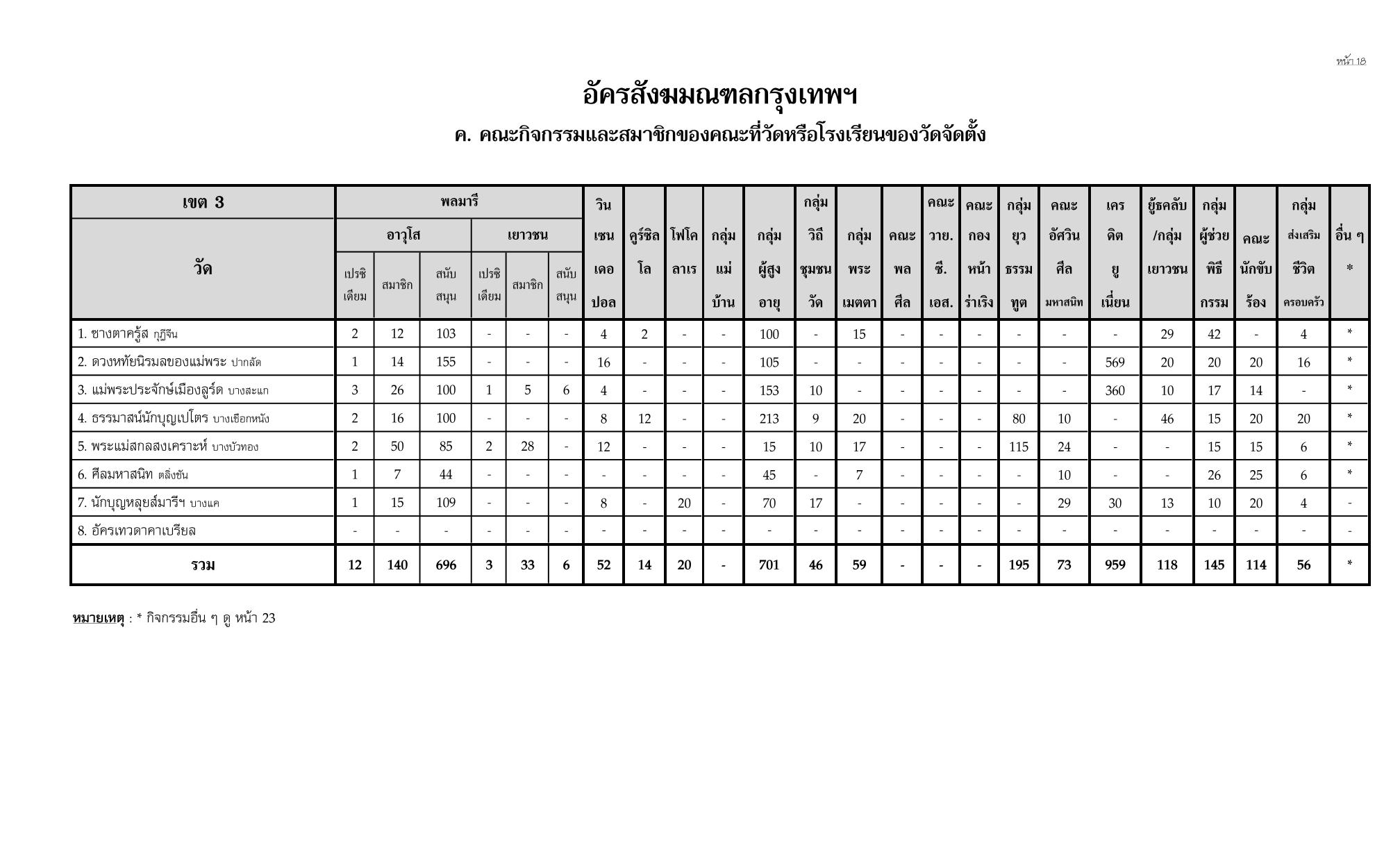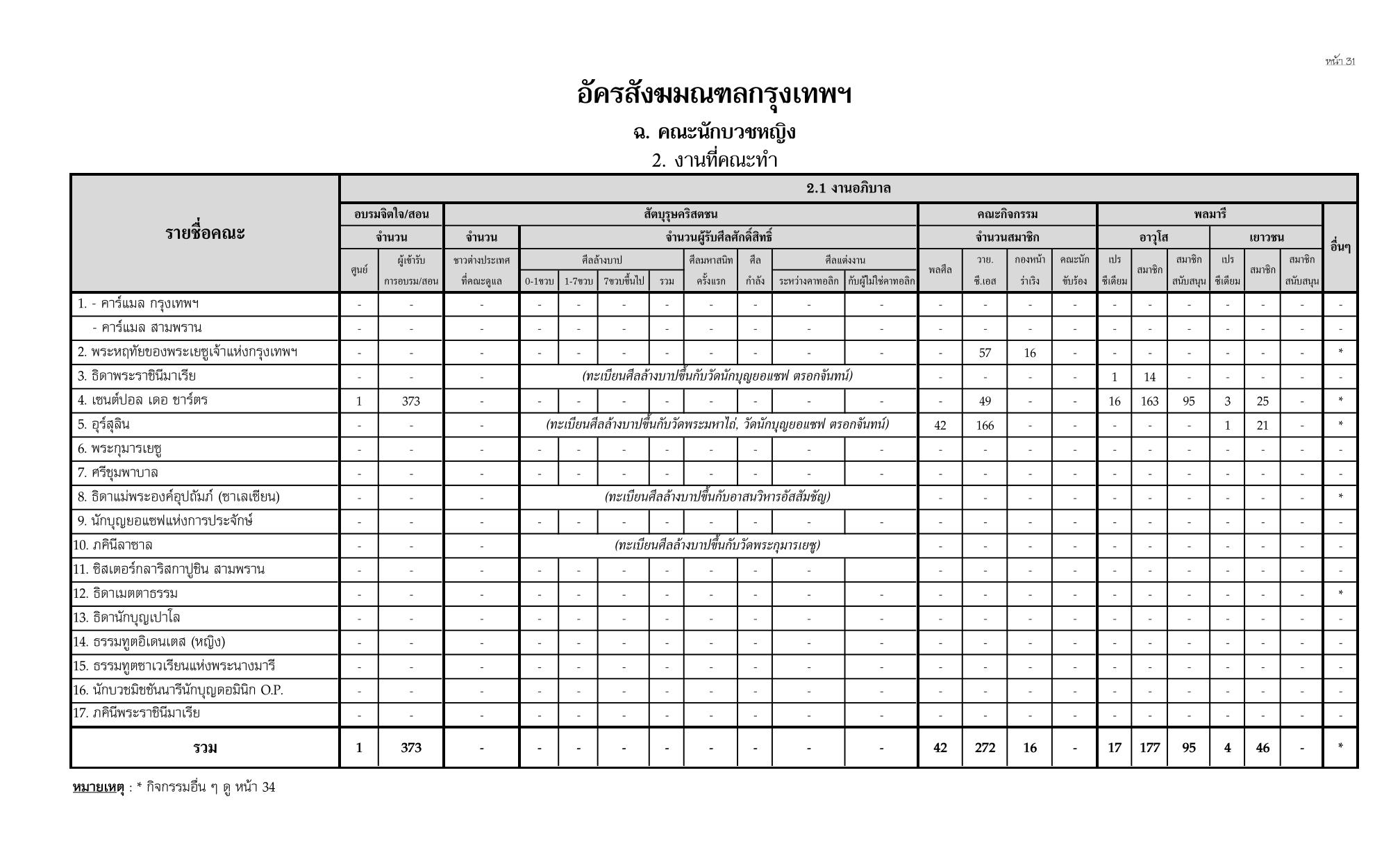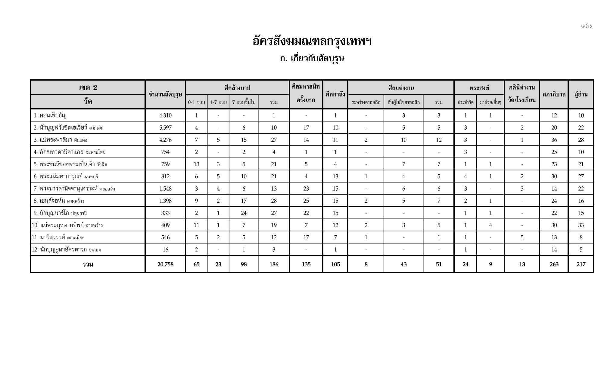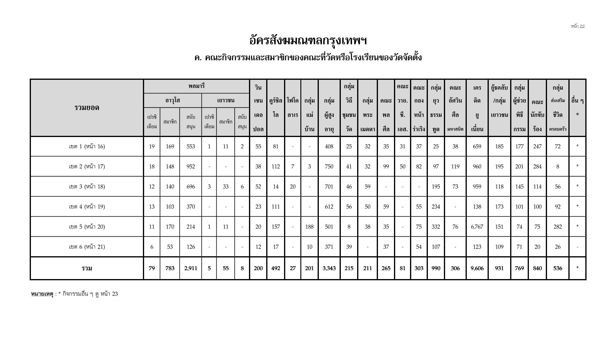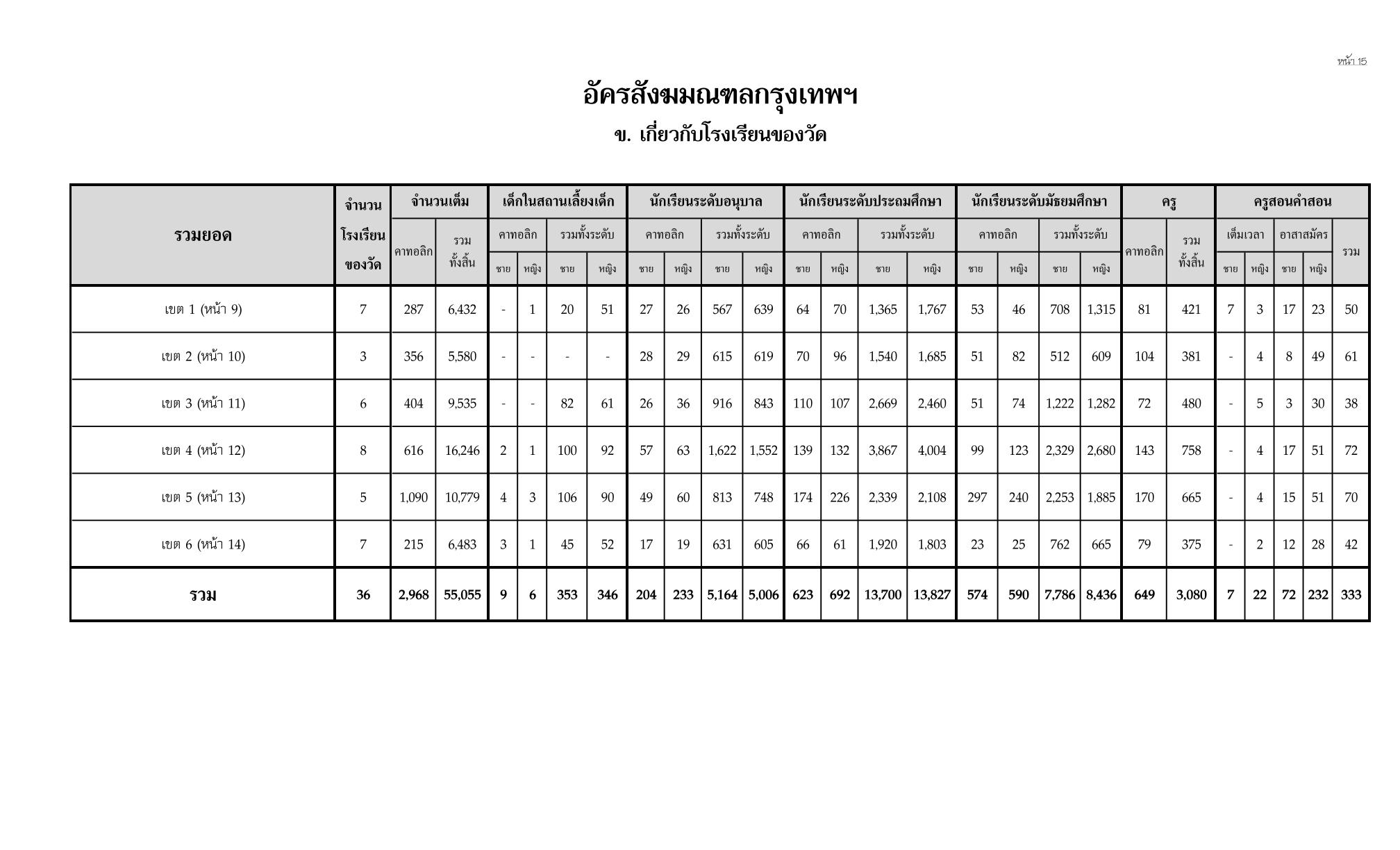 ข้อมูลสถิติประจำปี อัครสังฆมณฑลกรุงเทพฯ