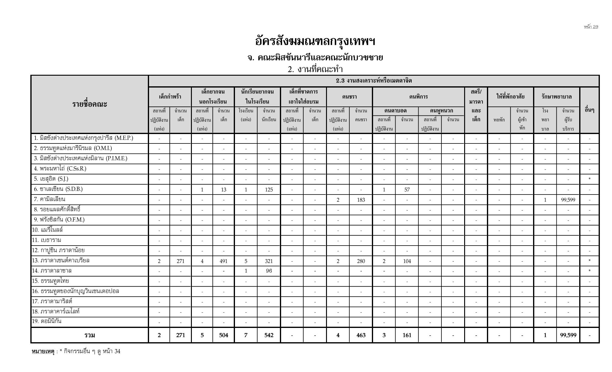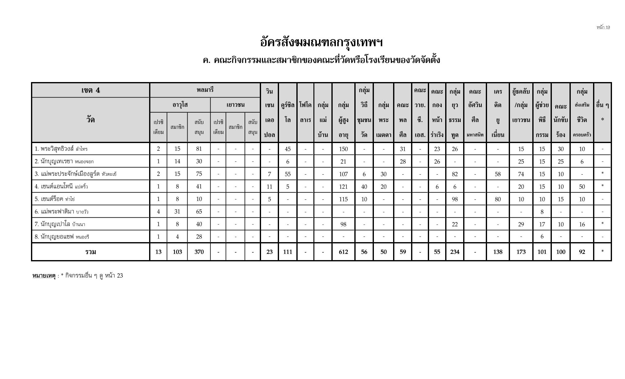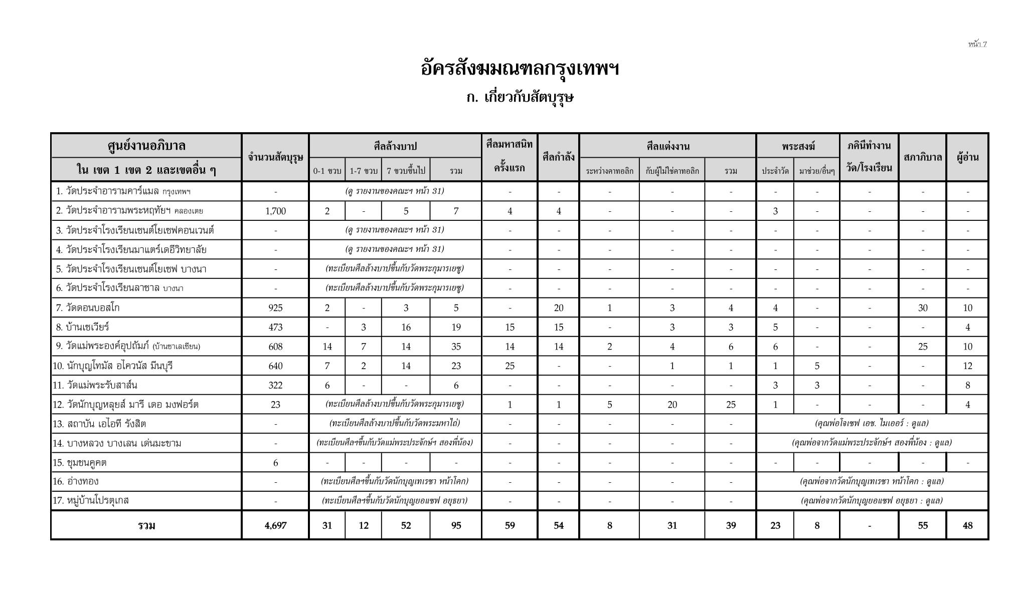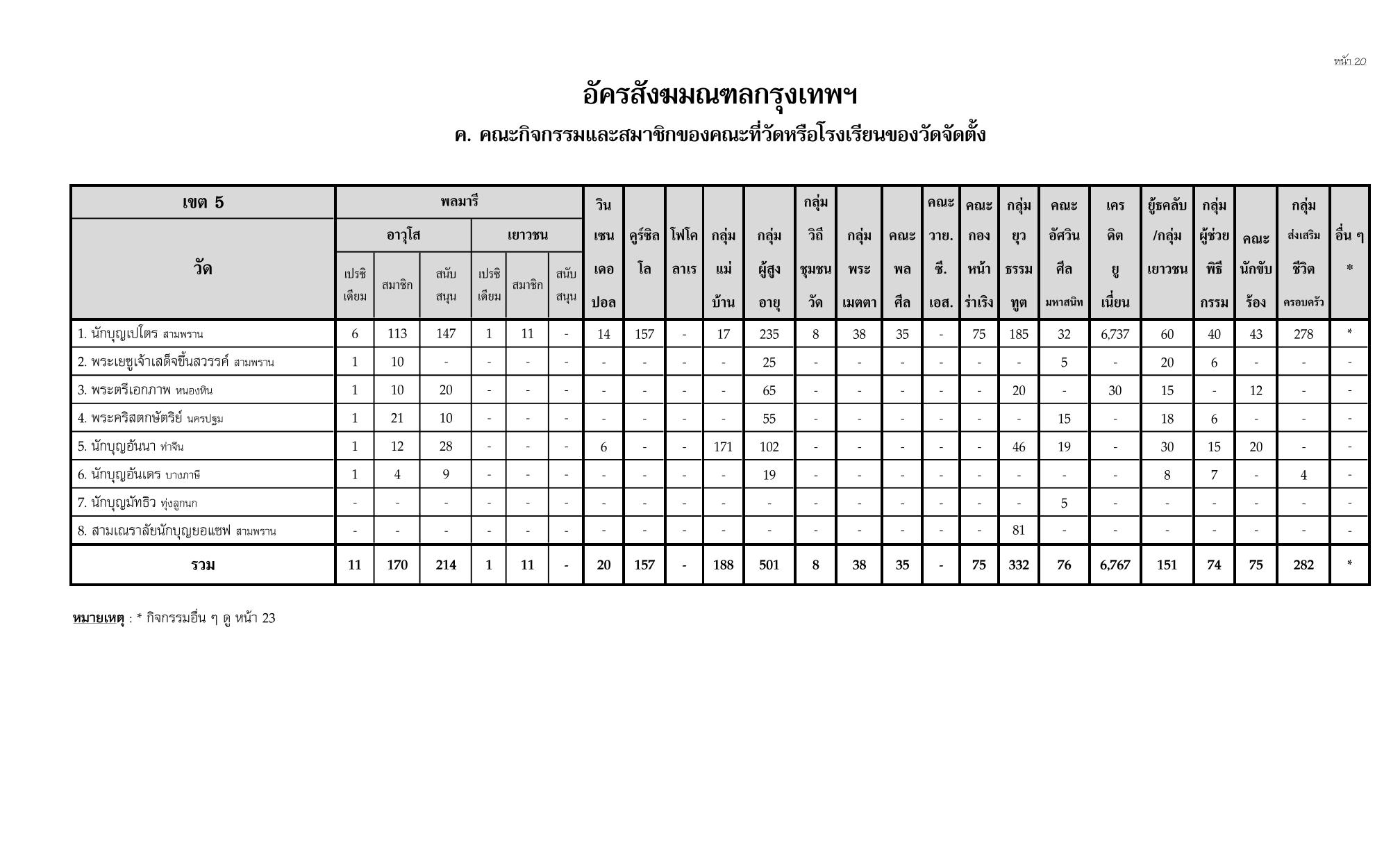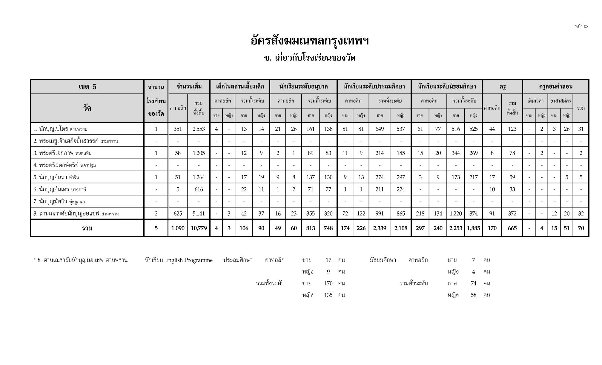 ข้อมูลสถิติประจำปี อัครสังฆมณฑลกรุงเทพฯ