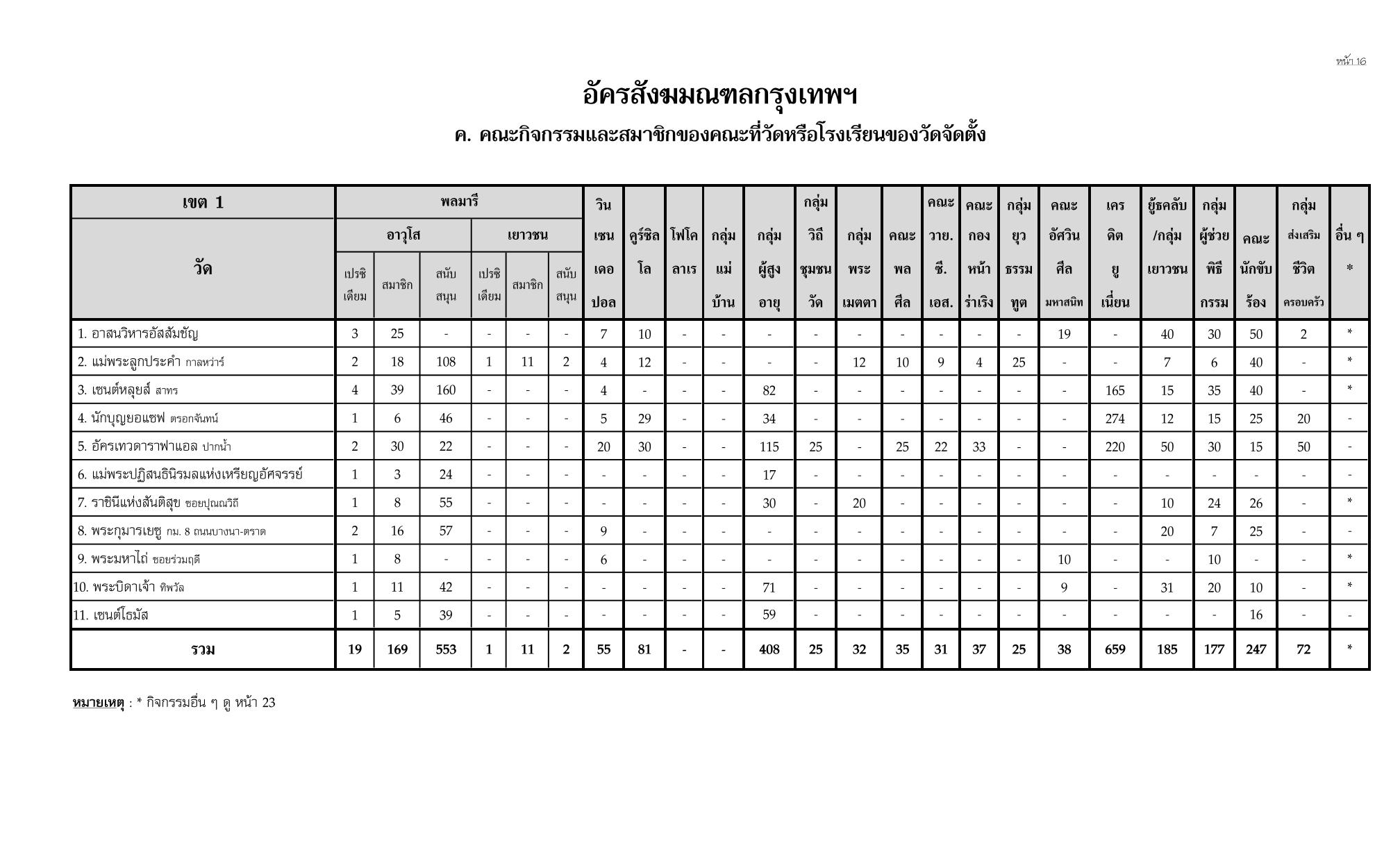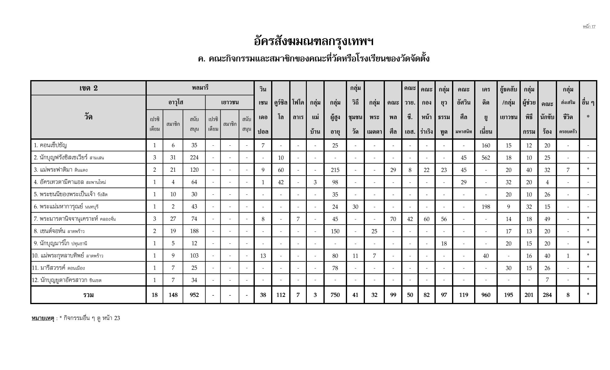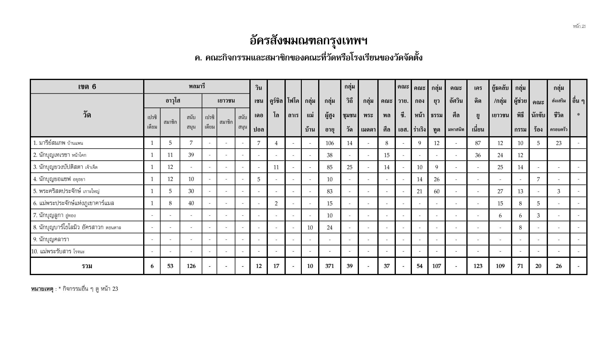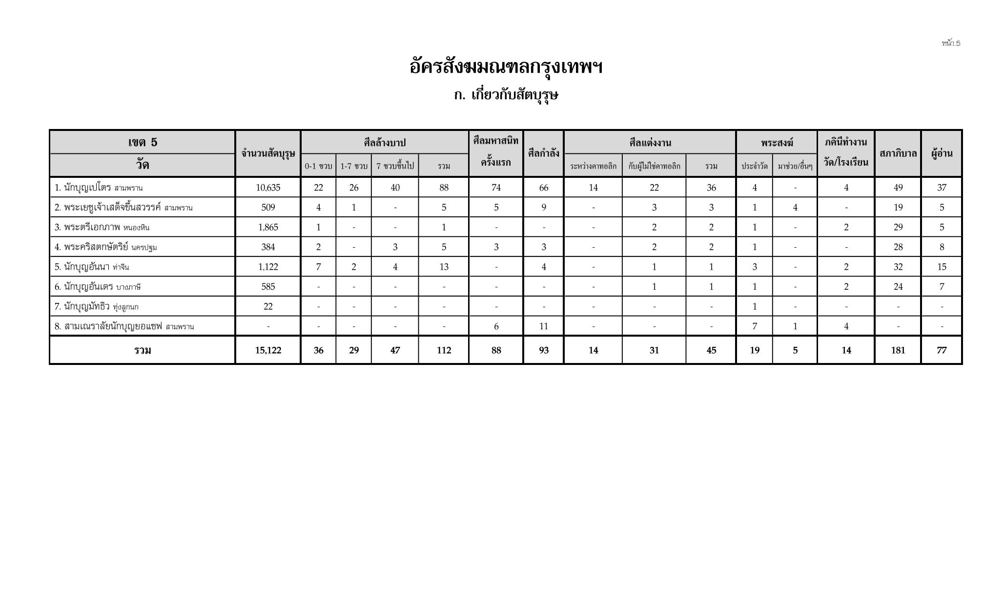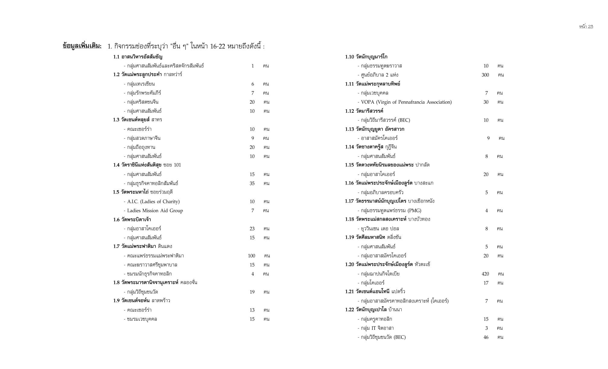 ข้อมูลสถิติประจำปี อัครสังฆมณฑลกรุงเทพฯ