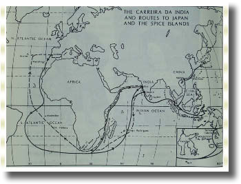 แผนที่แสดงเส้นทางการเดินเรือของชาวโปรตุเกสในอดีต