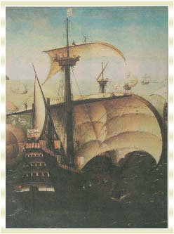 ภาพวาดกองเรือสำรวจของวาสโก ดา กามา ผู้ค้นพบ