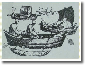 ภาพวาดฝีมือชาวโปรตุเกส แสดงเรือพายชนิดต่างๆ ของชาวอินเดีย